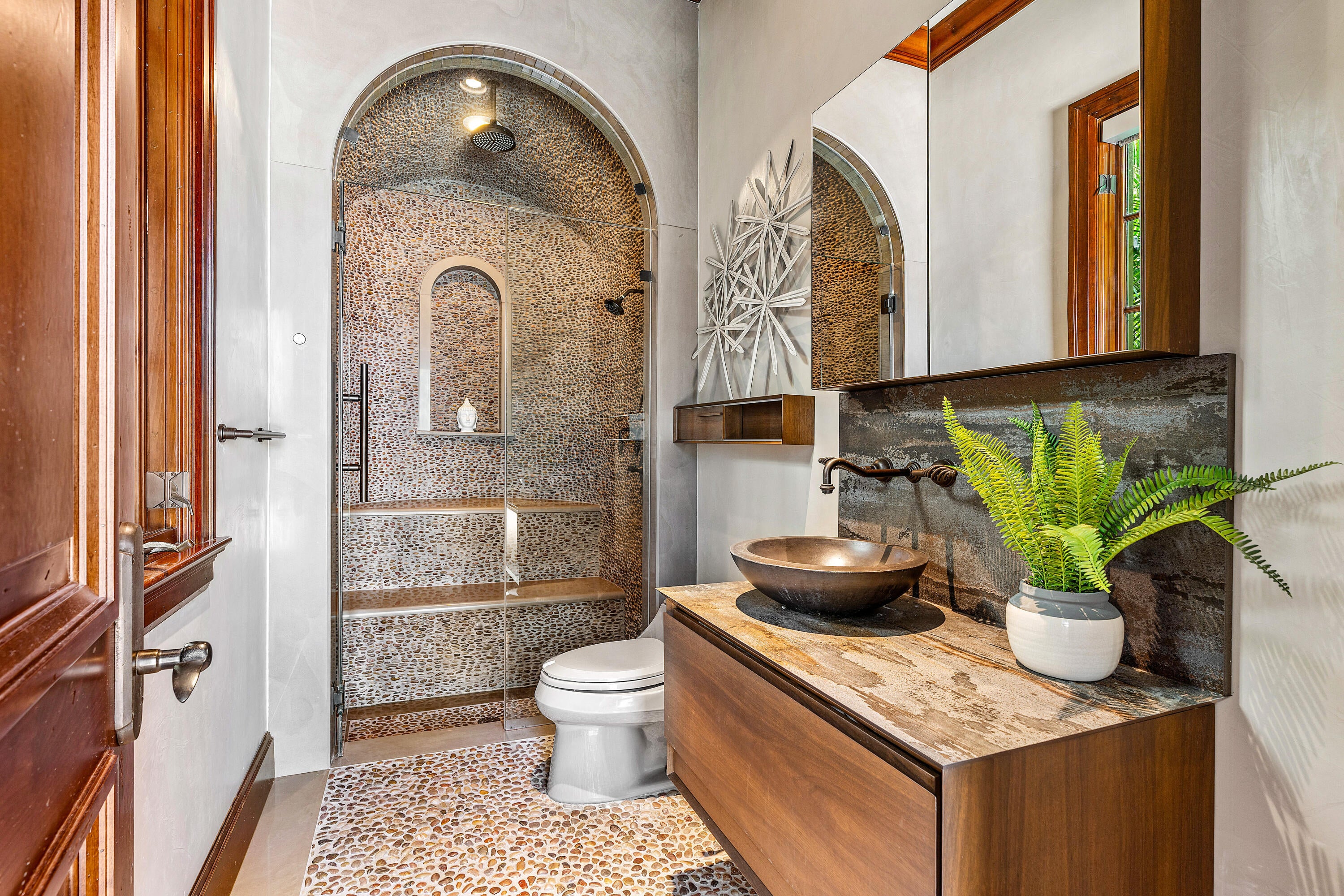 Welcome to Villa Tremezzo - A Gated West Coast Contemporary Masterpiece in Lighthouse PointTailored for the world's most discerning buyers, this estate suits the lifestyle of billionaires--offering timeless, enduring value with finishes that transcend fleeting design trends. Privately gated and architecturally bold, Villa Tremezzo is a rare jewel offering 92 feet of deep-water frontage with an unmet, one-of-a-kind serene wide water view not even Intracoastal homes offer, located in Lighthouse Point's prestigious estate section.Expertly designed and constructed by its renowned builder-owner, this West Coast Contemporary-inspired estate reflects timeless, no-expense-spared elegancemodeled after a celebrity home and worthy of movie stars. It offers lasting luxury, peace of mind, and future-proof valuefar surpassing the typical standard of new construction. Beyond the striking design and grand scale lies a home reimagined for enduring performance: a brand-new roof, new AC systems, fully replaced ductwork, and upgraded Control4 smart home automationincluding integrated security, lighting, and audio throughout. Whole-house generator, Thermador appliances, steam room on each floor, and stylish elevator elevate both form and function. Set far back from the street and enclosed by soaring granite walls, the estate offers rare seclusion. Two gated driveways open to lush, mature landscapingsetting a tone of timeless elegance rarely seen in modern builds. The custom double iron doors open to reveal panoramic water views and an interplay of natural elements: cascading water, ambient fire, imported cherry wood, and expensive marble and stone flooring inside and outan investment of nearly $1 million in artisanal materials. The soaring 28-foot ceilings and two-story fireplace anchor the grand room, while open-concept design connects seamlessly to a chef's kitchen built for performance and beauty. The first-floor clubroom is a versatile entertainer's dream, with a full bar, wine storage, pool table, and dual TVsperfect for hosting everything from quiet evenings to high-energy celebrations. Outside, the home transforms into a private resort: Outdoor kitchen & dining, a saltwater ozone-purified lagoon pool with beach entry, waterfalls, dual grottos, spa table, oversized Jacuzzi, and putting green. A sun shelf with jets and sculptural fire features creates an ambiance of dramatic luxury, while multiple covered loggias extend the living experience. The custom-designed home theater features seven leather reclining seats facing a 135-inch screen, a programmable star-lit dome ceiling, and a dedicated lobby with concessions, bar, and powder roomcreating an immersive cinematic escape. Upstairs, the expansive primary suite includes a fireplace, built-in sound, electric shades, balcony, and hidden safe. The spa-inspired bath features his & hers - counters, bidet toilets, expansive two-person steam shower with therapeutic body jets, TVs behind mirrors, and a Jacuzzi tubturning the space into a true spa surrounded by natural stone, wood, and elegant textures. The cabana bath mirrors this retreat experience with its own zen steam shower and organic finishes. Additional upgrades include a whole-house water purification system, allergy-resistant sheep's wool attic insulation, and Bluetooth-monitored generator and propane systems. Newly updated, offered newly furnished, including designer lighting fixtures throughout. This is more than a homeit's a fortress of elegance, wellness, and security. Villa Tremezzo is a rare opportunity to own a future-proof legacy propertyan investment in lifestyle, taste, and long-term value beyond imagination.