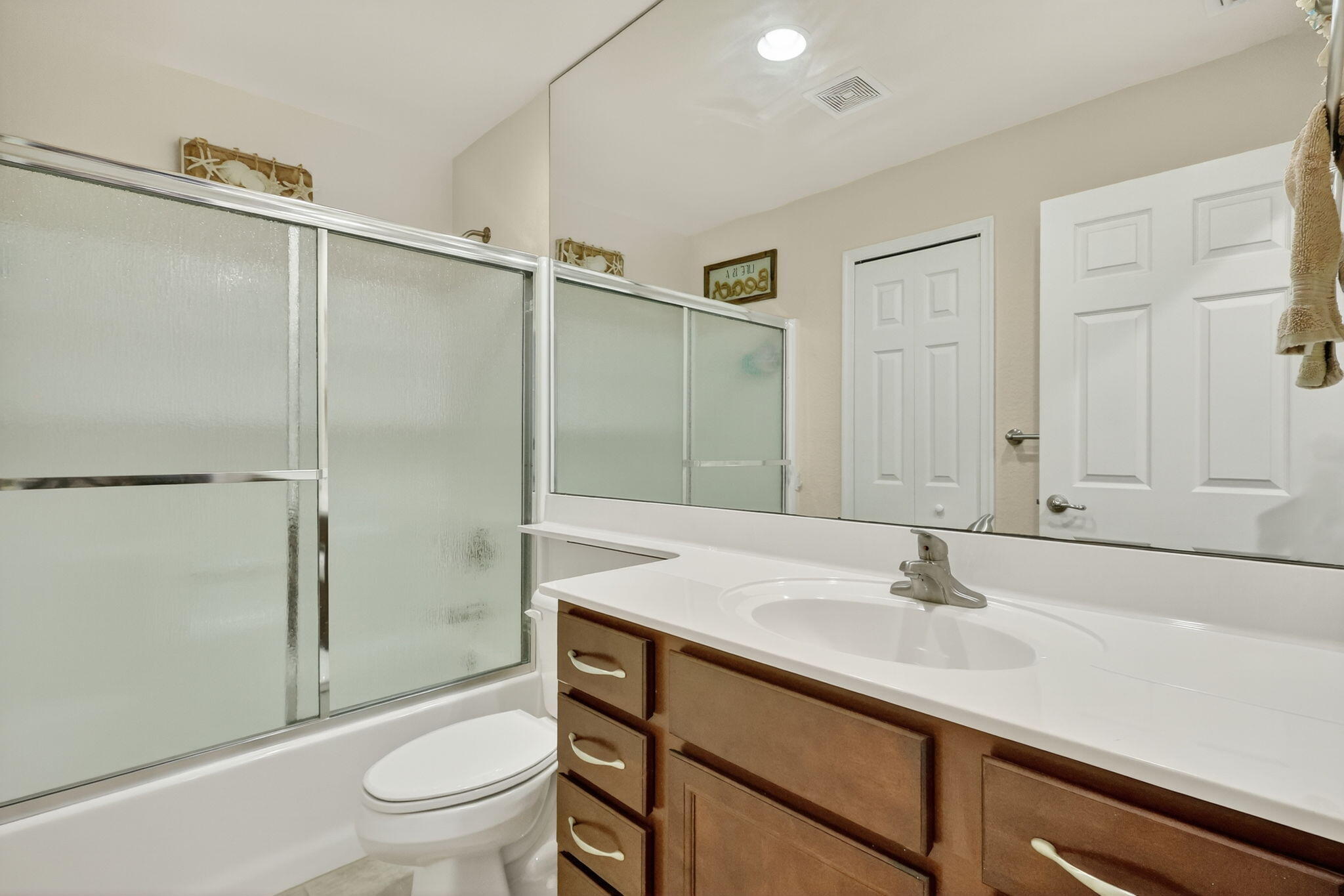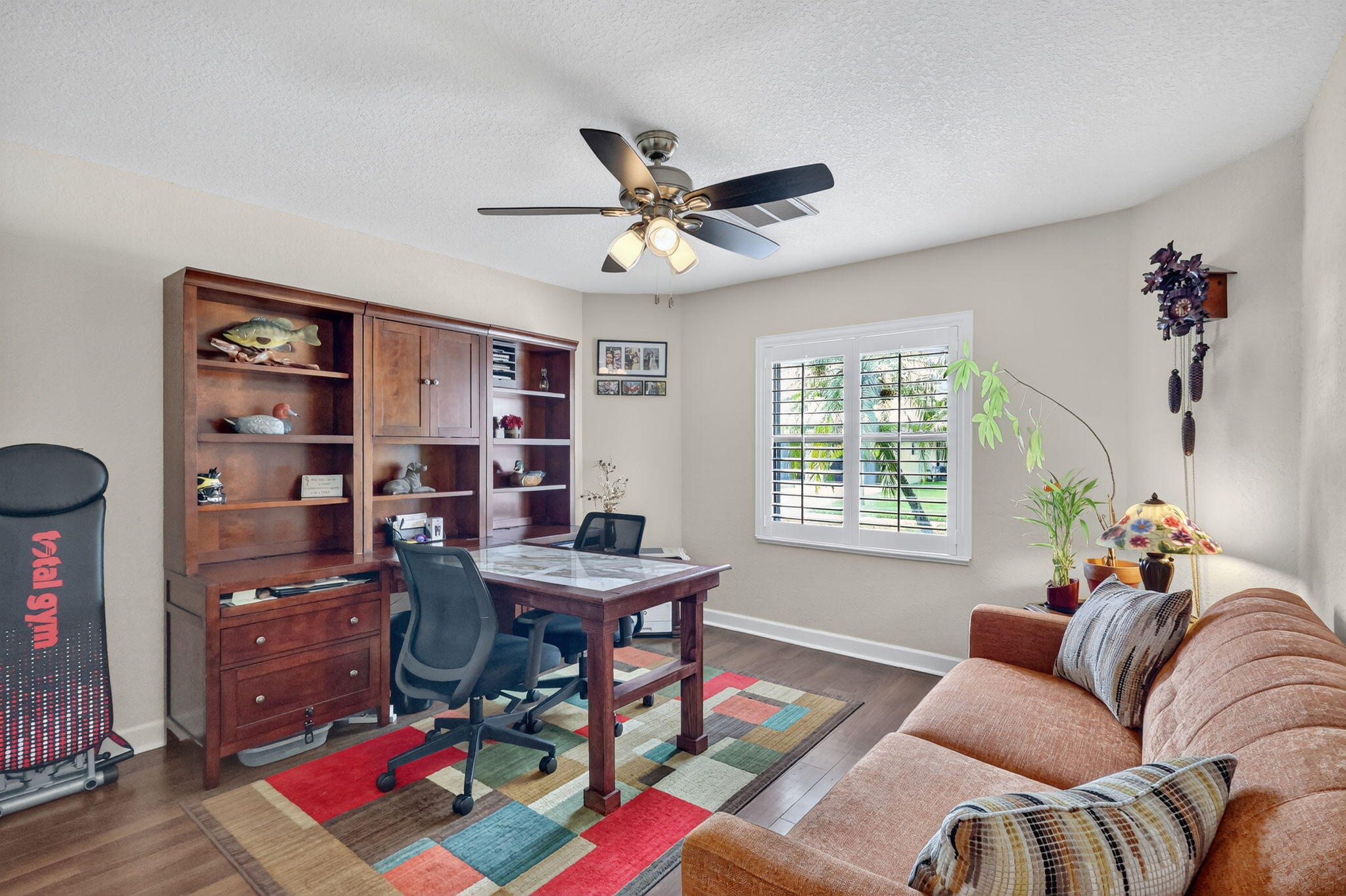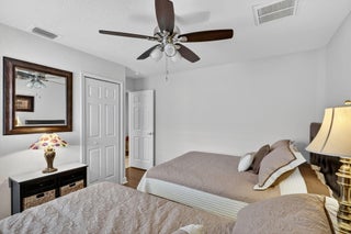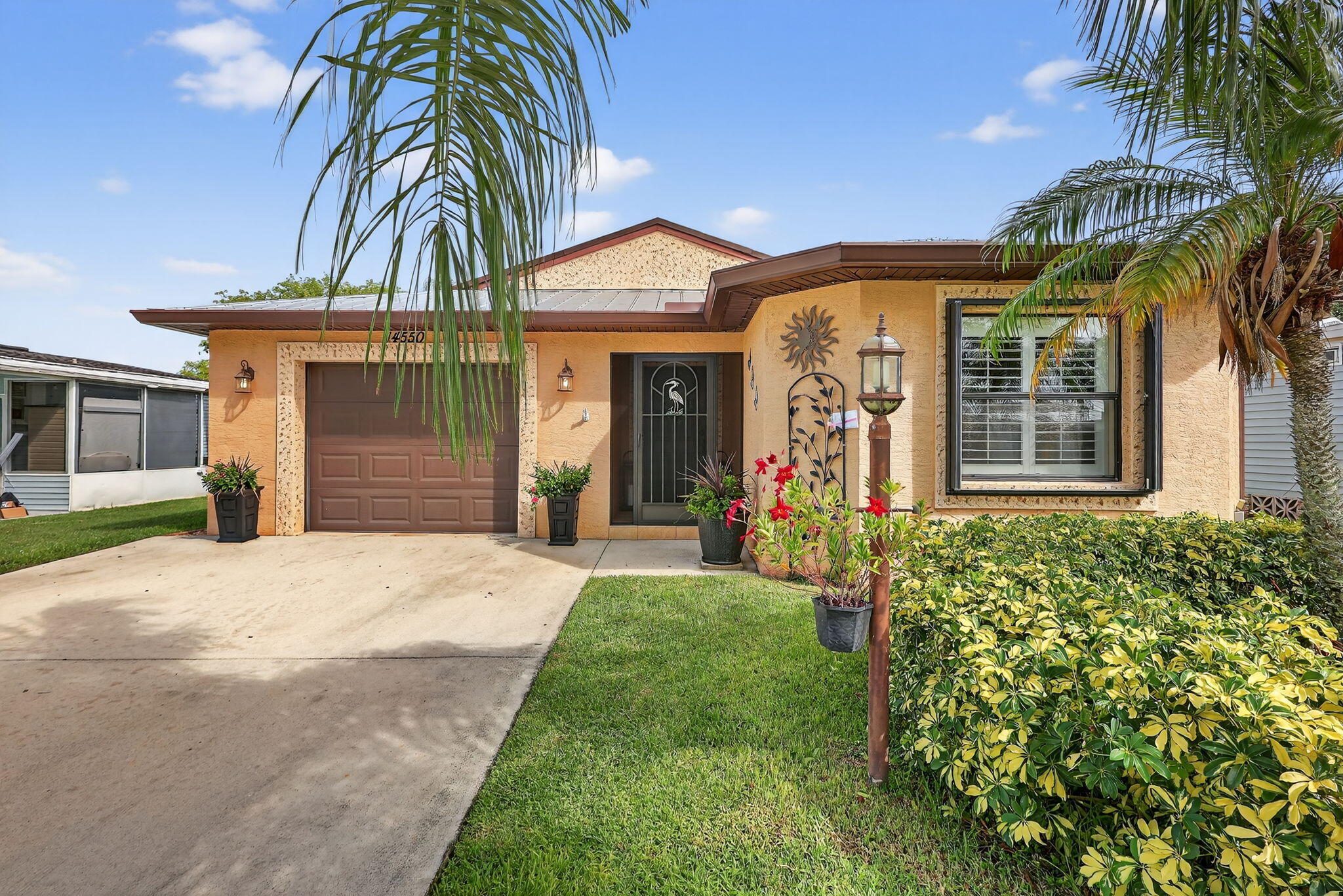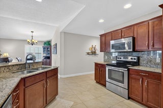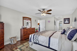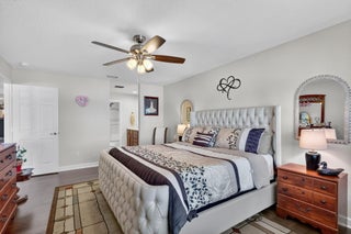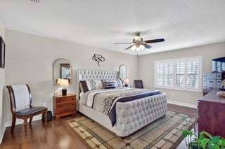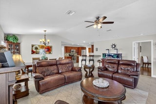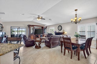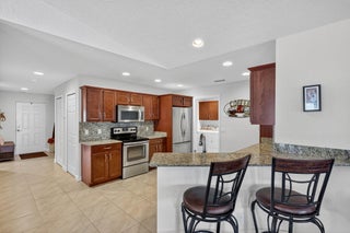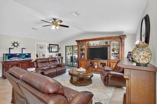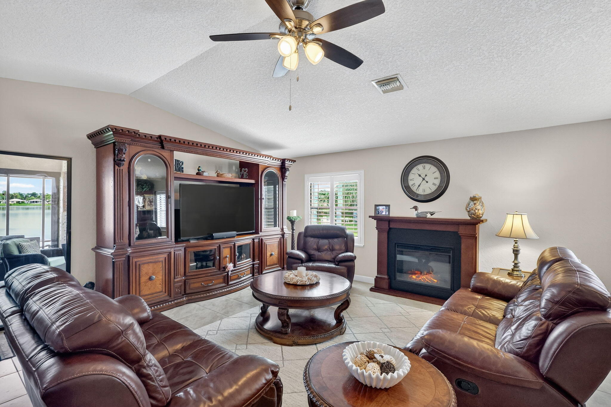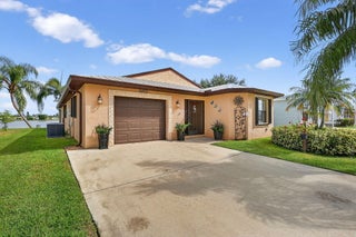 Welcome to this beautifully maintained 3-bedroom, 2-bath home located in the 55+ community of Spanish Lakes Fairways. Enjoy tranquil lake views and a relaxed Florida lifestyle in this bright and open residence. The home has laminate wood flooring throughout--no carpet here--offering a clean, modern feel. The spacious great room flows seamlessly into the open kitchen, which features elegant granite countertops and ample cabinet space. The primary suite includes a generous walk-in closet and a double vanity. Enjoy your morning coffee or evening cocktail on the screened-in lanai, which offers a serene view of the lake. The home also features a 1-car garage, a full indoor laundry room, and well-maintained landscaping that enhances its curb appeal.For added peace of mind, the home is protected by accordion storm shutters, including around the screened-in lanai. Enjoy access to many amenities, including a clubhouse, two pools, tennis courts, Pickleball, and an 18-hole golf course. Community events and activities offer endless opportunities to stay active and social in this well-established, age-restricted neighborhood.