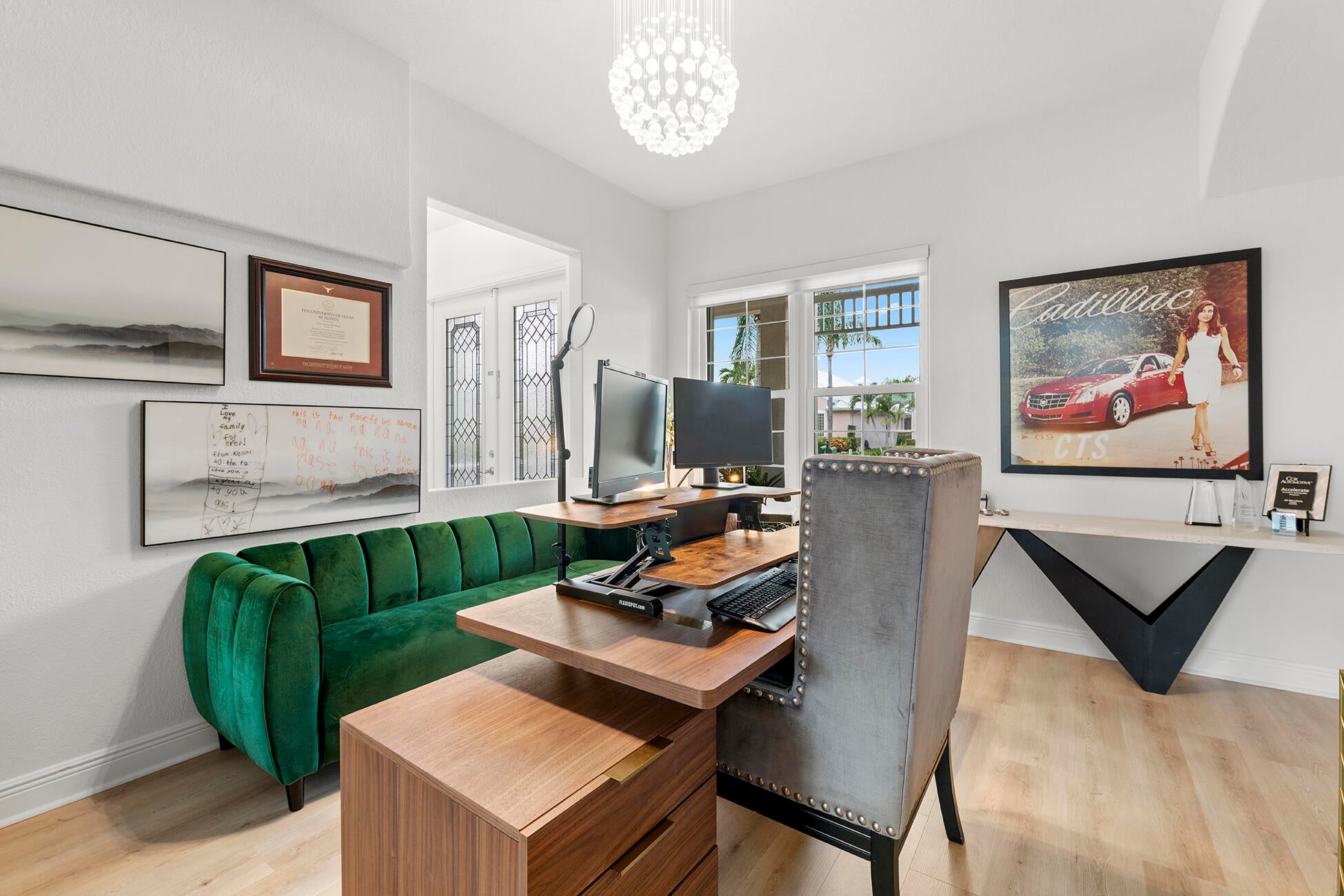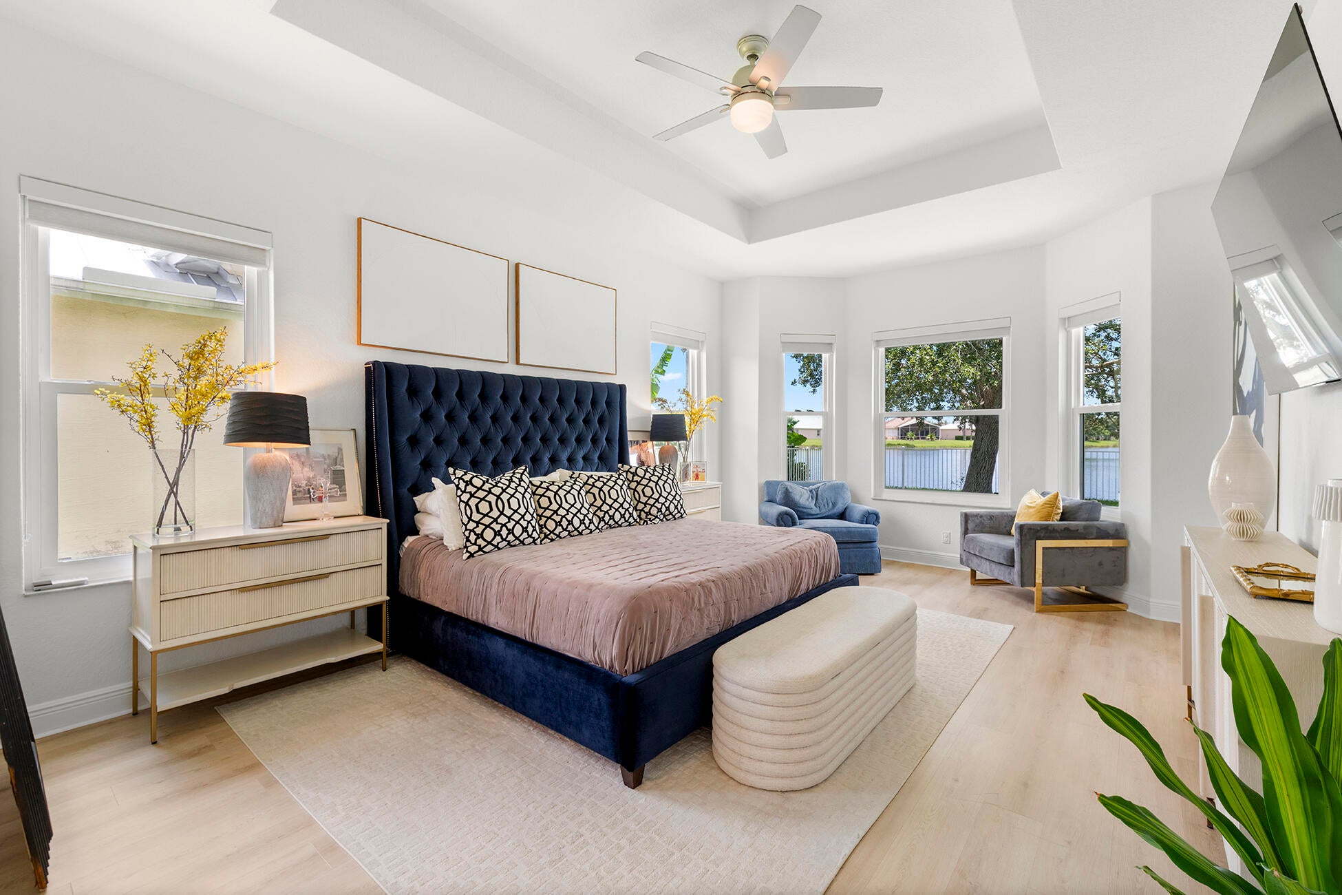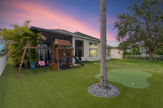 Lakefront, Renovated Move-in ready, this 5-bedroom + office, 3.5-bath home sits on a premium lakefront lot with soaring 20+ ft ceilings, a 3-car garage, impact widows and doors with full storm protection accordion shutters protecting the upstairs.The kitchen and primary bath were remodeled in 2023 with luxury finishes, complemented by new flooring, fresh paint, new HVAC, a tankless water heater, and a private sauna. the fenced backyard features low-maintenance artificial turf.Enjoy resort-style living with a heated pool, clay tennis, clubhouse, gym, game room, and playground. Low HOA covers lawn care + Wi-Fi. Minutes from I-95, shopping, dining, and the new A-rated Westgate K-8. Nestled within the gated Magnolia Lakes community in St. Lucie West