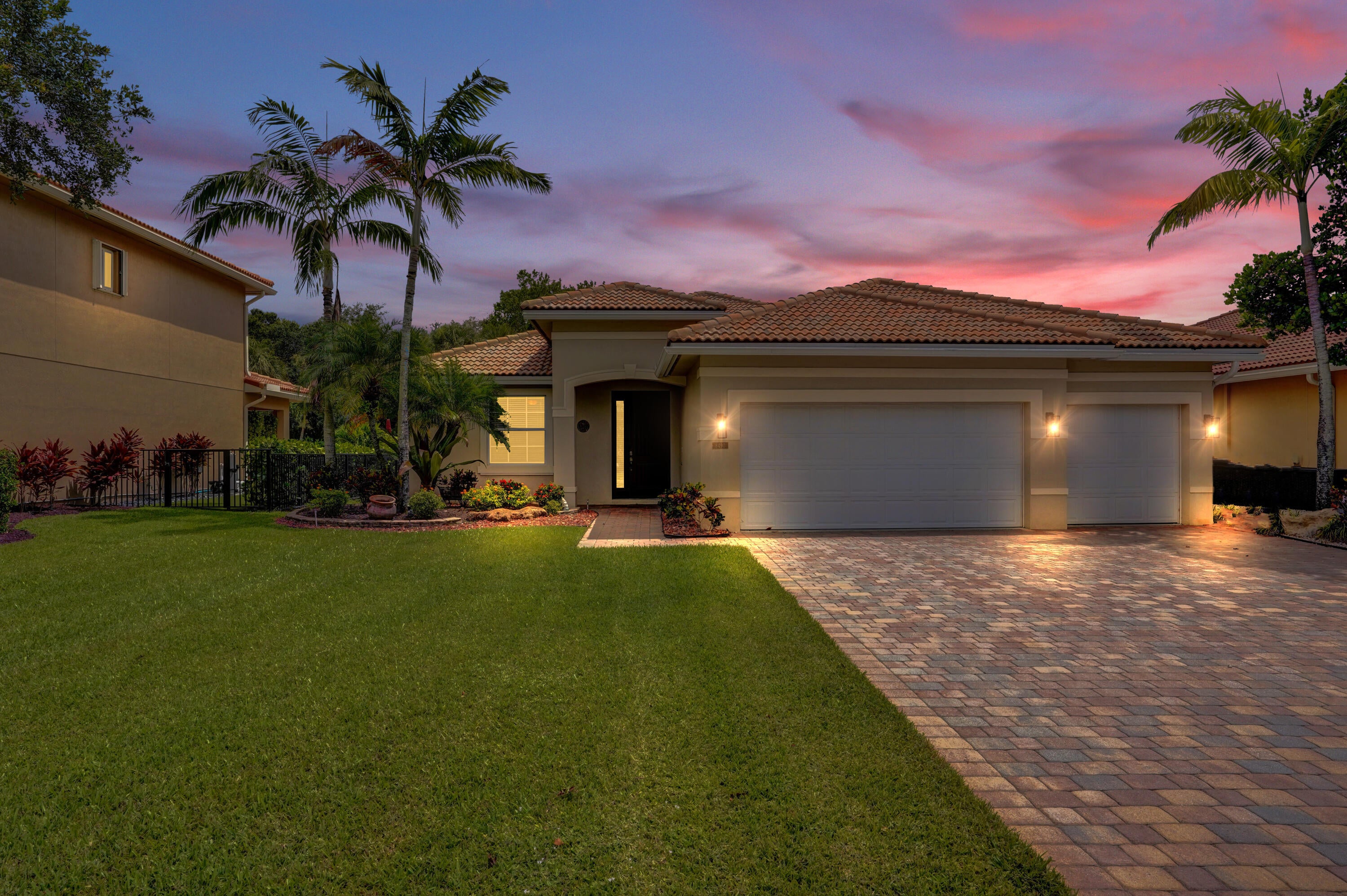 Stunning turnkey 4BR/3BA single-story home in Lyons Ranches. Located on a quiet cul-de-sac with no rear neighbors, this 3-car garage home features lush tropical landscaping and a spacious brick-paver driveway, offering exceptional curb appeal.Inside, you'll find an open-concept split floor plan with porcelain tile flooring, impact windows, and abundant natural light. The home is equipped with a 2011 roof, 2017 A/C, and an alarm system with security cameras offering both comfort and peace of mind.The kitchen is warm and inviting, featuring granite countertops, newer stainless steel appliances, ample cabinetry, a double oven, and soft recessed lighting. It opens to a cozy family room, an elegant dining area with a stylish chandelier, anda light-filled living room with peaceful views of the yard. The primary suite is a relaxing retreat, complete with wood-look tile flooring, a spacious layout, oversized closet, and private patio access. Secondary bedrooms are generously sized and thoughtfully positioned for privacy. Step outside to a large brick patio, ideal for outdoor dining, entertaining, or simply enjoying the Florida lifestyle. There is an AC unit in the garage, perfect for comfort while exercising, working or storage use. Low HOA covers lawn care, irrigation, and property management. Investor-friendly with NO rental restrictions. This home checks every box for comfort, style, location, and investment potential. Don't miss your opportunity to own in one of the area's most desirable communities!