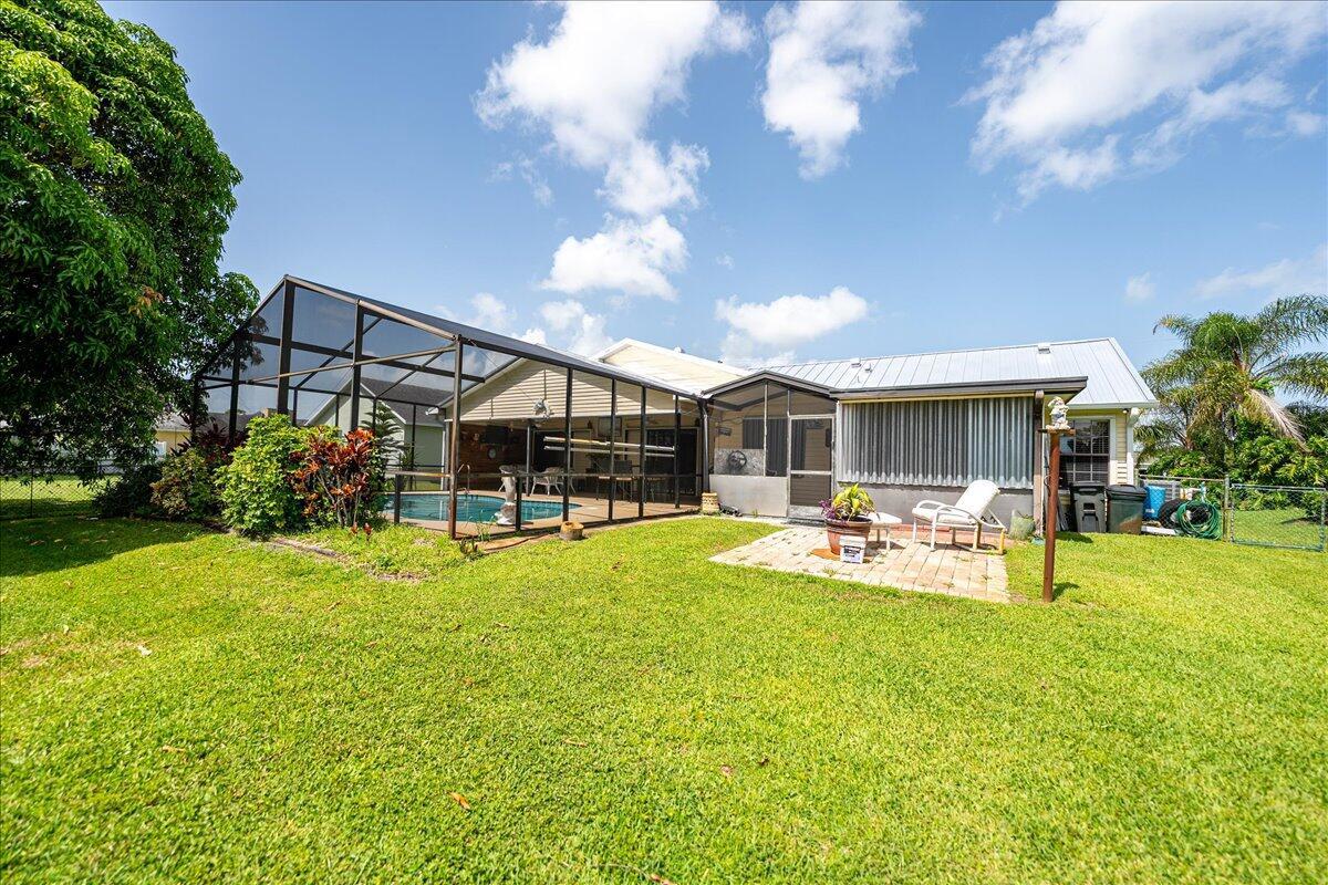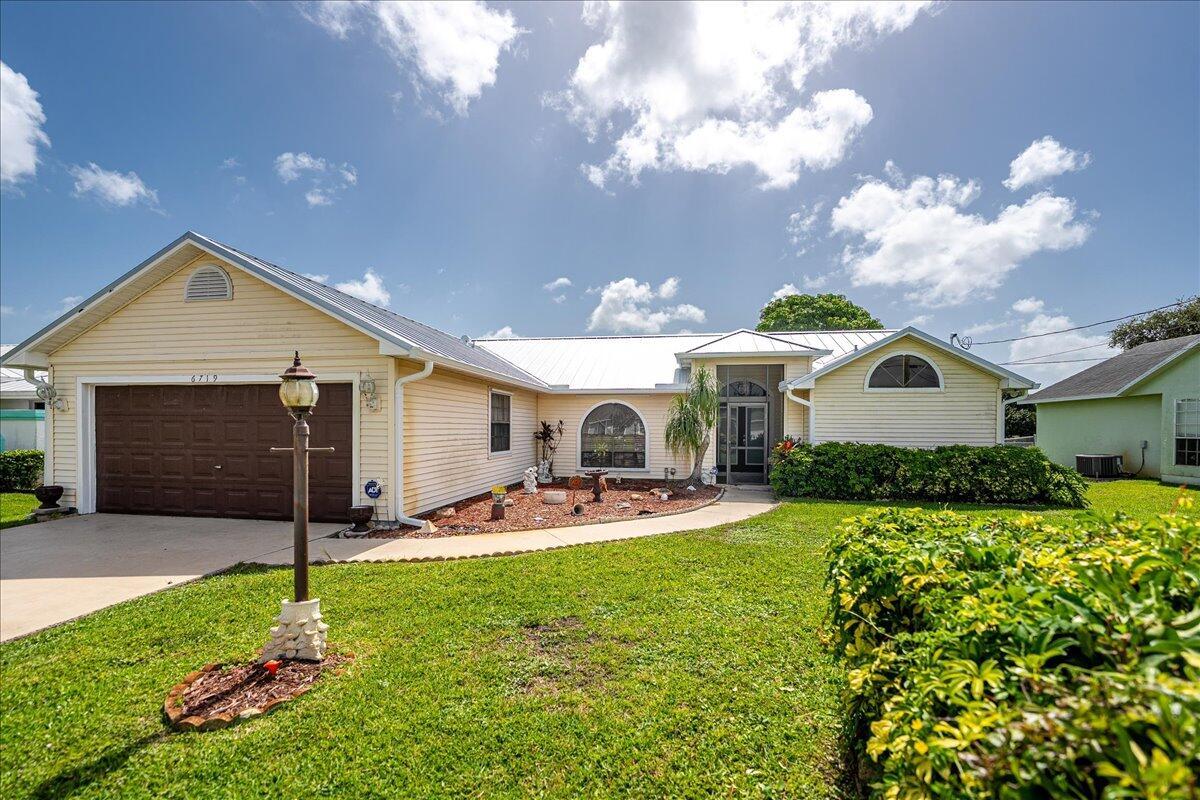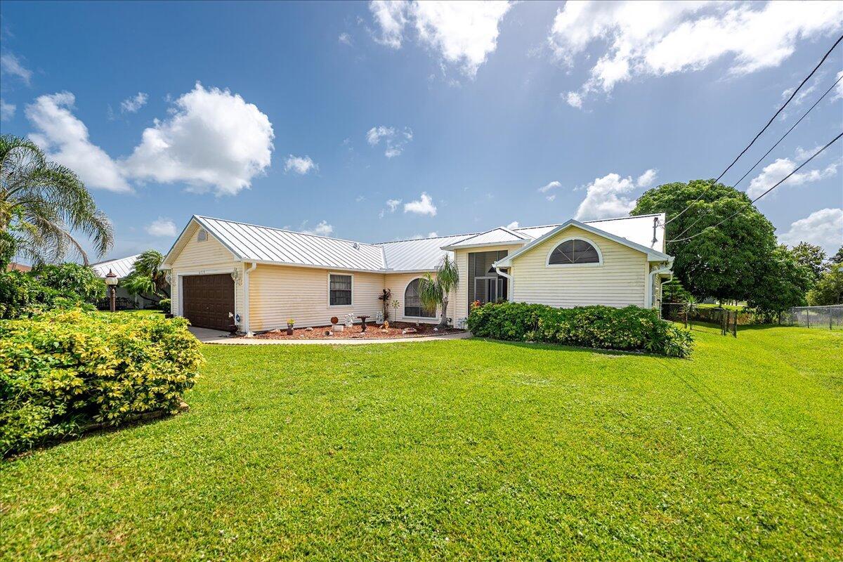 Welcome to this meticulously maintained 3-bedroom, 2-bathroom, home nestled in one of Port St Lucie's most sought-after neighborhoods. Featuring a new metal roof and gutters, newer A/C, and newer water heater, this move-in ready home offers both comfort and peace of mind. Enjoy outdoor living at its finest with a recently refinished pool and updated pump, newer screens for the enclosure, and a spacious 7-foot bar and patio area for entertaining. The backyard offers exceptional privacy with serene views and a fully fenced yard with a sprinkler system. Inside the home boasts vaulted ceilings, updated bathrooms, and a split floor plan for added privacy. A 2-car garage and beautifully maintained landscaping complete the package. Don't miss out on this beautiful home in a great location!