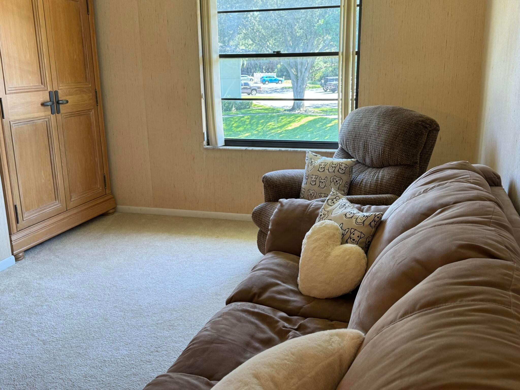Enjoy peaceful water views from this spacious 2nd floor unit in the highly desirable Sabal Ridge community! This 2-bedroom, 2-bath condo plus Den features an open floor plan with a large screened balcony overlooking the lake--visible from the living room and primary bedroom.The living and dining areas but can easily be converted back if desired. Located in the heart of Palm Beach Gardens, just 10 minutes from the beach and close to shopping, dining, and entertainment.Sabal Ridge offers fantastic amenities including a pool, clubhouse, tennis, and basketball courts. Don't miss this opportunity to live in one of the area's most popular communities! Rental price comes with water, cable, high speed internet and sewer