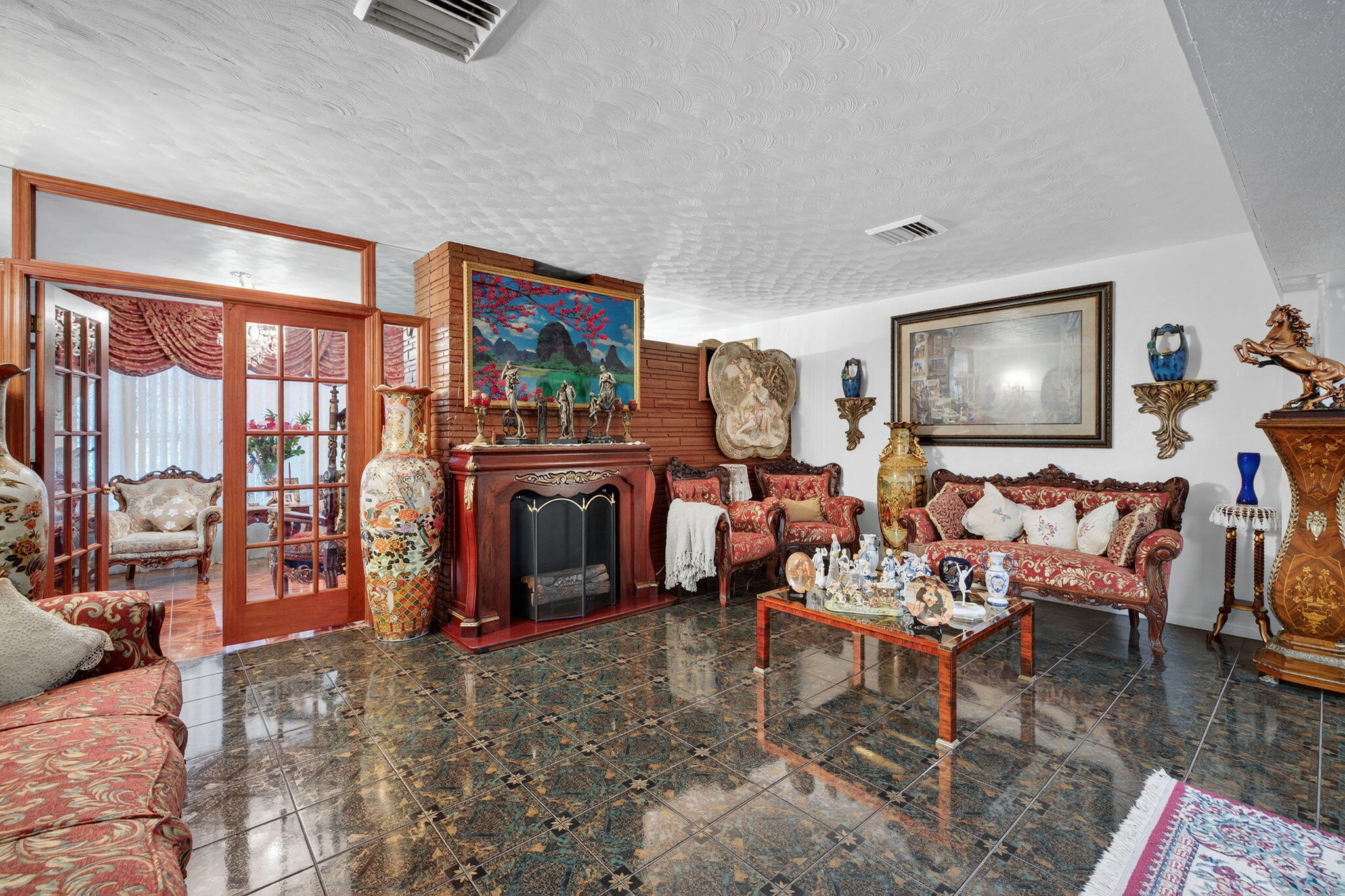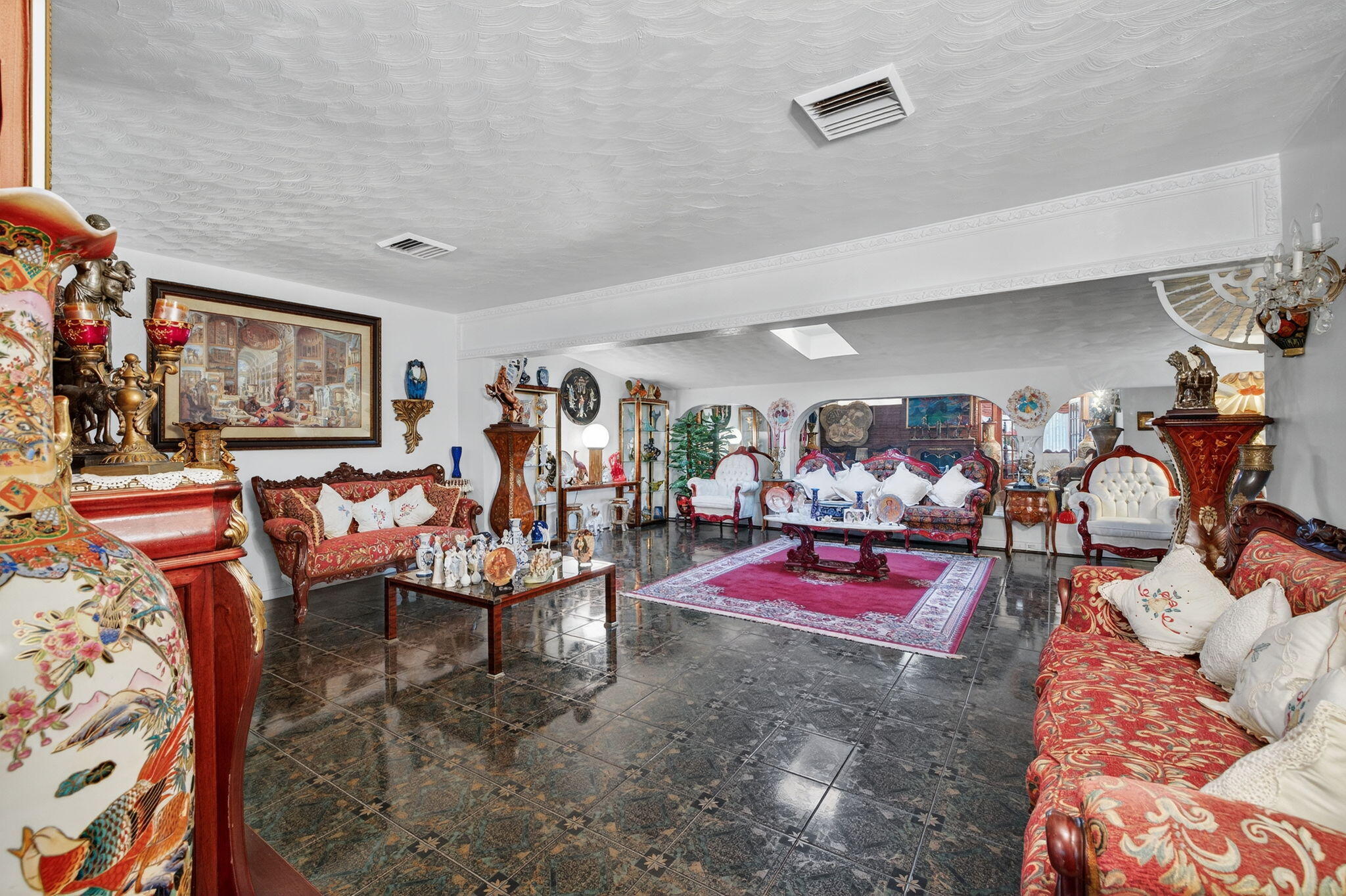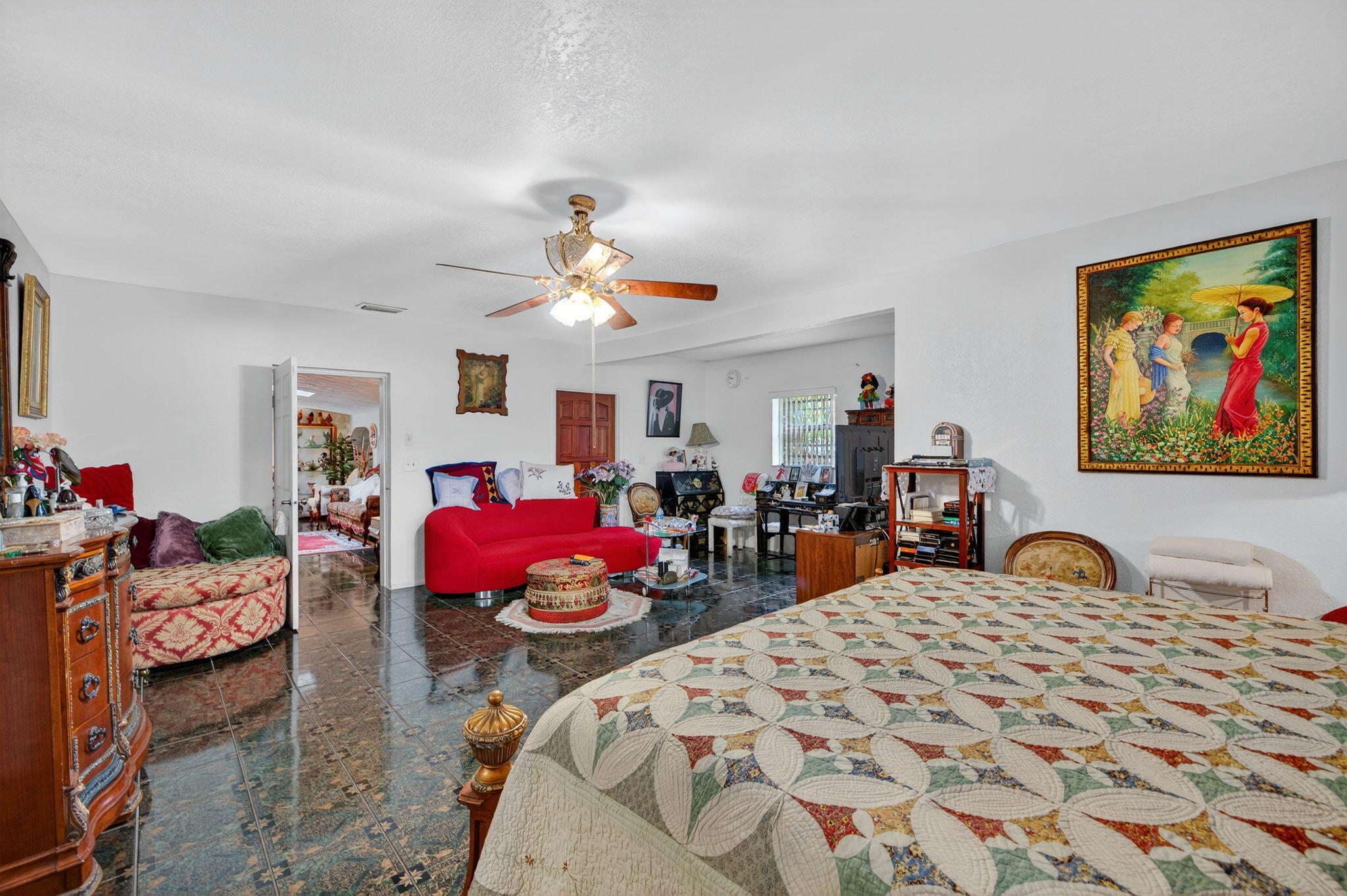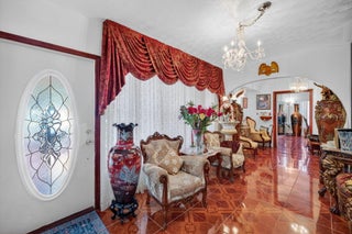 Step into vintage charm and timeless elegance on an oversized lot that offers space, character, and comfort. From the moment you arrive, the expansive circular driveway welcomes you home with style and convenience, setting the tone for this uniquely authentic property. Inside, a traditional floor plan unfolds beautifully, creating a natural flow that's perfect for both everyday living and effortless entertaining. The eat-in kitchen complete with stainless steel appliances, is a warm and inviting space, for enjoying breakfast and morning coffee or evening meals. Just steps away, an oversized dining room provides the ideal setting for hosting holiday dinners or any celebrations. The floating buffet, and built-in storage add both charm and function. In between the dining area andkitchen, is a separate bar/loungeyour very own spot for relaxing with friends or getting a beverage before enjoying a beautiful night on the backyard or patio while enjoying a quiet. The huge family room is the true heart of the home, with natural light from the skylight above and ceiling fans that keep the space breezy and comfortable year-round. The en-suite master bedroom is a private retreat, featuring a spacious sitting area and a generous walk-in closet, combination shower/tub and double sink. Whether you're entertaining guests or enjoying a quiet evening, this home offers a rare blend of character and comfort that's hard to findand even harder to leave.