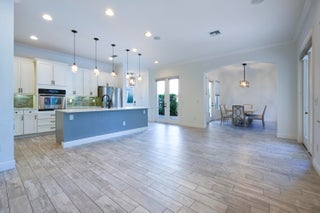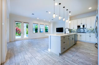 Step into modern comfort with this beautifully updated 3-bedroom, 2.5-bath pool home located in the sought-after gated community of Evergrene. Spanning over 3,200 square feet, this two-story residence features a 2022 saltwater pool and a spacious layout designed for both relaxation and entertaining. The main level offers a contemporary open flow with a renovated kitchen, formal dining room, and family room that opens to a private, landscaped backyard. Wood-look tile flooring, a neutral color palette, and modern finishes add a refined touch throughout. Upstairs, all bedrooms are arranged in a split layout with a central loft and laundry room for convenience. The expansive primary suite boasts a luxurious en-suite bath, a walk-in closet, and a screened-in balcony overlooking the pool.Evergrene offers resort-style amenities including a clubhouse, pool, hot tubs, tiki bar, restaurant, fitness centers, parks, a fishing pier, pickleball and volleyball courts, and year-round community events. Key updates include 2021 kitchen and bathroom renovations, 2021 wood-look tile flooring, 2023 exterior paint, 2017 A/C, and a 2023 water heater.