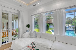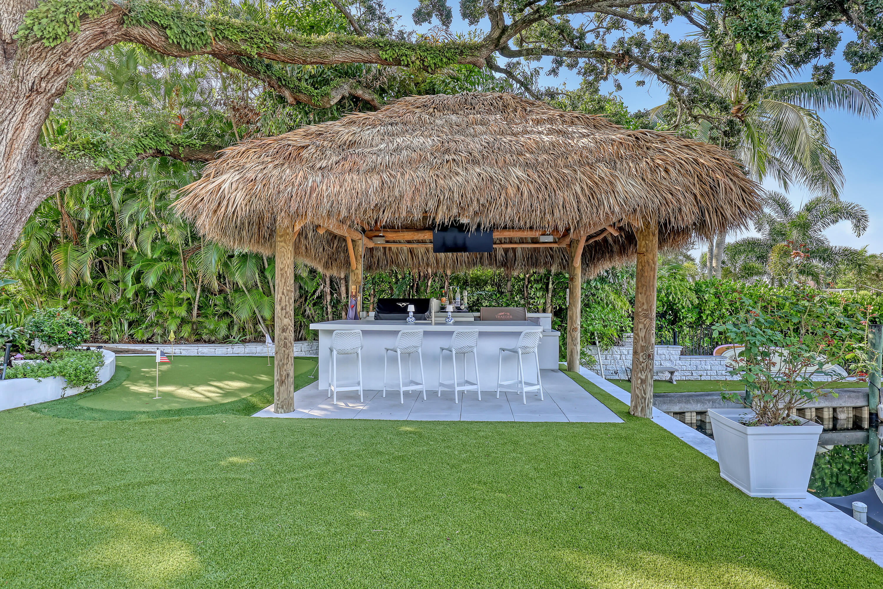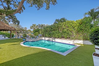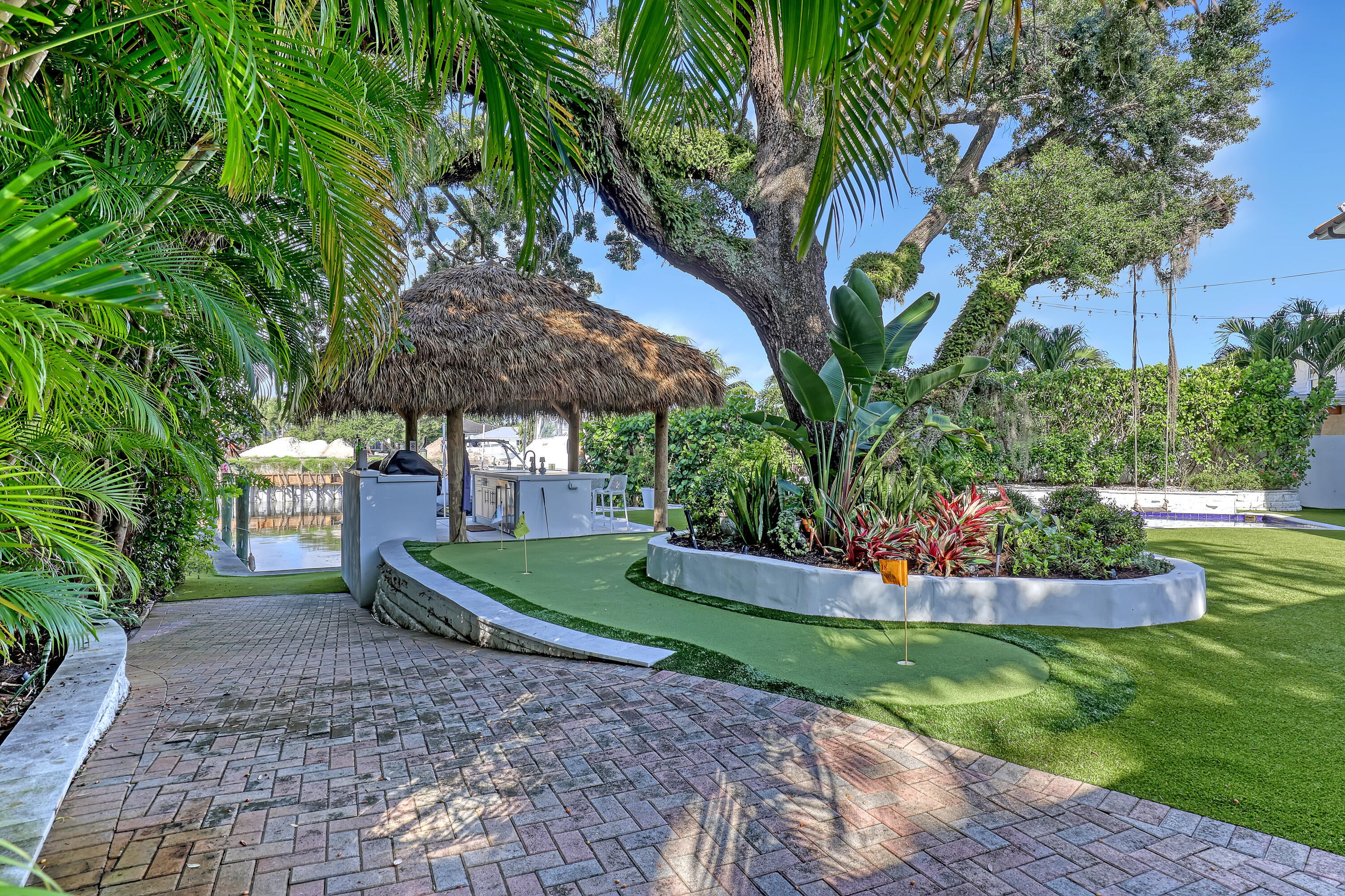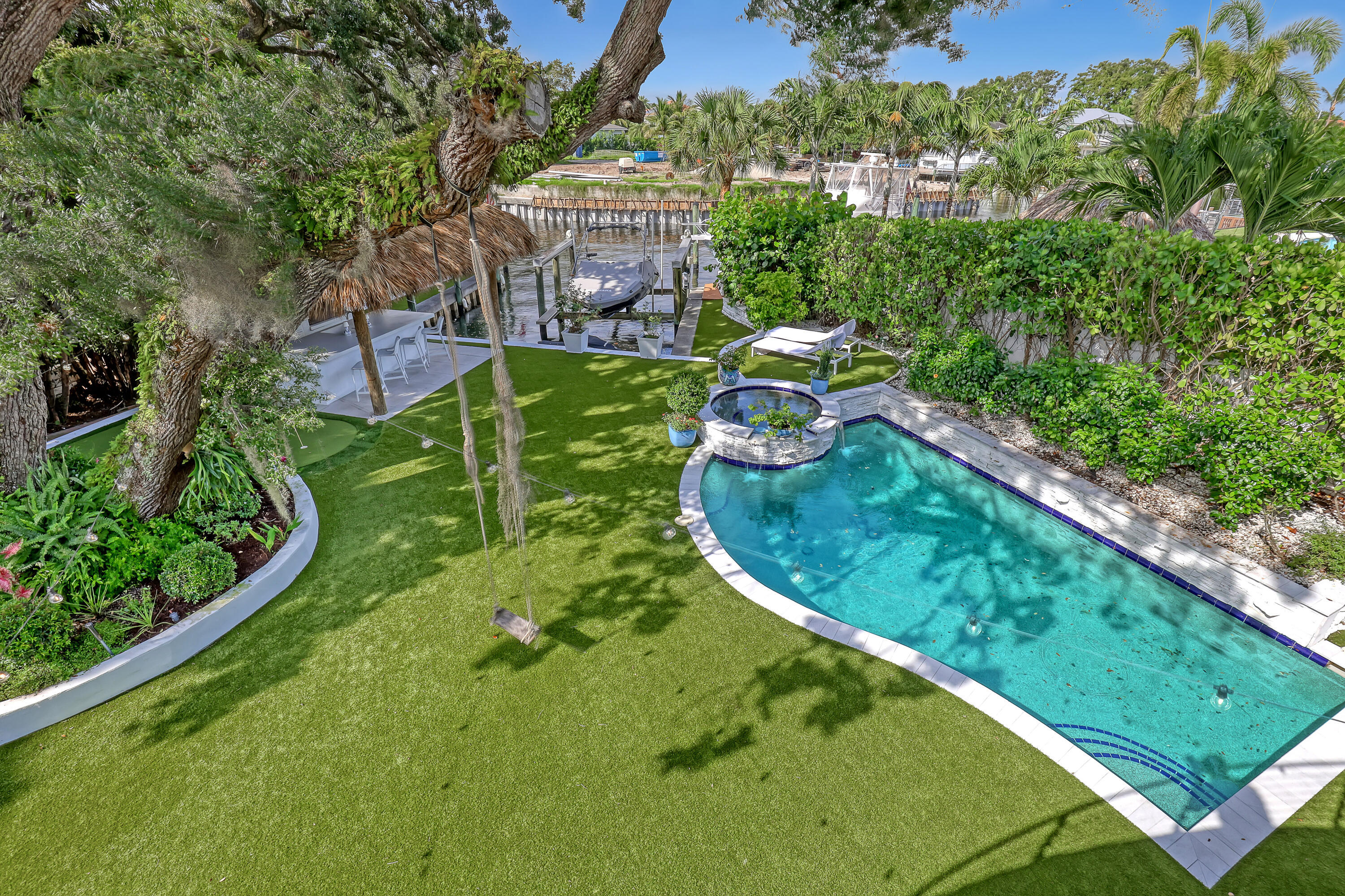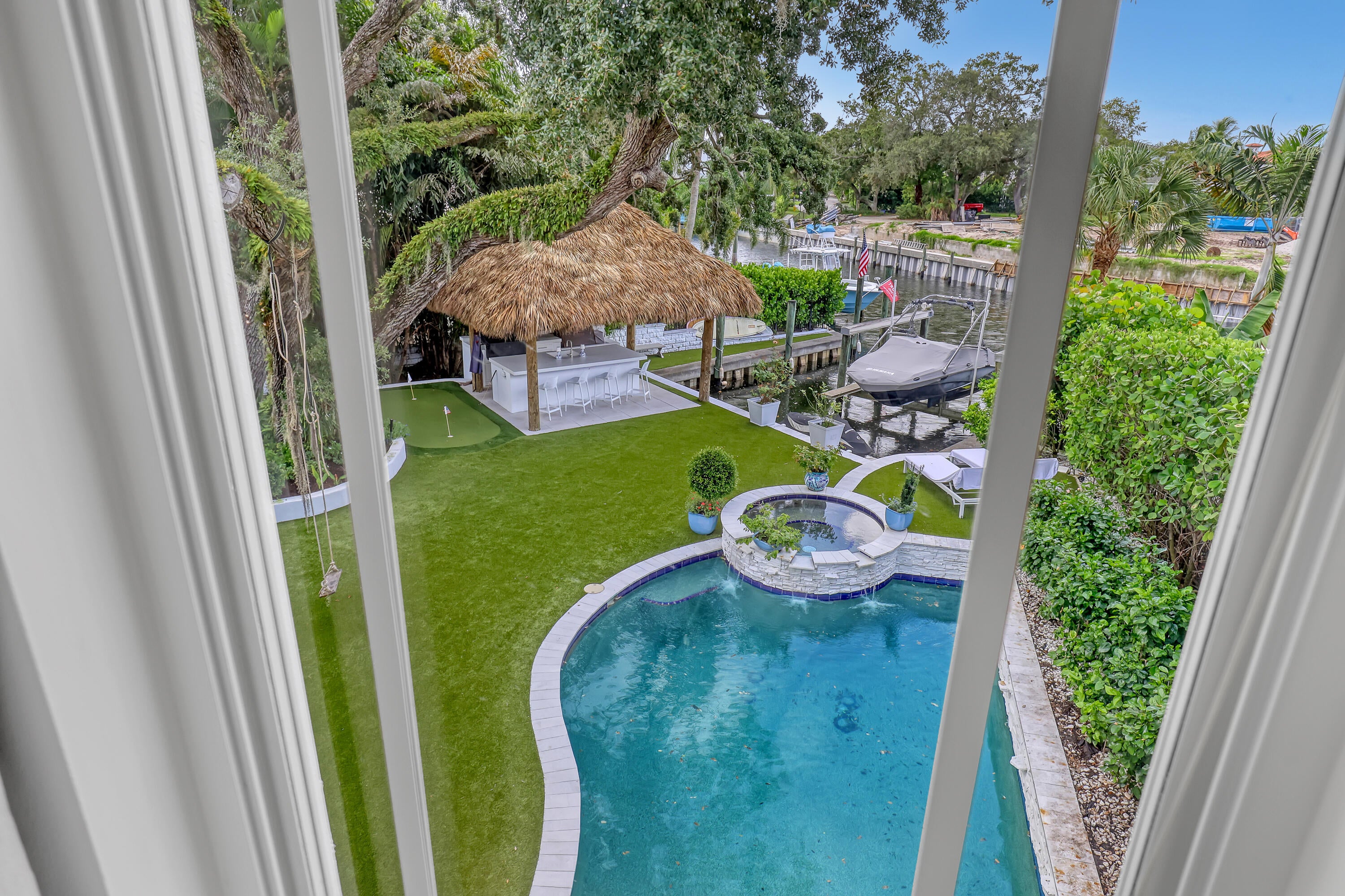 Welcome to 2338 Flamingo Road, a completely remodeled waterfront estate in the heart of Palm Beach Gardens. This luxurious 5-bedroom, 5.1-bathroom home offers top-of-the-line upgrades, modern finishes, and a layout designed for comfort, entertaining, and effortless indoor-outdoor living. Available seasonally or annually--call for more pricing details.The home features two primary suites one on the main level and one upstairs each with separate his-and-hers walk-in closets. The upstairs suite also includes a loft and a spacious terrace with peaceful waterfront views. The chef's kitchen is equipped with a commercial-grade 8-burner gas range, an oversized 15-foot island, a walk-in pantry, a reverse osmosis system, and a whole-home water softener, ideal for cooking, drinking, and wellness. Impact-rated hurricane windows and a whole-house generator provide added protection and peace of mind. Step outside to your private tropical retreat. The backyard includes a saltwater pool and spa, a covered lounge area, a newly re-thatched tiki hut, and a full outdoor kitchen with a gas grill, Traeger smoker, ice maker, and bar seating. The yard is finished with artificial turf and a putting green for easy maintenance and year-round fun. For boaters, the private dock includes a 25,000 lb boat lift, an additional slip for boats up to 40 feet, and a floating dock for jet skis. It's just a short boat ride to River House, Waterway Café, Sailfish Marina, and other favorite waterfront dining spots. Ideally located near high-end shopping, dining, I-95, the Turnpike, and only 20 minutes from Palm Beach International Airport, this home is perfect as a seasonal getaway, investment rental, or full-time residence. Fully updated and move-in ready, this is South Florida living at its best.