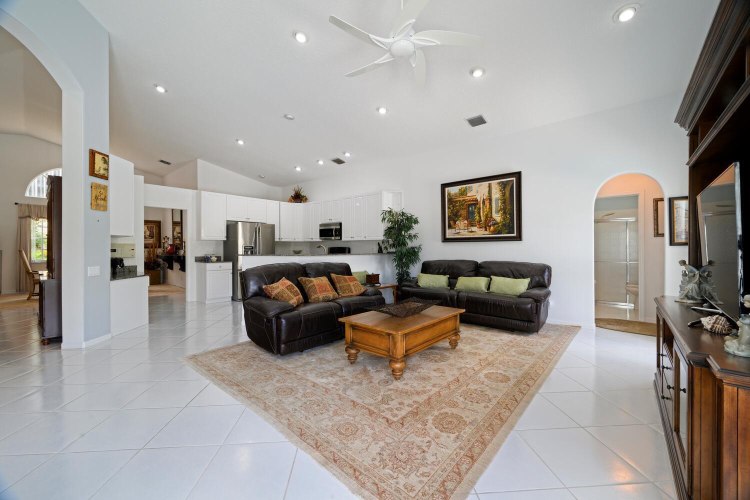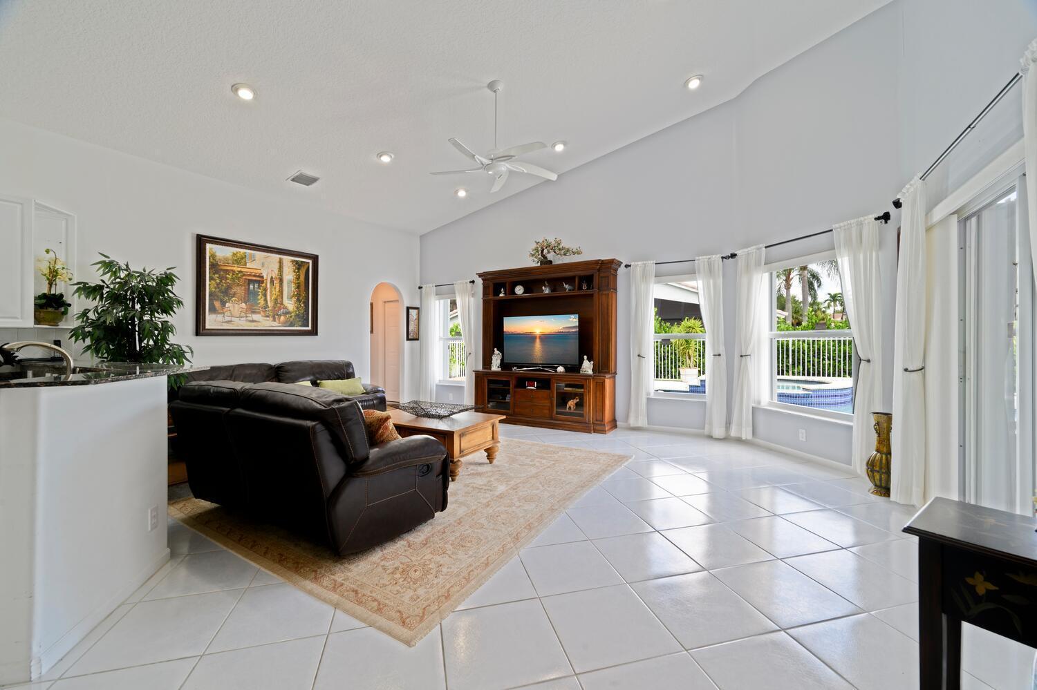 NEW ROOF will be installed in 3 weeks. This stunning residence features 3 spacious bedrooms and 3 full bathrooms, situated on a desirable corner lot. The large yard is beautifully landscaped with luxurious touches, offering ample space for outdoor activities. Relax or entertain on the screened-in patio overlooking your private pool--a perfect oasis. The large, open kitchen faces the pool area and is equipped with stainless steel appliances and granite countertop, making it ideal for cooking and casual gatherings. The home is partially furnished, included is all furniture for the three bedrooms, a stylish living room wall unit, and all the outdoor furniture, ready for you to move in and enjoy. The a/c and water heater are approximately 1 year old. No mandatory golf membership fee.Don't miss the opportunity to own this beautiful home that combines style, comfort, and outdoor leisure. HOA fee includes Xfinity X1 Cable TV and High Speed Internet, digital preferred bulk package. Premium channels include HBO and Showtime. Three X1 boxes and one digital box. Lawn cutting and maintenance of common areas and homeowner lots. Irrigation of lawn and sprinkler maintenance on individual lots and common areas, master association common area maintenance, double gate entry, 24/7 manned gate at Lakeridge Falls entrance. Recently updated Clubhouse: Ballroom with full kitchen, arts & crafts Room, billiard Suite, card Rooms, gym featuring full workout circle, resort style heated/chilled poo, hot tub, his/her dry saunas, 1 har-tru tennis court and 2 har tru court marked for pickleball, full social entertainment membership, full-time clubhouse administrator and maintenance person, exterior house painting every 7 -8 years, homeowner roof cleaning every 2.5 years, annual tree trimming.