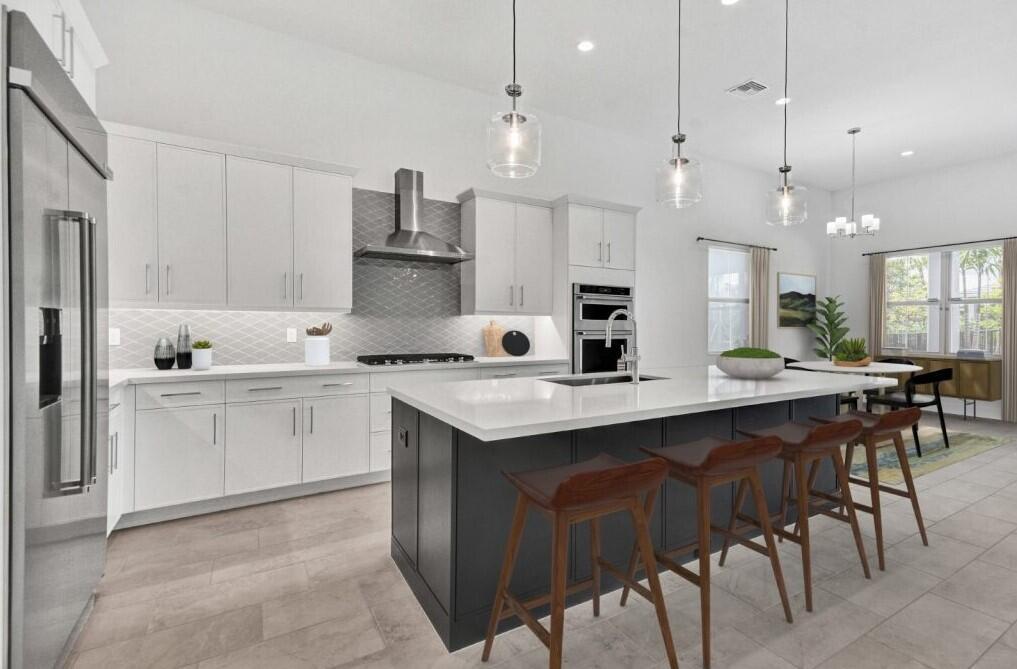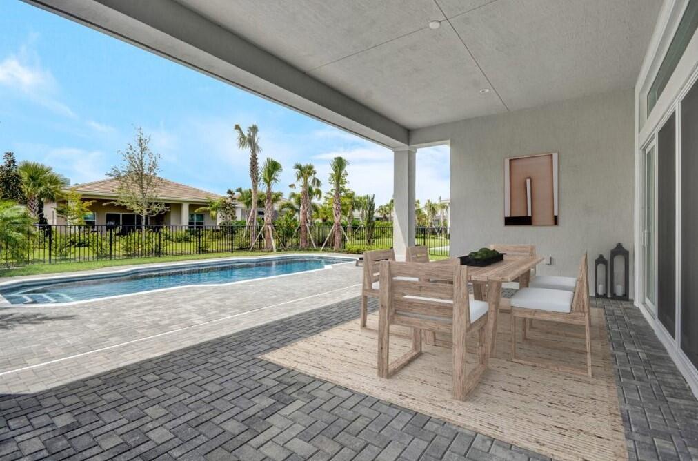 Step into the elegance of the Maya Contemporary a beautifully designed home that offers modern sophistication and everyday comfort. You'll be captivated by the lush, professionally landscaped yard, creating a serene and private outdoor setting complete with a sparkling pool and spacious covered lanai. Inside, the open-concept floor plan is enhanced by sleek porcelain tile flooring throughout, giving the home a seamless, elevated look. The designer kitchen features two-tone cabinetry, upgraded stainless steel appliances, a striking backsplash. The primary suite is a true retreat, showcasing a spacious layout, walk in closet, luxurious finishes, and a spa-inspired bathroom with dual vanities and an oversized walk-in shower.