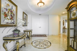 Rarely available Cristelle Cay condo--ready for a quick move-in! This prestigious building has only 25 condos. Enjoy 3,254 square feet under air living space, floor to ceiling impact windows and sliders, a semi-private elevator, both a deeded garage and carport space, 4 covered balconies, 3 storage rooms, and lots of natural light! This condo is 1/2 of the 10th floor! Walk in and see lots of wide water! Direct ocean and north exposures--and lovely marble flooring throughout. You have unobstructed views of the ocean, pool, beach, city skyline, and some Intracoastal views too! Black-outs in all 3 bedrooms--electric blinds in the primary bedroom. The primary has a large walk-in customized closet with His and Her sides. The 3rd bedroom faces the ocean and has a murphy bed. Exceptional value!