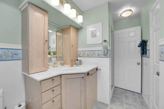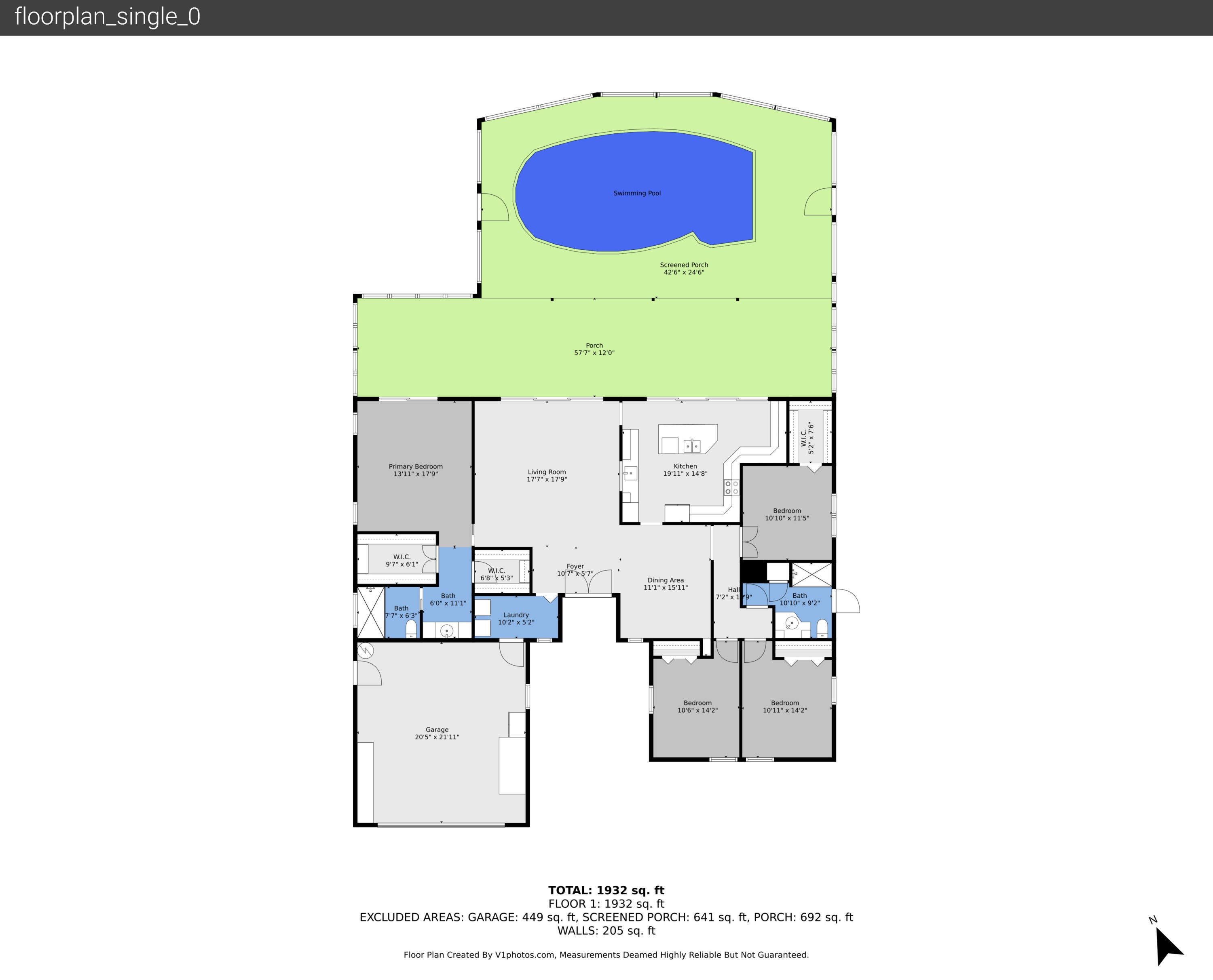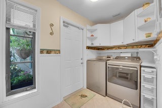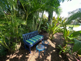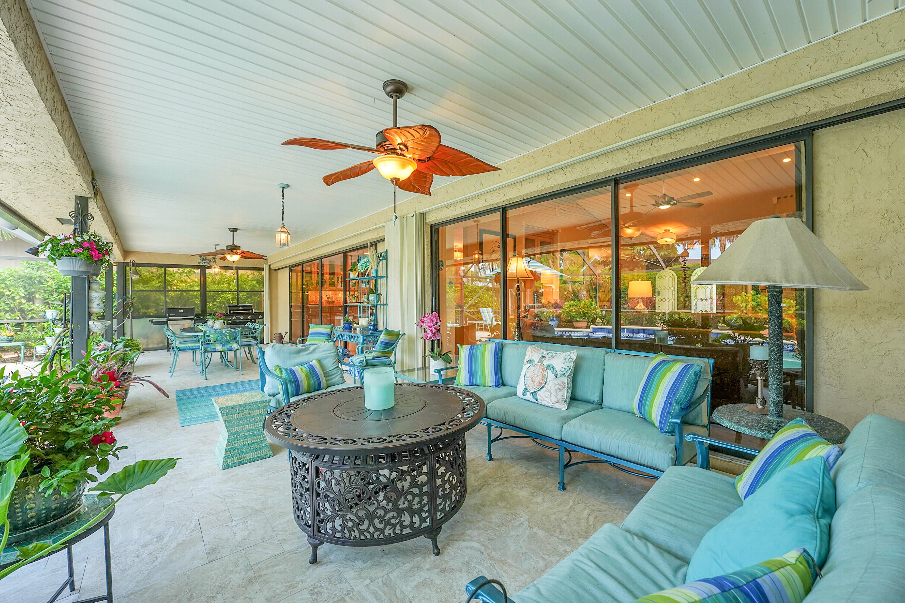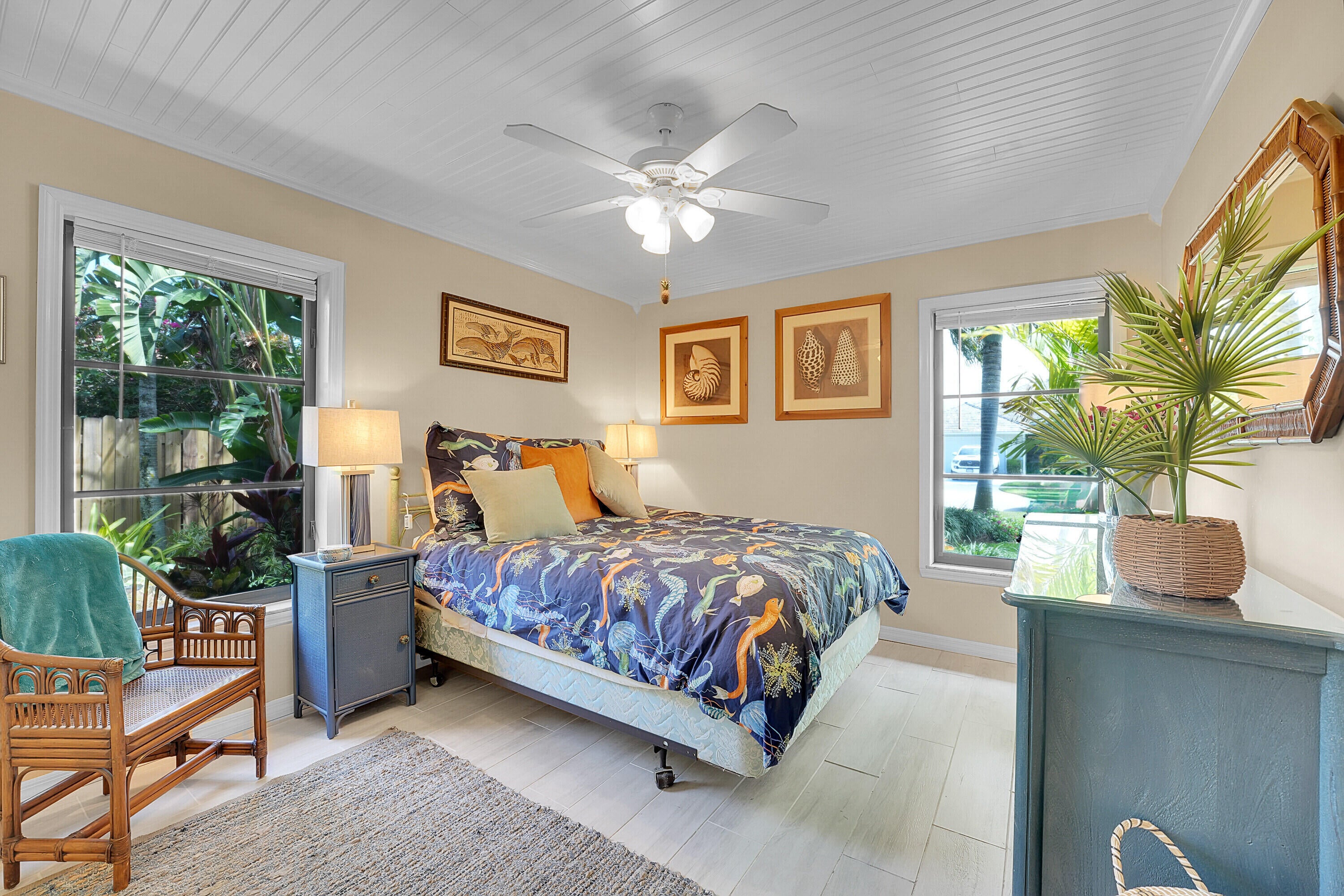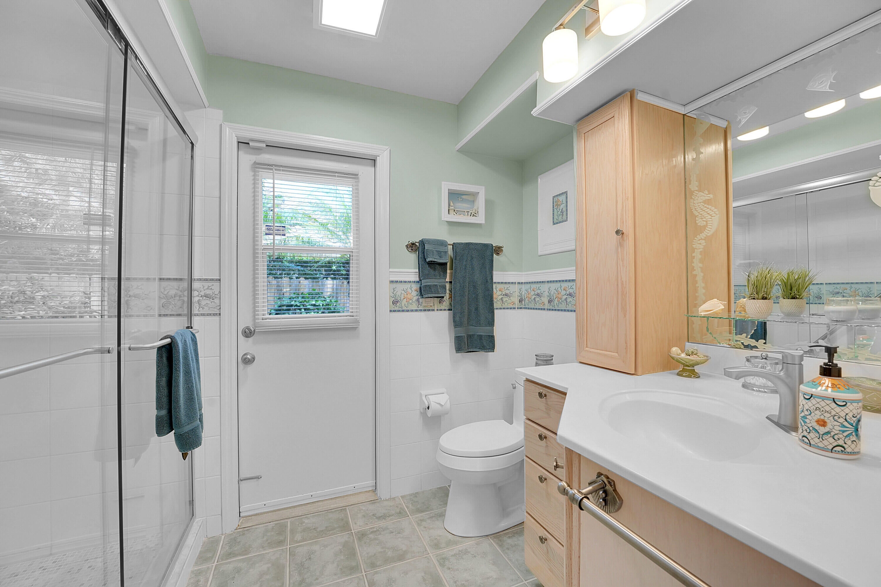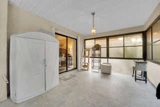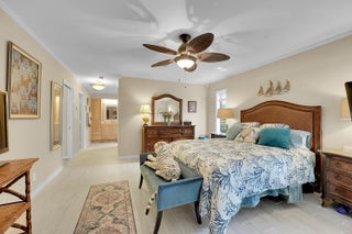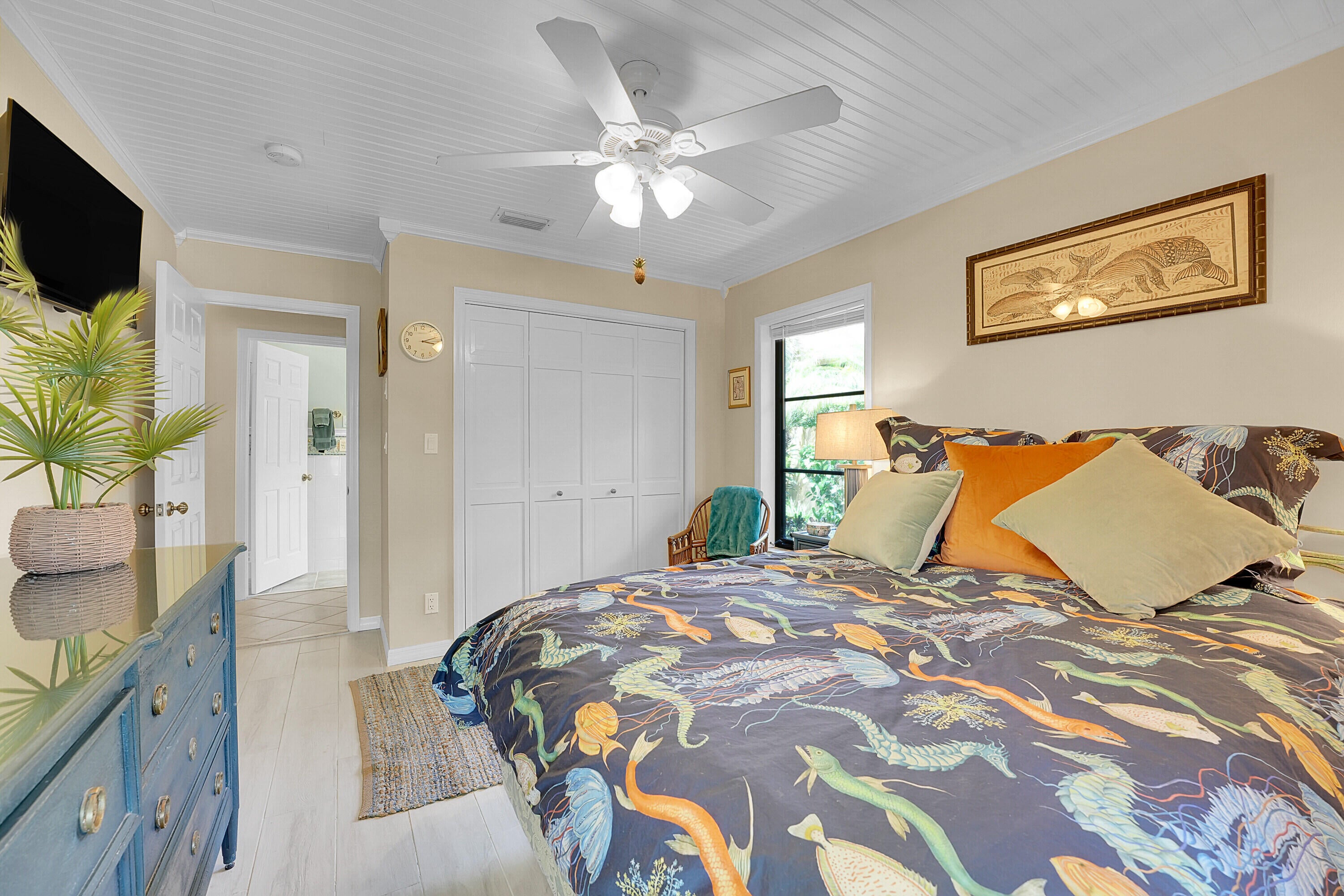 TROPICAL OASIS! Lush Landscaping welcomes you to this beautiful One Story, CBS, 4 Bedroom 2 Full Bathroom sitting on a .23-acre lot. The home offers a serene interior location, spectacular garden and screened in pool w(pool heater/chiller 2024). The home features a split floor plan w/dual AC's (2024, 2018) On one side you have the Owners' suite has two large walk-in closets w/built-in shelving. Owners Bath has a sunken shower w/ two Shower heads. The other side features 3 bedrooms each w/ample closet space and a full bathroom. The gourmet kitchen features generous cabinet storage space, wet bar with pass through to the living room, SS appliances and 42'' custom cabinets. Plank Tile or vinyl flooring throughout. Barreled tile roof w/impact skylights (2019). The living room has vaultedceilings. Large bedrooms with ample closet space. Inside Laundry room with newer Washer (2021) and Dryer(2020). Full hurricane protection w/impact windows and accordion shutters. Hot Water Heater is 2024, Flat roof is 2019. A highlight of this home is the covered entrance way with custom leaded glass doors Rear covered porch runs the entire length of the home, and provides a covered exterior living and dining area. The lot is one of the larger ones in the community and also has an exterior shaded seating area in the front yard. Two car Garage has built-in locked closets and ample shelf space and work bench, as well as a utility sink. Garage door (2011) is impact rated and has an automatic Genie garage door opener that is integrated with the home security system. The home has a smart home security system by Guardian Security that includes burglar and fire alarm, interior and doorbell cameras, and remote access for the front door key pad and garage door that can be accessed from owner's smart phone. Frenchmen's Landing is a gated community with an unmanned gate, and access by remote opener or smart phone app. The community pond is stocked and fishing is allowed from the dock and gazebo. The neighborhood park hosts various social events throughout the year and has two tennis courts, a basketball court and a children's playground. Frenchmen's Landing is a highly desirable location and is just minutes from the public beaches on Singer Island or Juno Beach, the John D. MacArthur State Park on Singer Island and some of the best scuba diving and golf courses in the country. There is shopping and restaurants galore within minutes of the community, and the community is close to I-95, the Turnpike, PBI International Airport, the Port of West Palm Beach and the Brightline train.