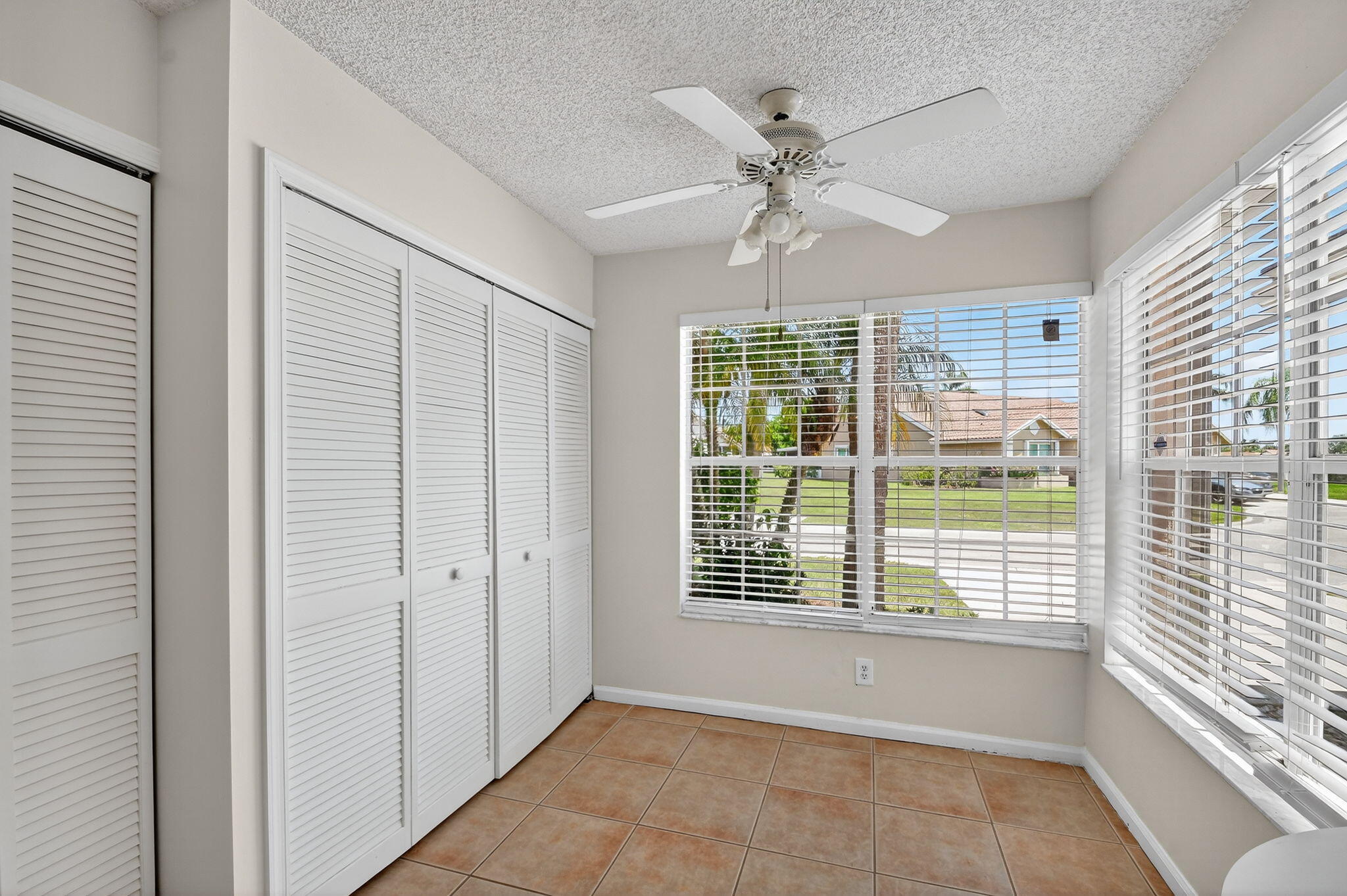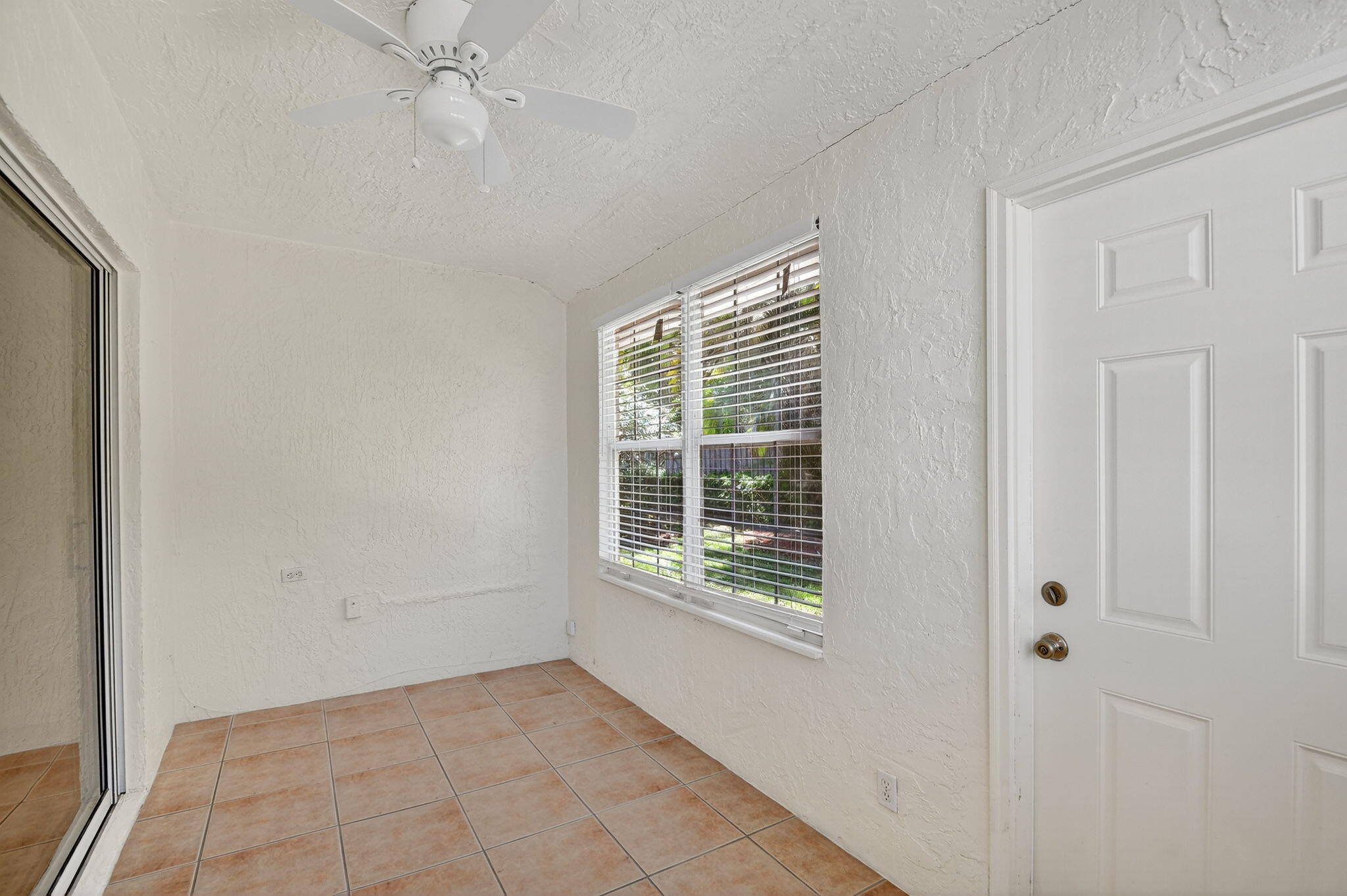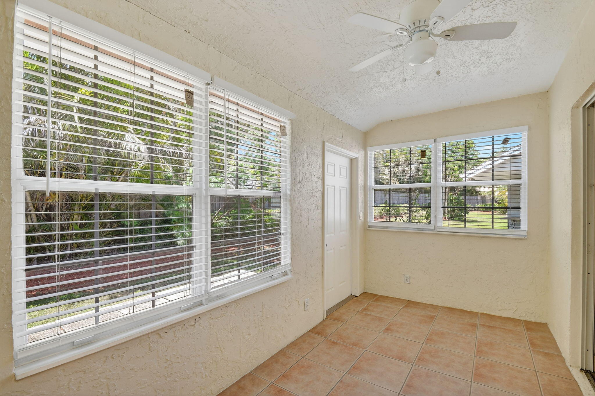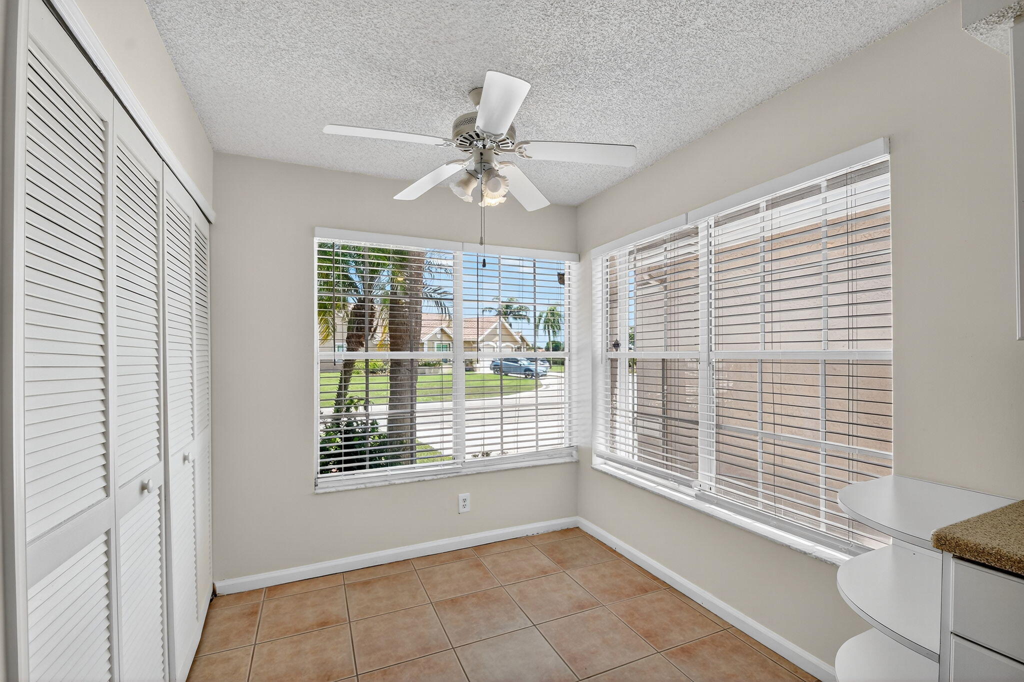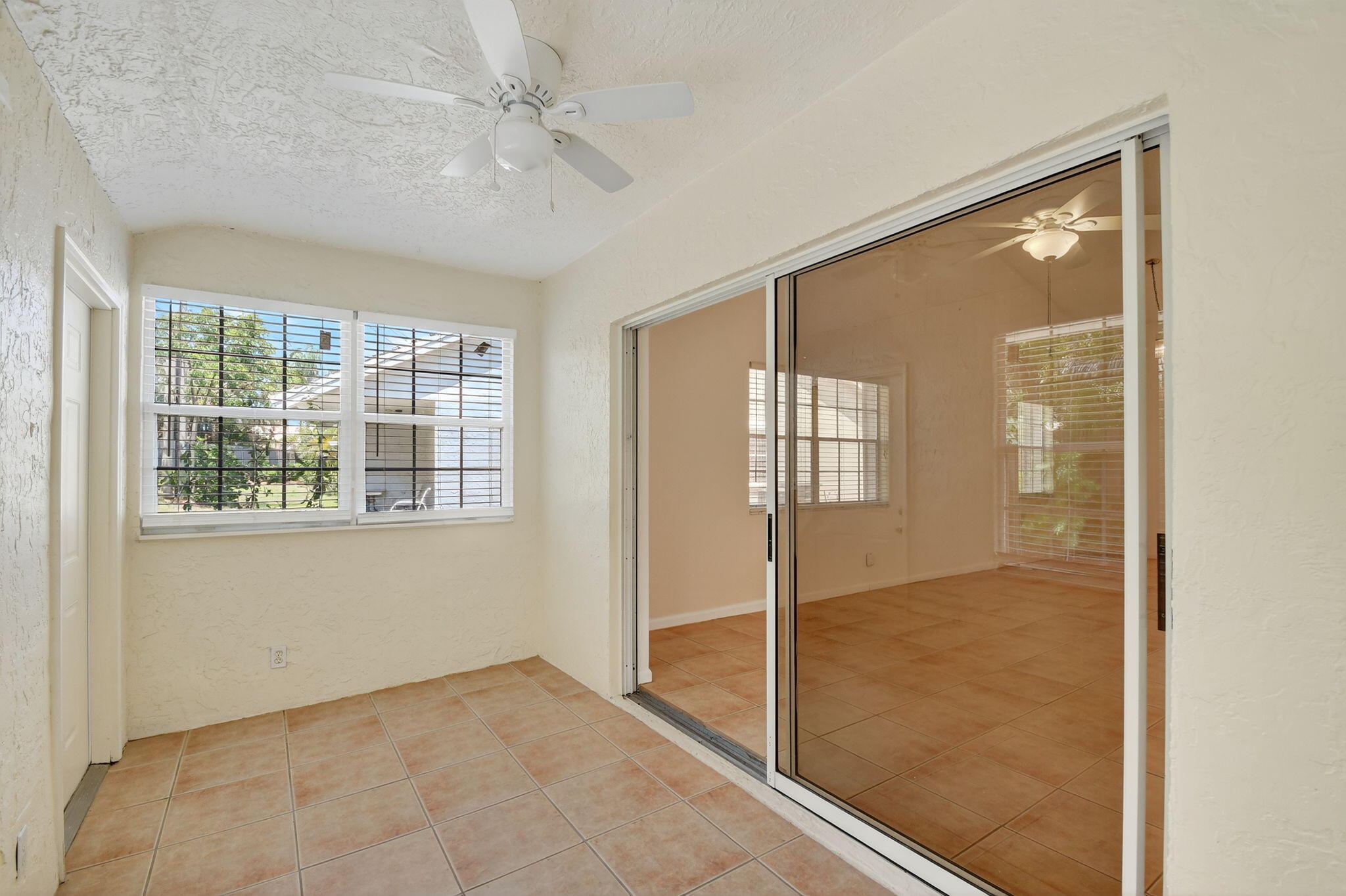 Situated in the sought-after Northtree community, this charming 2-bedroom, 2-bath villa with a 1-car garage boasts a prime location near shopping, dining, Park Vista High School, and the West Boynton Park and Recreation Center. Inside, enjoy modern stainless steel appliances, soaring volume ceilings, and a spacious walk-in closet. The enclosed, converted patio provides versatile extra living or storage space, while accordion ''easy-close'' shutters simplify storm preparation. With a roof replaced in 2013, you can relax worry-free for years to come. The association fee covers lawn care, cable, internet, and exterior painting, ensuring low-maintenance living. Community amenities include a pool, tennis courts, playground, and basketball court, offering endless recreation at your doorstep.
