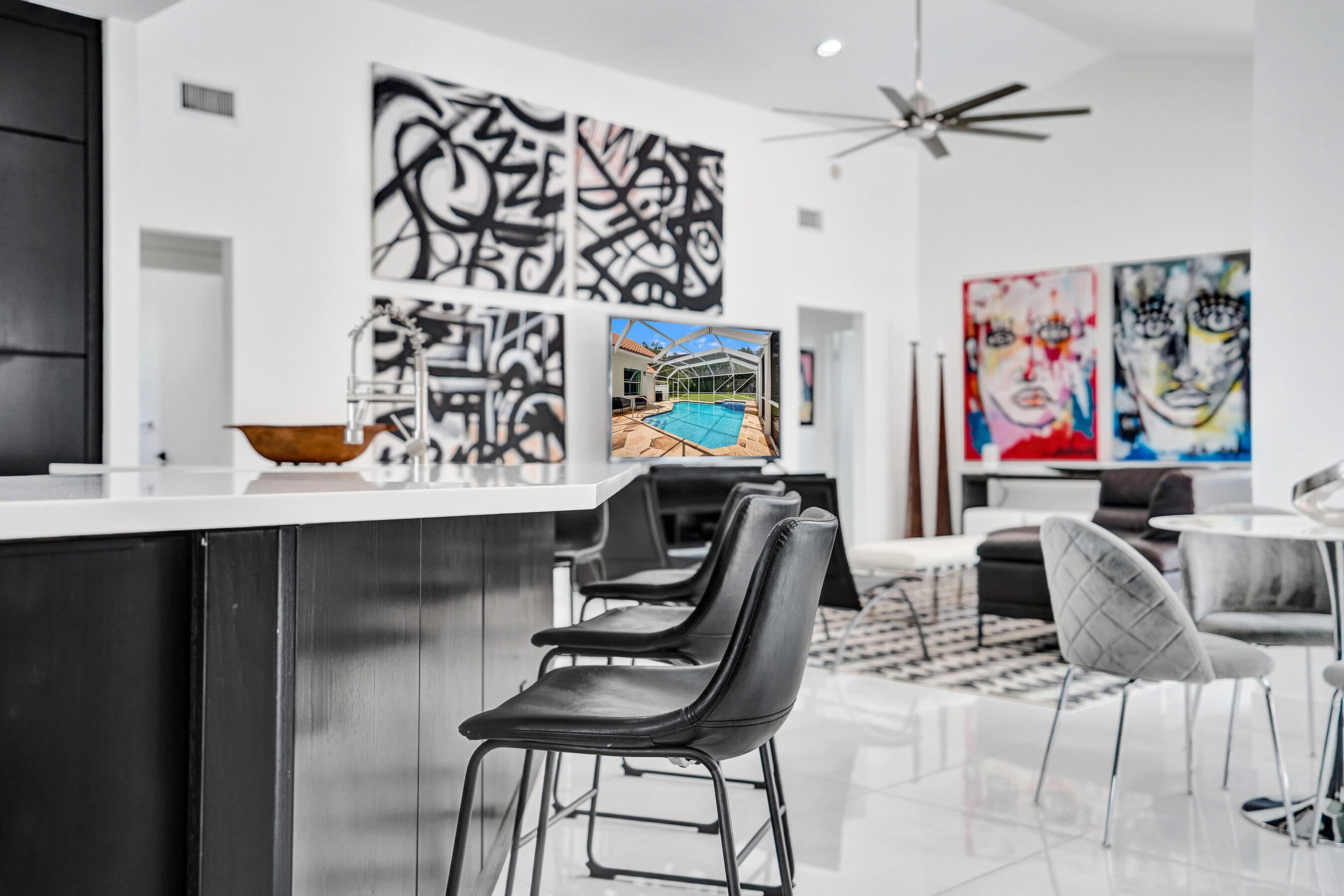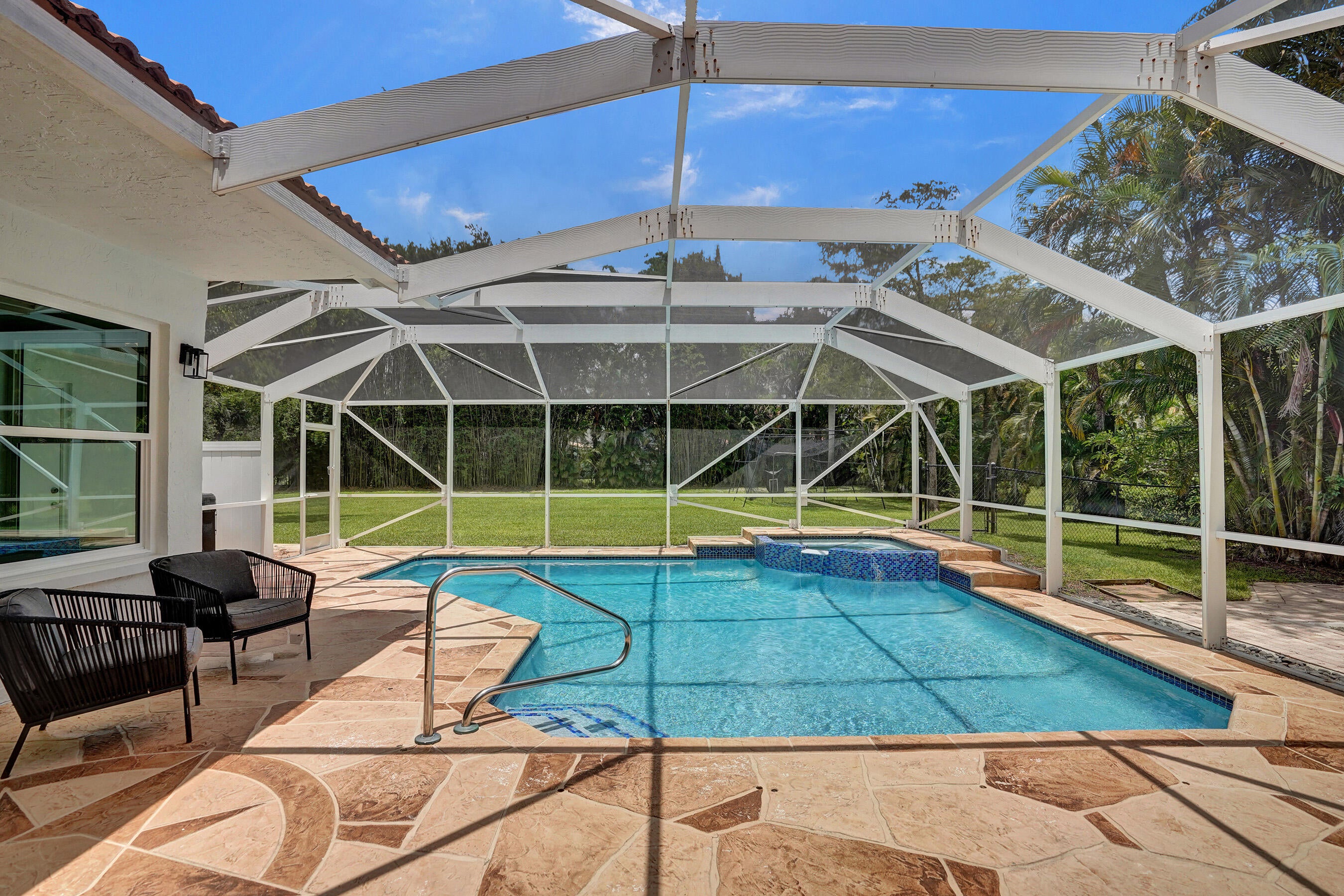 Welcome to Legend Lakes Estates. Spacious Well Appointed 1-story, 3-Way Split Bedroom Pool Home on .65 acres. As you step into the foyer you will be captivated by the Vaulted Ceilings and Spacious well Designed Living Space. New Tile Floors throughout the home. This Amazing Home features 4 generiously sized bedrooms 3 large baths - Cabana Bath which steps out to the Screened Covered Pool & Spa Area. $35,000 SELLER ROOF CREDIT. NEW AC, IMPACT WINDOWS & CUSTOM KITCHEN WITH FARM SINK AND EXPANSIVE QUARTZ COUNTER-TOPS! A-RATED SCHOOL DISTRICT! Master Suite with Sitting/Office Space. Inside Laundry. Fully Fenced Yard w Sprinkler on Well. Low HOA fee of $125 mth includes pickleball, tennis, and basketball courts. Near Restaurants, Shopping, Mall, Airports, & Turnpike! See this Breathtaking ho