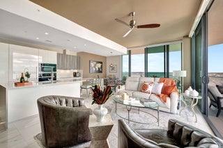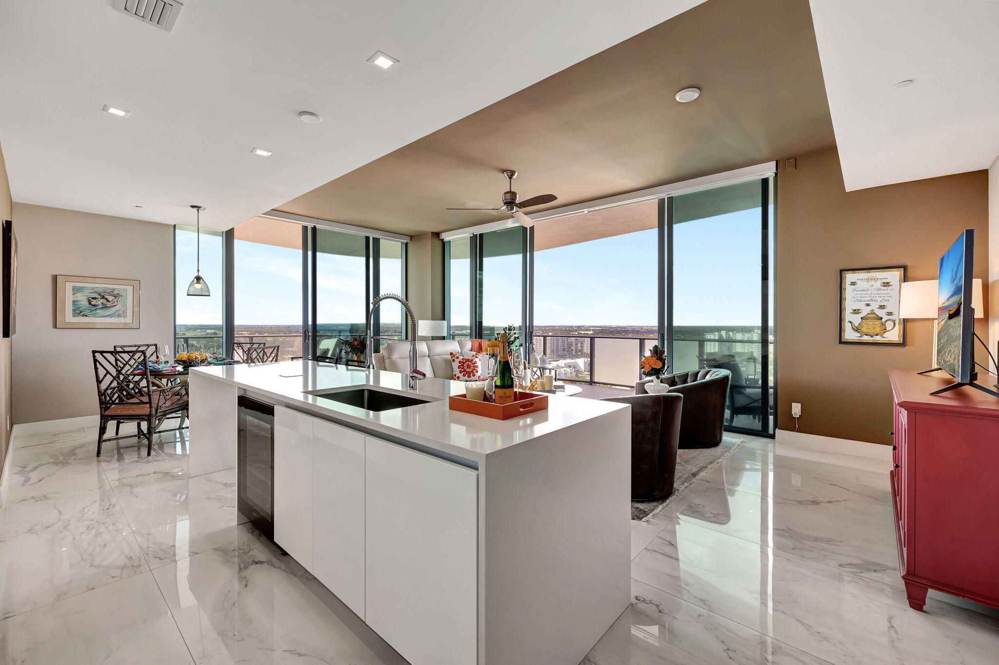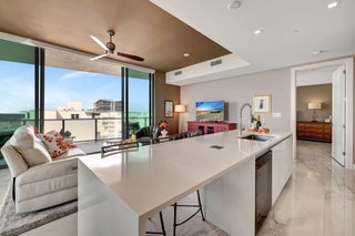 OCEANFRONT PENTHOUSE CORNER UNIT W/SOARING 10-FT CEILINGS. 2BR, 2.5BA AND 500 SQ.FT. WRAP-AROUND BALCONY. WHY SETTLE FOR LESS? Enjoy floor-to-ceiling windows, and sweeping views of the ocean, Intracoastal, and city skyline. The open-concept design features Italian contemporary cabinetry, quartz countertops, a waterfall kitchen island, and high-end Miele & Subzero appliances. Two primary suites offer luxurious retreats. Sabbia Beach elevates resort-style living with exceptional amenities which include beach cabanas, full beach service, a sparkling pool, hot tub, spa, fitness center, sauna, grilling area, fire pit, 24/7 valet service, dog run and an exclusive private party room. Walk to restaurants and shopping or just relax at your private beach. Resort living at its finest!
