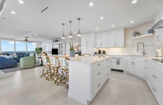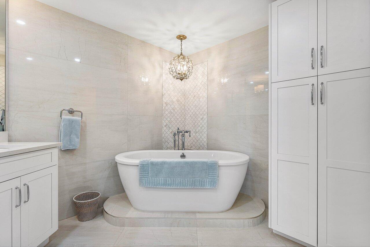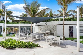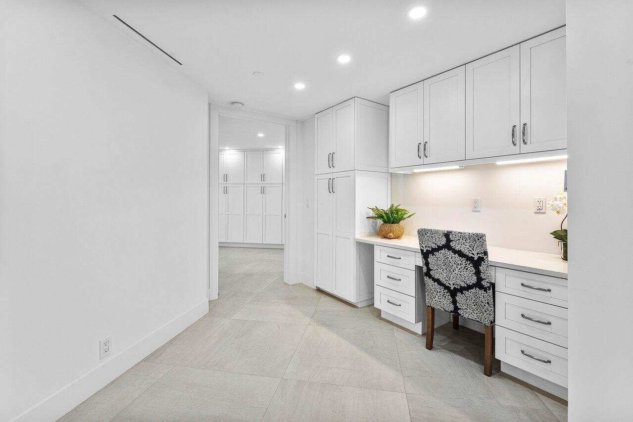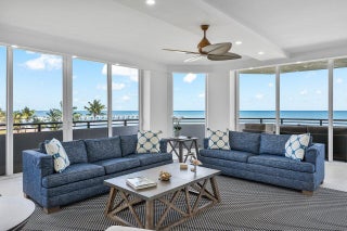 Your 2 pets are welcome at this newly Renovated Direct Oceanfront wraparound 2 Bedroom - 2.5 Bath corner residence in the exclusive Palm Beach Hampton. This light bright and airy contemporary home offers a coastal feel with open spaces & forever ocean views. Every room is beautifully detailed with porcelain tile, custom lighting & built-ins. The oceanfront master suite features floor to ceiling glass, custom closets, a stunning bath with dual sinks, marble shower & soaking tub. The guest suite has 4 custom bunk-beds that can accommodate all your children & grandchildren. The newly designed kitchen is an epicure's delight with Wolf & Subzero appliances and island seating for 6. There is a beautifully designed workplace with custom built-ins and separate powder room with elegant cabinetry & custom wall tile. This sought-after oceanfront apartment is available fully furnished and comes with a remarkable private poolside cabana with full bath, 2 garage parking spaces & additional storage locker. Bask in an ultra-luxury lifestyle only the Palm Beach Hampton can offer. Stay fit in the new fitness facility or enjoy a game of tennis or pickle-ball. Security includes 24/7 Manned Gate & Doormen, 2 Garage Spaces.