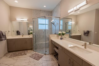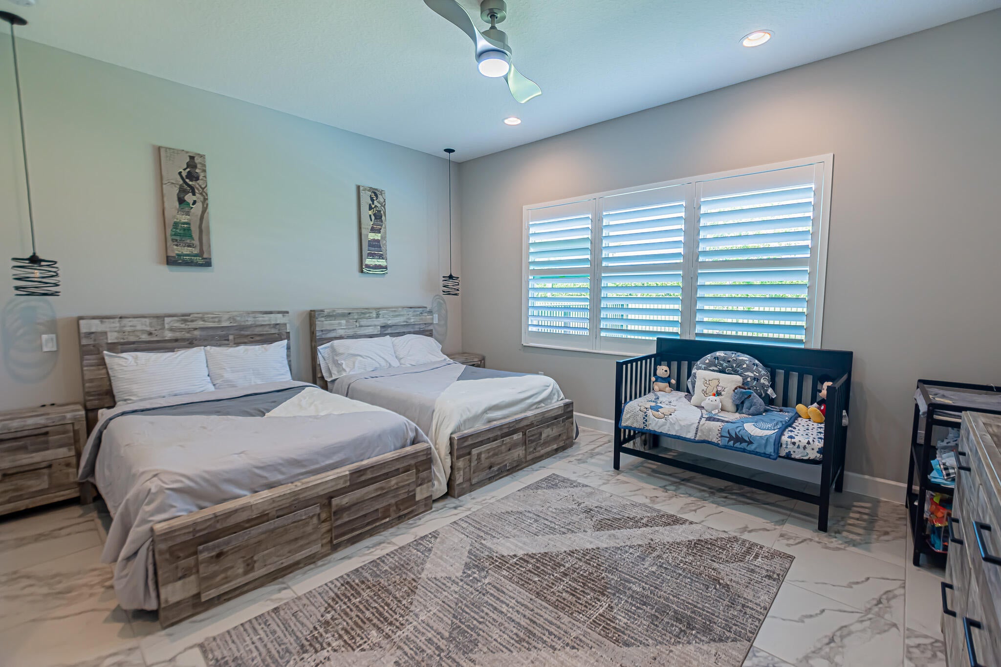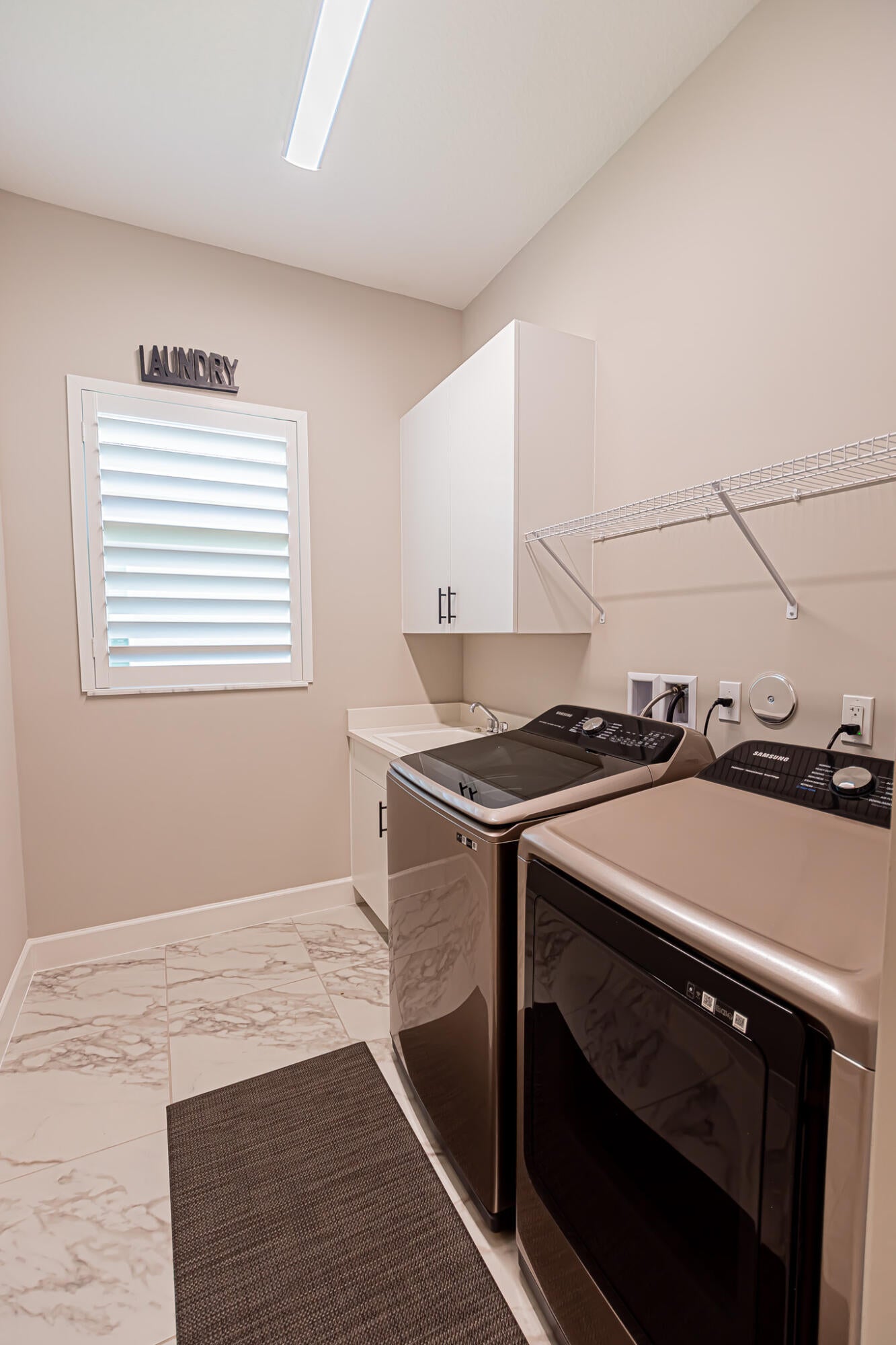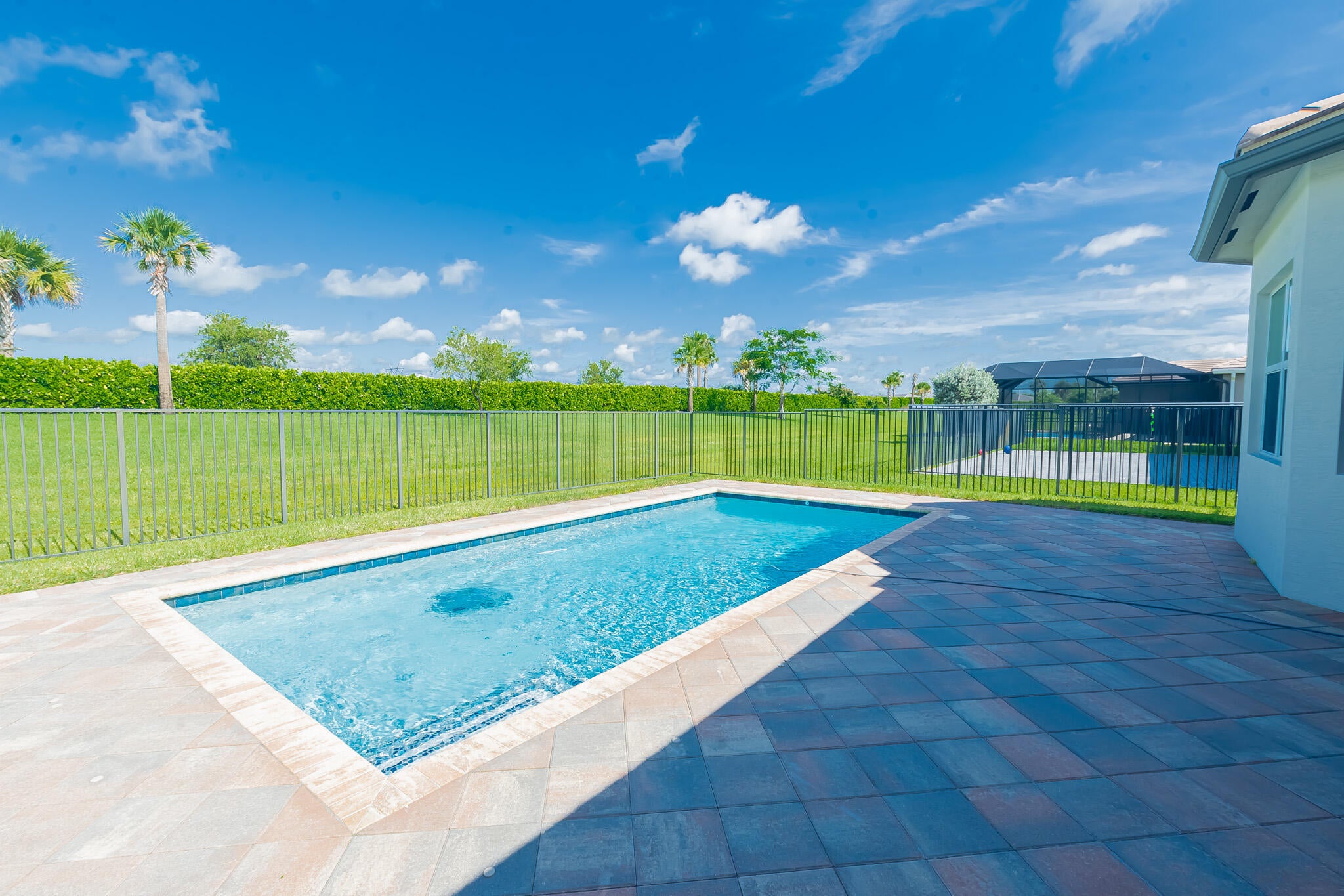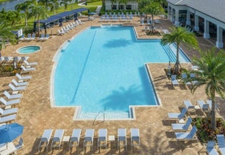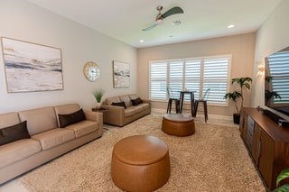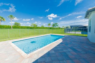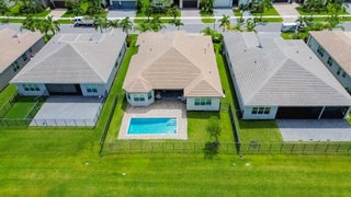 Riverland, Valencia Grove! Live the luxe lifestyle in this stunning Bianca Model featuring 2 bedrooms plus a den & flex room, 3 bathrooms, 2-car garage + dedicated golf cart garage - complete with pool on an oversized lot! High-end finishes shine throughout: plantation shutters, designer fixtures, and elegant tile floors. The gourmet kitchen impresses with quartz counters, vented gas cooktop, wall oven/microwave, touchscreen 4-door fridge, cook island, soft-close cabinets, and huge pantry. Enjoy a built-in speaker system inside and out, 2-zone A/C, and a private fenced yard perfect for entertaining on the spacious lanai. Split bedrooms offer comfort and privacy. Resort-style living awaits--clubhouse, fitness, arts, pickleball, pools & more in this vibrant 55+ community!