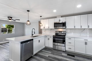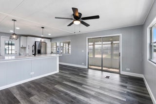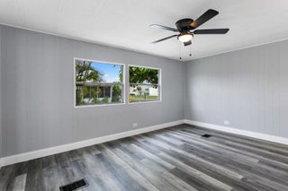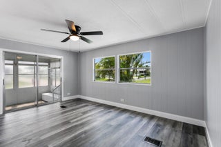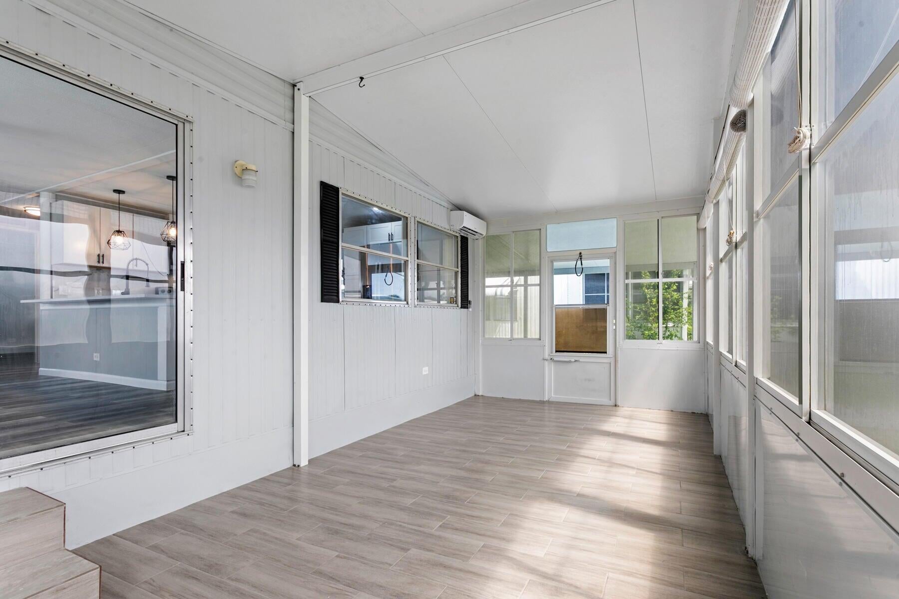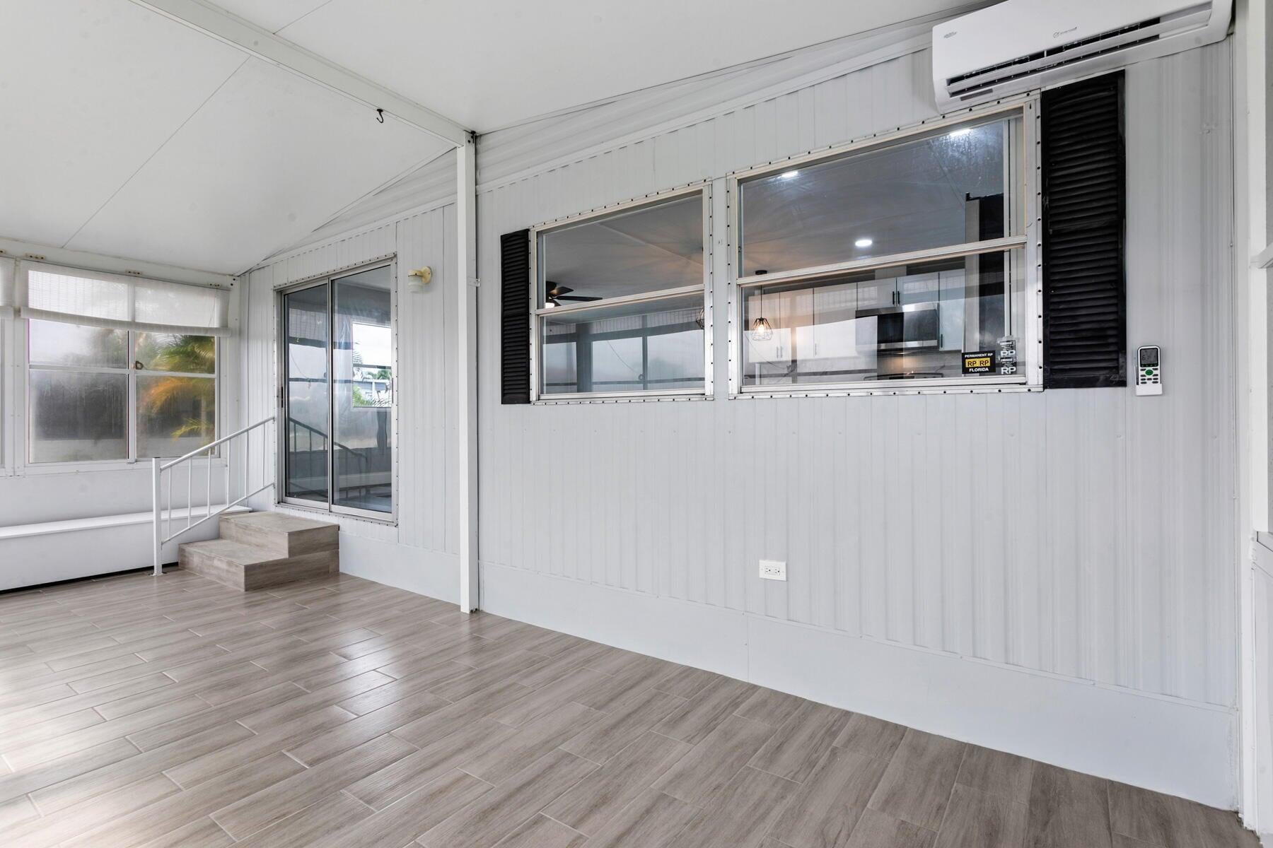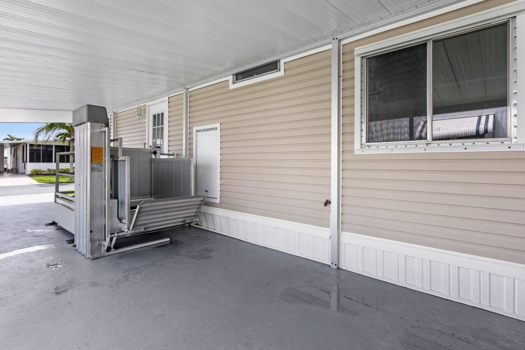 Motivated Seller! Welcome to this beautifully remodeled 2-bedroom, 2-bathroom home located in a gated 55+ community. This move-in-ready residence features a brand-new kitchen complete with white shaker cabinets, quartz countertops, ample pantry storage, new stainless steel appliances, and stylish pendant lighting. Enjoy new vinyl flooring and fresh paint throughout, giving the entire home a clean and modern feel. Both bedrooms offer spacious walk-in closets, and the bathrooms have been completely updated with new tile, vanities, toilets, and walk-in showers. Relax in the bright Florida Room, featuring new tile flooring, a split mini A/C system, and an eastern exposure for those refreshing morning breezes. The home is equipped with hurricane protection on windowsand includes a private shed for additional storage. An elevator lift at the front entrance provides easy access. Located in a secure, 24-hour manned gated community with a low HOA fee of just $250/month and no land lease, this home is conveniently close to shopping, dining, and the beaches.