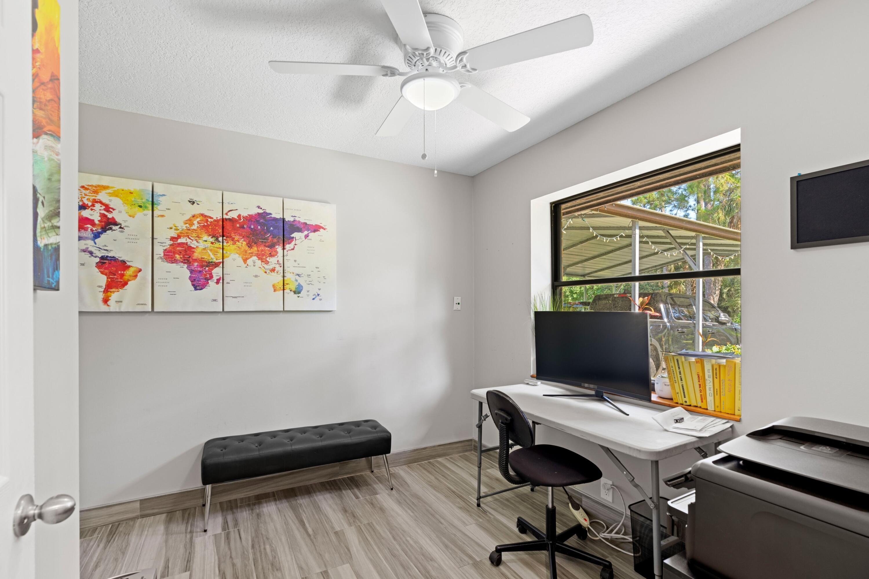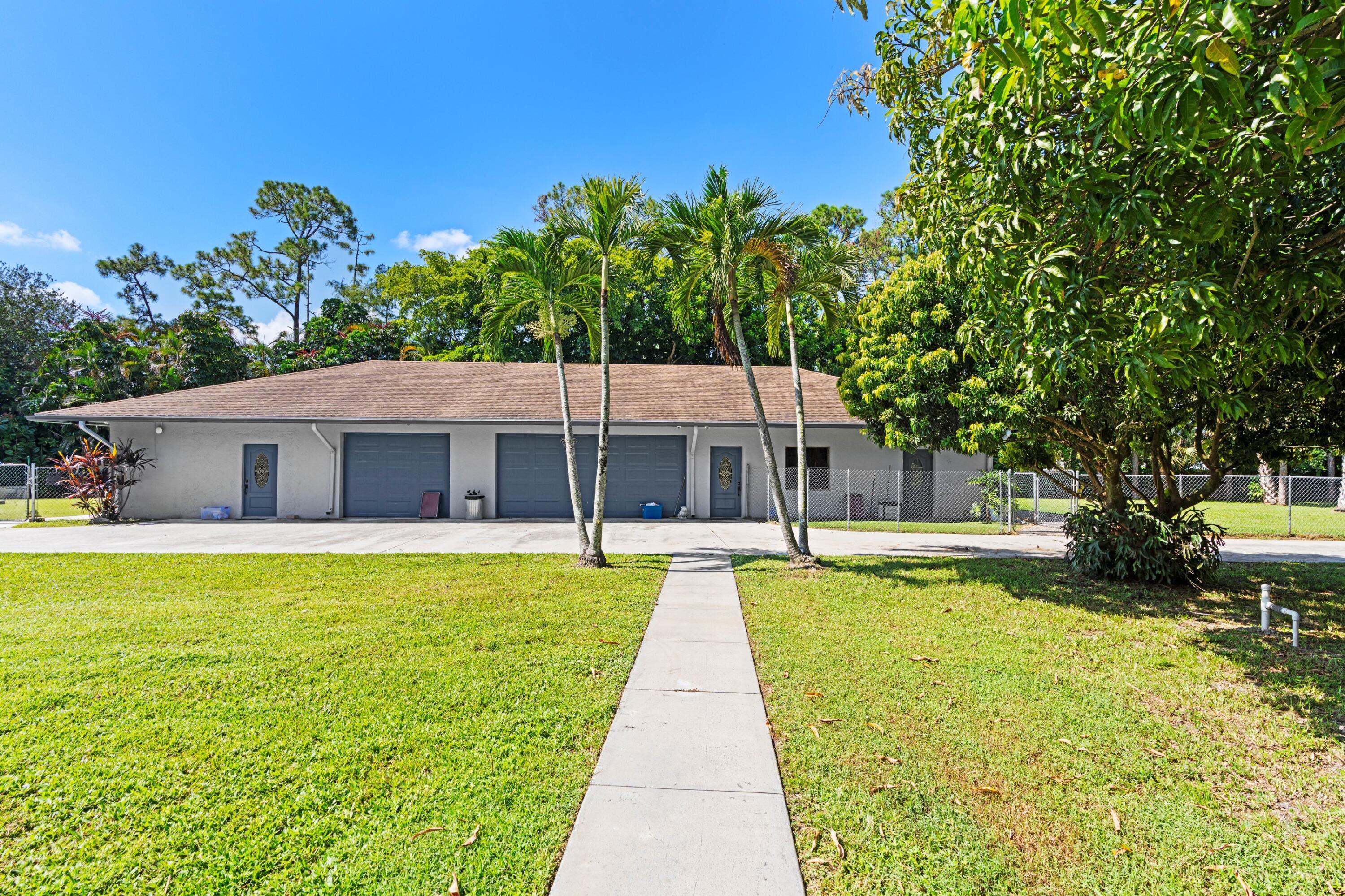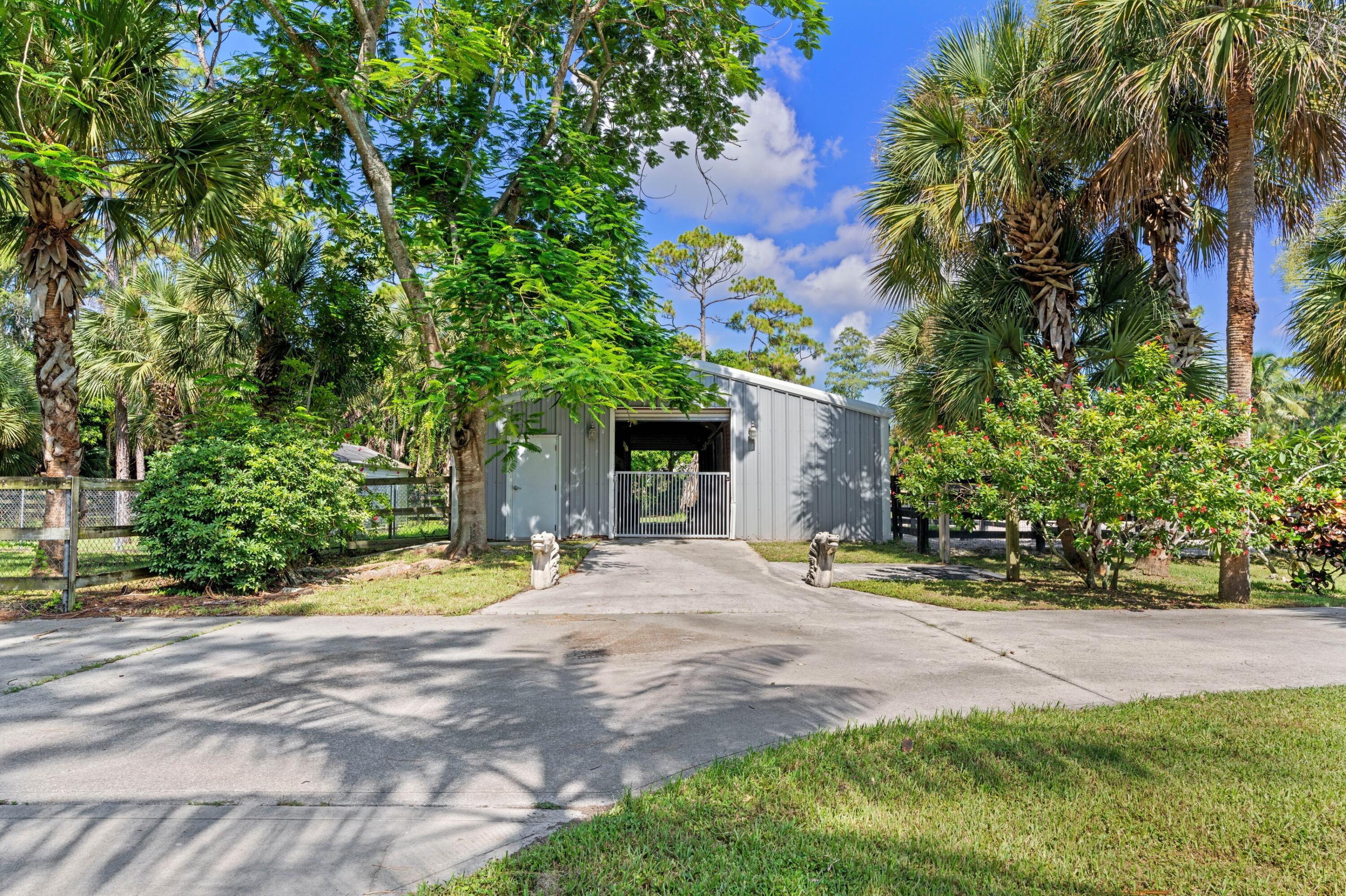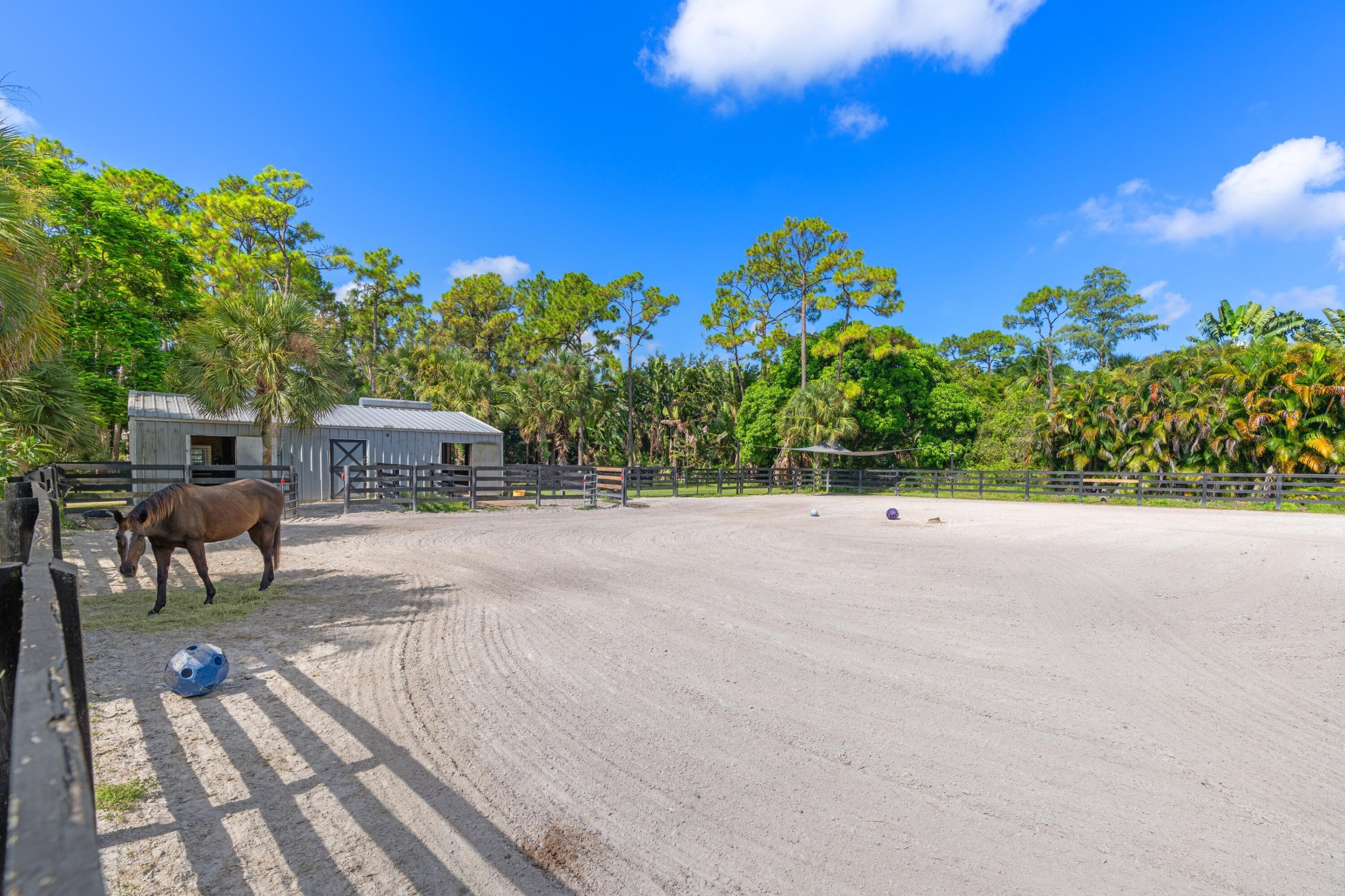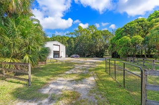 A rare opportunity to own a fully equipped 5-acre property in sought-after Loxahatchee Groves--just minutes from WEF, IPC, and Grand Champions Polo. This one-of-a-kind estate is currently operating as a high-end dog training and boarding facility and offers incredible flexibility for second-home living, Airbnb income, or multigenerational use.The 3-bedroom, 3-bathroom main home features a newer roof, a den, and a chef's kitchen with waterfall granite countertops, Bosch stainless steel appliances, and custom wood cabinetry. A split floor plan with a private entrance allows for a potential in-law suite or private rental. The 600-square-foot enclosed patio with impact glass offers a bright and comfortable space for year-round entertaining.Behind the main home is a 2,500+ square footair-conditioned CBS building with a newer roof, currently operating as a dog boarding facility. It includes two bedrooms, two bathrooms, and plumbing for a kitchen, making it ideal for conversion into a guest house, Airbnb rental, or second residence. The property also includes a 1,200-square-foot four-stall barn with a tack room, paddocks, and wash stations. A separate 1,500-square-foot garage or workshop features 16-foot doors and its own electrical panel, making it perfect for storage, a gym, studio, or man cave. There are four additional air-conditioned tiny houses on-sitethree at 200 square feet each and one at 100 square feetalong with several fully fenced yards for dogs or private use. RV hookups are available for out-of-town guests, rental potential, or storage. The entire property is surrounded by lush landscaping, fruit trees, mature palms, and a 6-foot privacy fence, all conveniently located on a paved road. This is the ultimate blend of country living, income potential, and lifestyle flexibilityschedule your private tour today to experience it all.