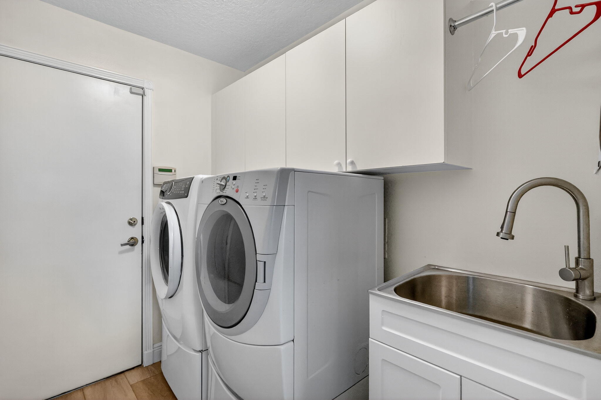 Auto Garage Open, Cooktop, Dishwasher, Disposal, Dryer, Ice Maker, Microwave, Range - Electric, Refrigerator, Smoke Detector, Storm Shutters, Wall Oven, Washer, Water Heater - Elec