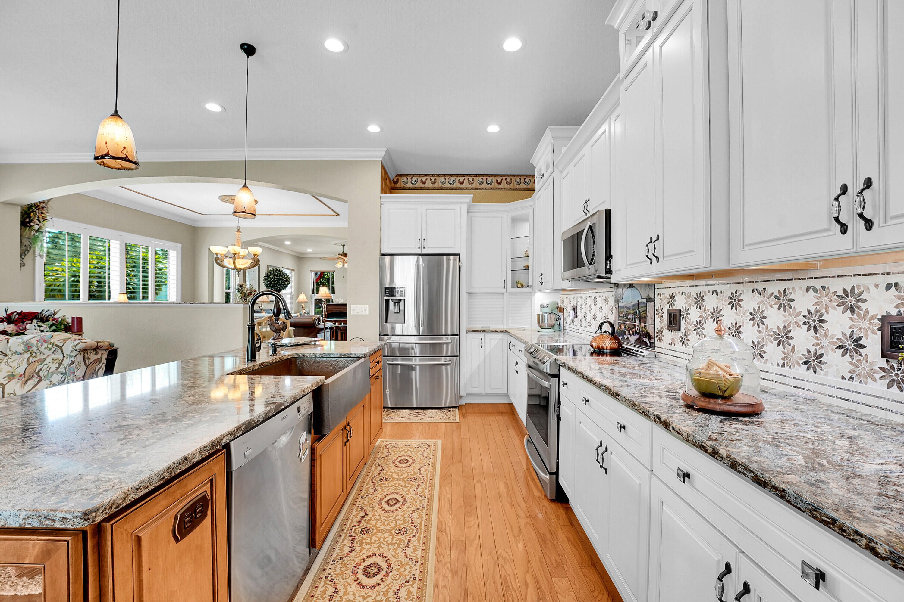 Set on the 1st fairway of Hammock Creek's Jack Nicklaus course, 2640 SW Bear Paw Trail offers 4BR, 2.5BA, and offers 2862 SqFt of refined Palm City living. The split layout flows from formal living/dining into a renovated kitchen with hammered copper sink, quartz counters, and island, opening to a cozy family room. An enclosed sunroom with windows that can withstand 140mph winds frames sweeping golf views. IMPACT windows, a 2016 roof, and an extended paver patio provide peace of mind with potential for a pool. Minutes to top rated schools, boat ramps, Hammock Preserve, historic Stuart, waterfront dining, boutique shopping, and Stuart beaches, this home blends comfort, convenience, and an active Florida lifestyle. Easy access to I95 and turnpike.
