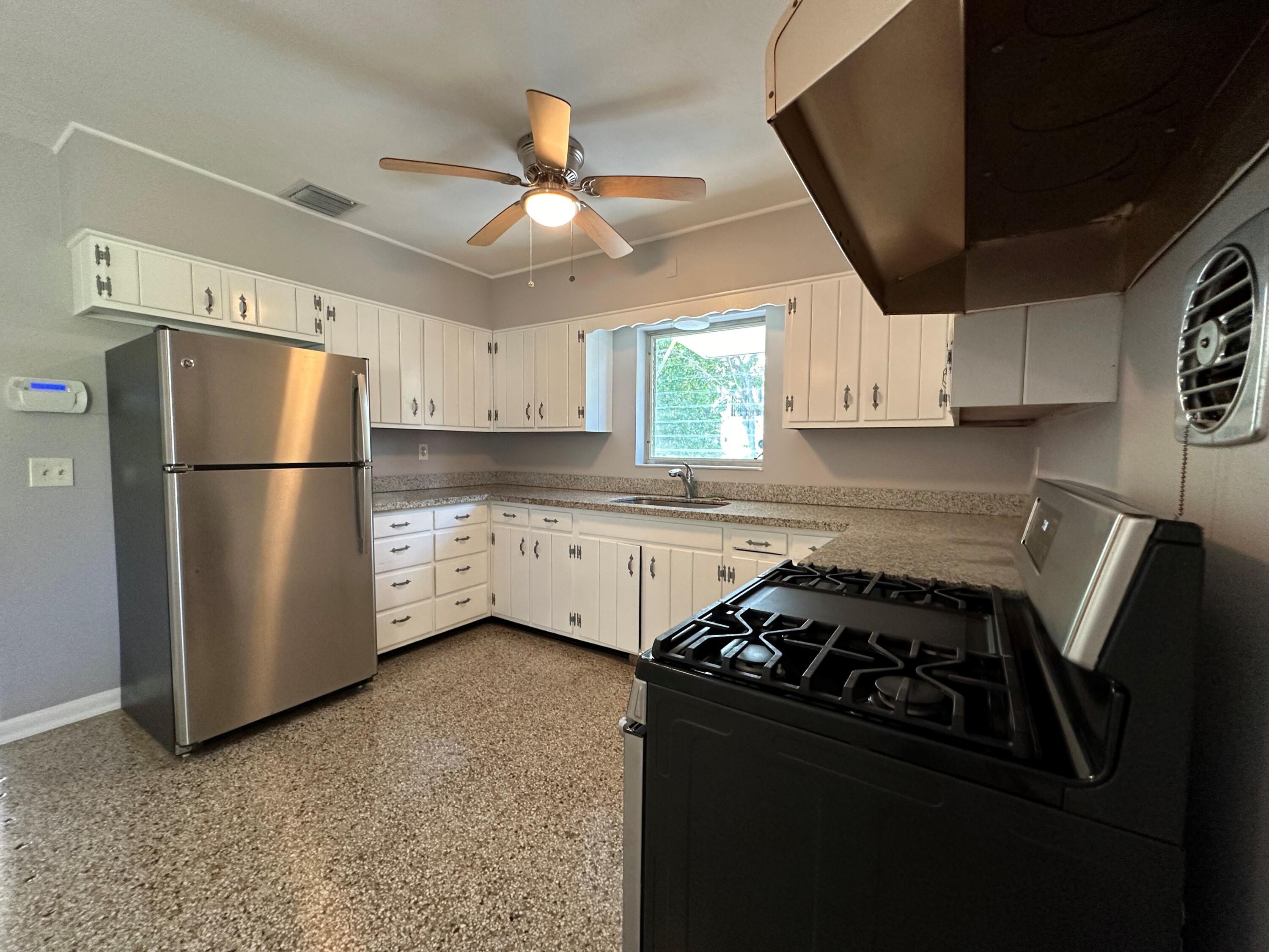 Beautiful 2 bedroom 1 bath home located off North Flagler Drive in Northwood Harbor. This 1950s mid-century style home offers terrazzo floors throughout, open concept and kitchen with granite countertops and gas range. Freshly painted inside and out. The outdoor space has fenced in back yard with ample gated parking. Located near Downtown West Palm Beach and minutes to the Sailing Club, dog park and the Intracoastal Waterway. Pets welcome!