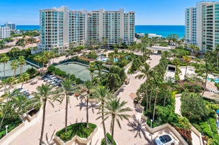 OCEAN, INTRACOASTAL, CITY & THE GRAND PIAZZA BELOW WITH AMAZING VIEWS IN EVERY DIRECTION! 5 ACRES OF LUSHLY MANICURED LANDSCAPING, SPARLING FOUNTAINS, 3 HEATED POOLS, SPA HOT TUBS, TENNIS COURTS, BRICK PAVED WALKWAYS & BLOSSOMED TRELLISES THAT ILLUMINATE AT NIGHT WITH RESORT STYLE LIGHTING! THIS SUN FILLED APARTMENT FEATURES 9 FT CEILINGS, A SPLIT BEDROOM PLAN, FLOOR TO CEILING IMPACT SLIDERS, TWO PRIVATE BALCONIES, AN EN SUITE GUEST BEDROOM, MARBLE FLOORS, WALK IN CLOSETS, CUSTOM DRAPES, SOFFITED LIGHTING & IMMACULATE MOVE IN CONDITION! TOSCANA OFFERS A PRIVATE BEACH CLUB ON THE SAND, BBQ AREA, VALET SERVICES, 24 HOUR MANNED GATE & CONCIERGE, CARD ROOMS, FITNESS, BILLARDS, SOCIAL ACTIVITIES & PARTIES! LOCATED IN PRESTIGIOUS HIGHLAND BEACH BETWEEN THE OCEAN THE INTRACOASTAL WATERWAYS!