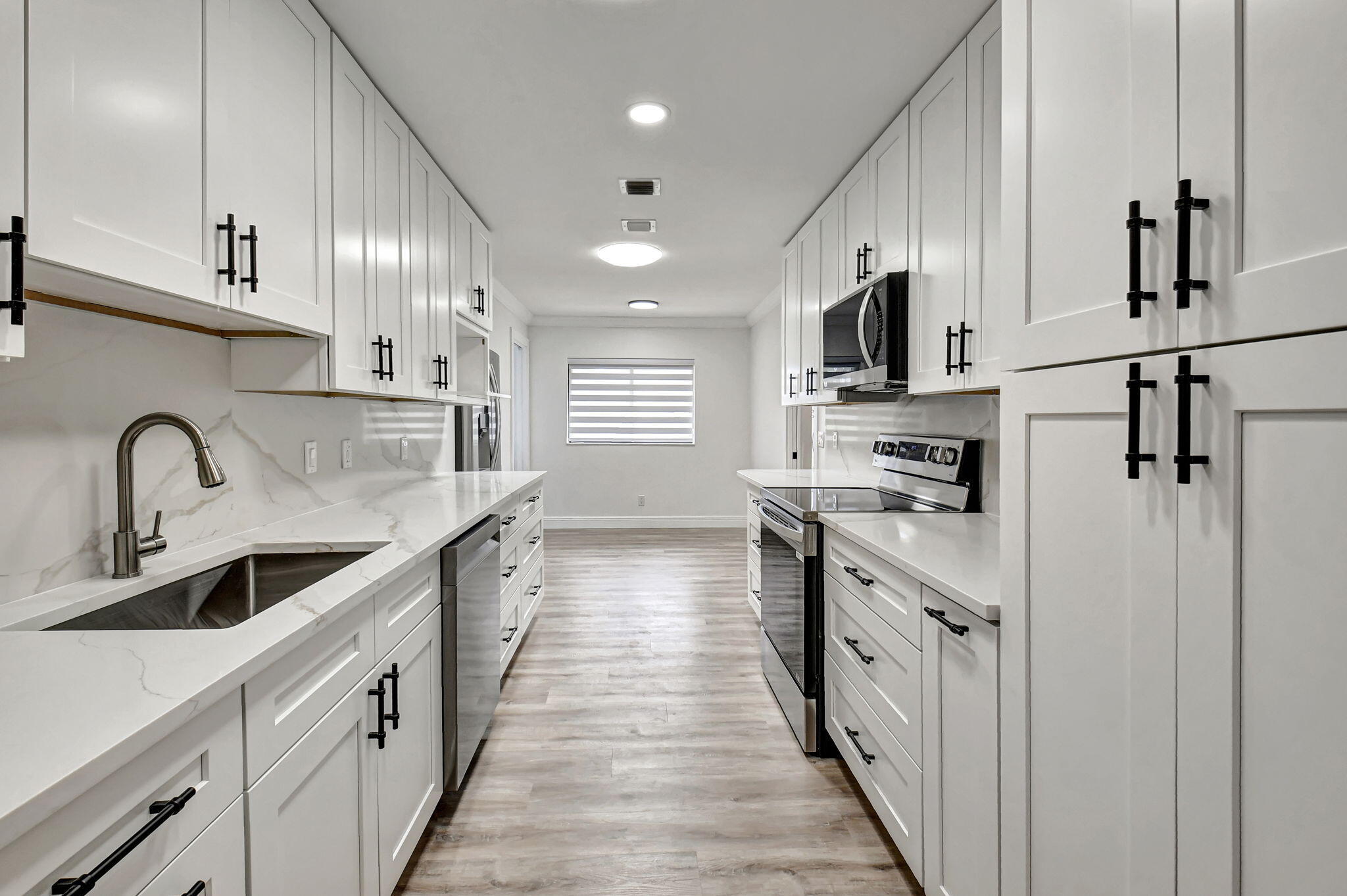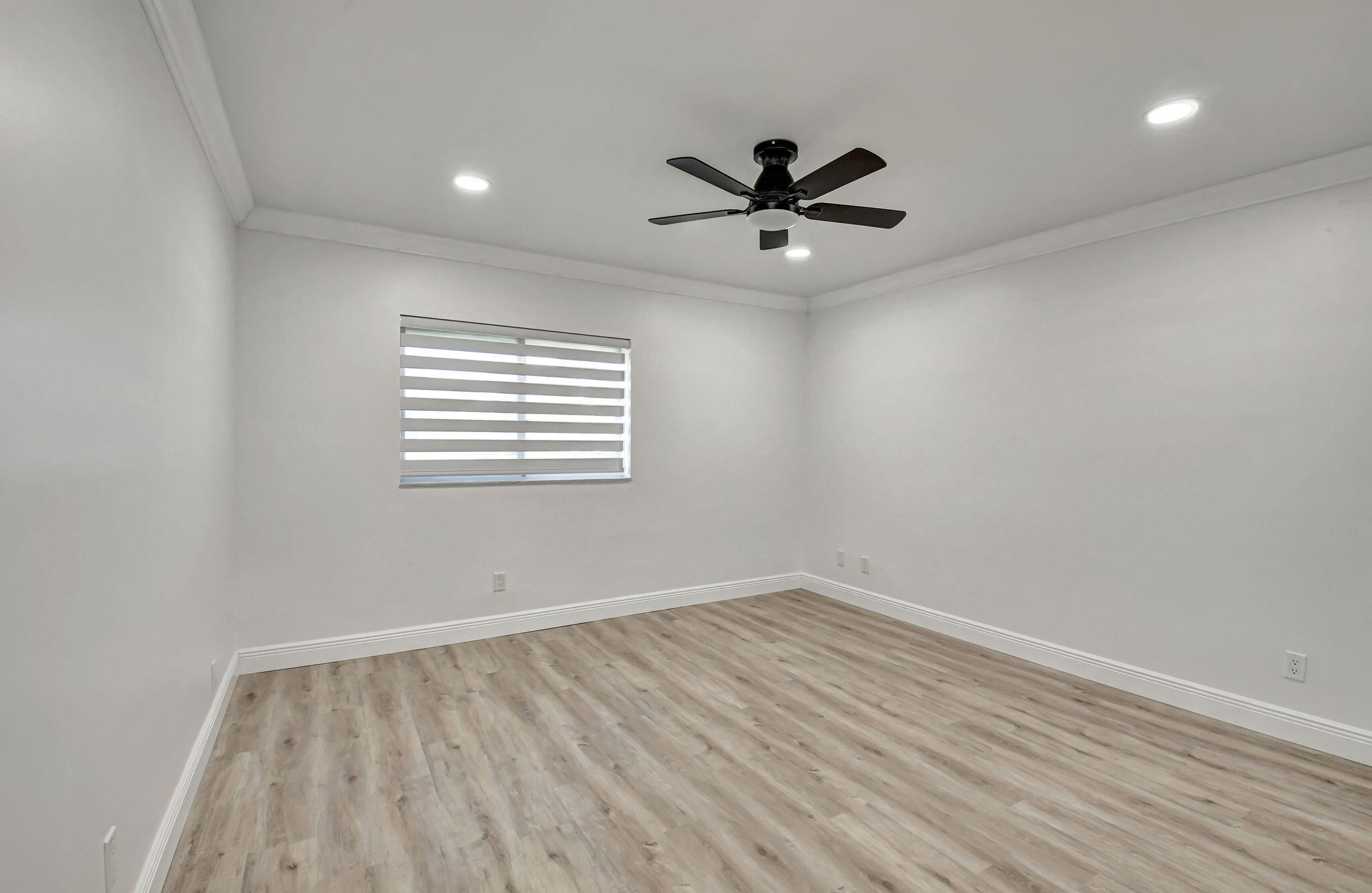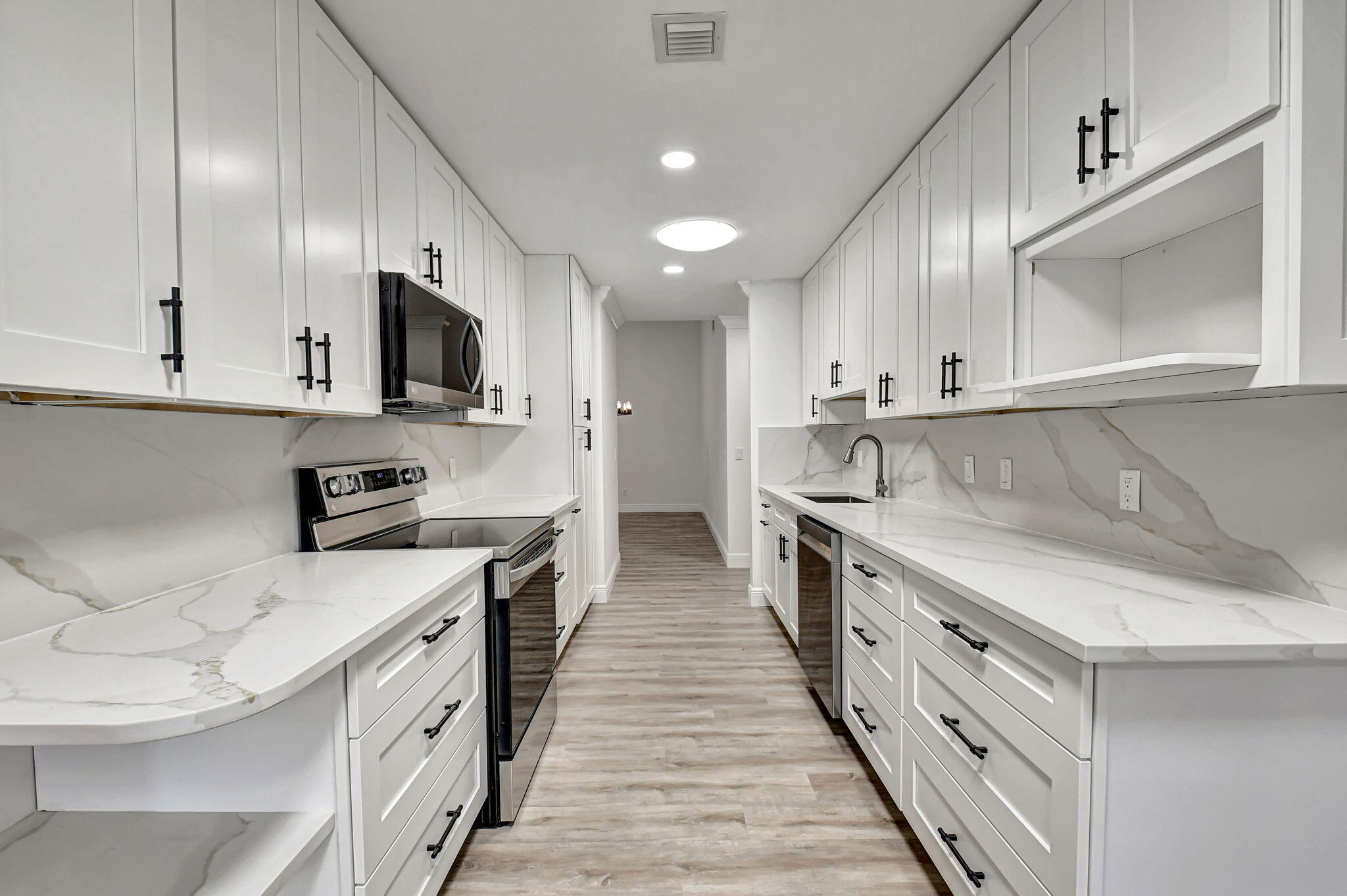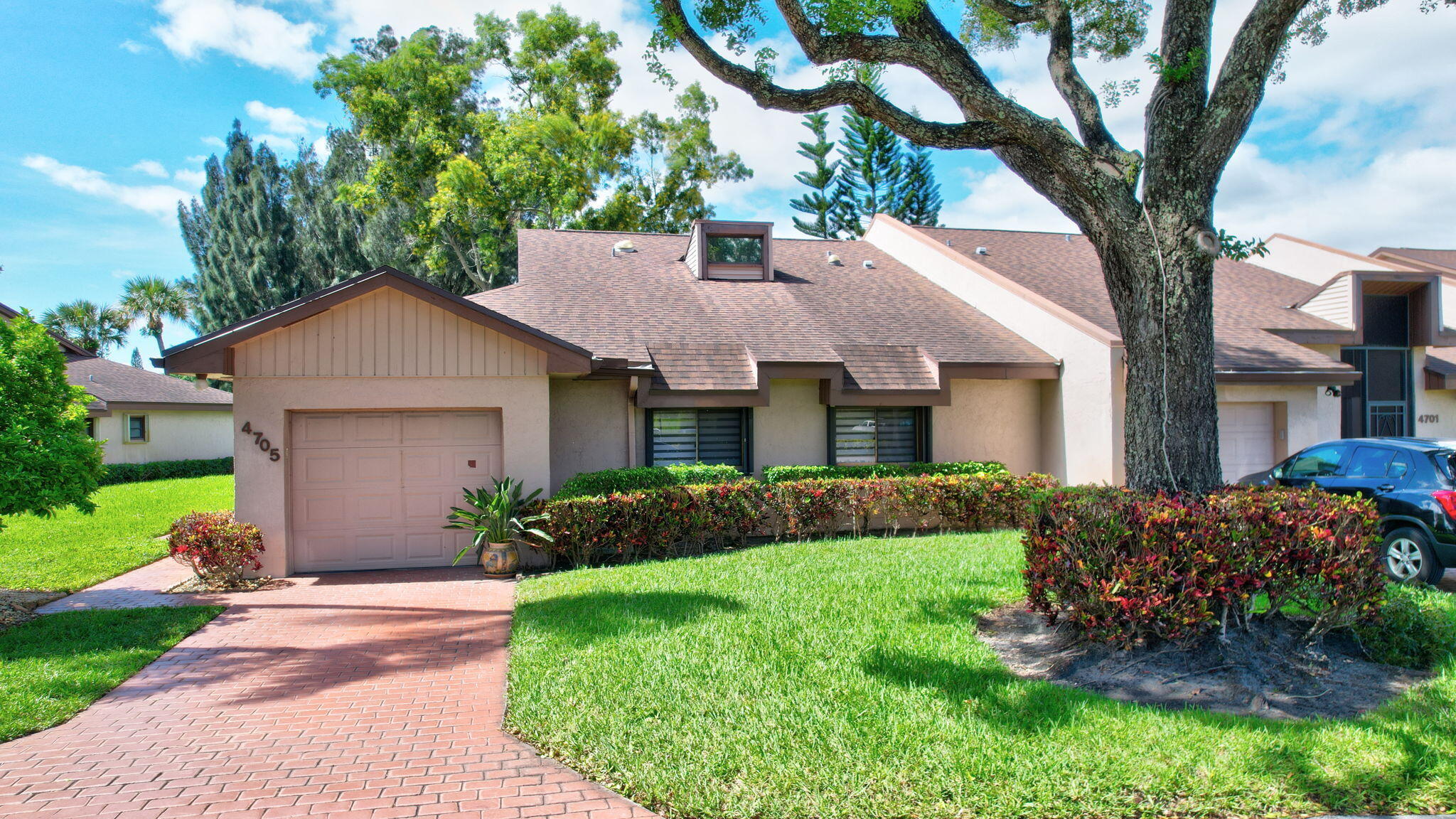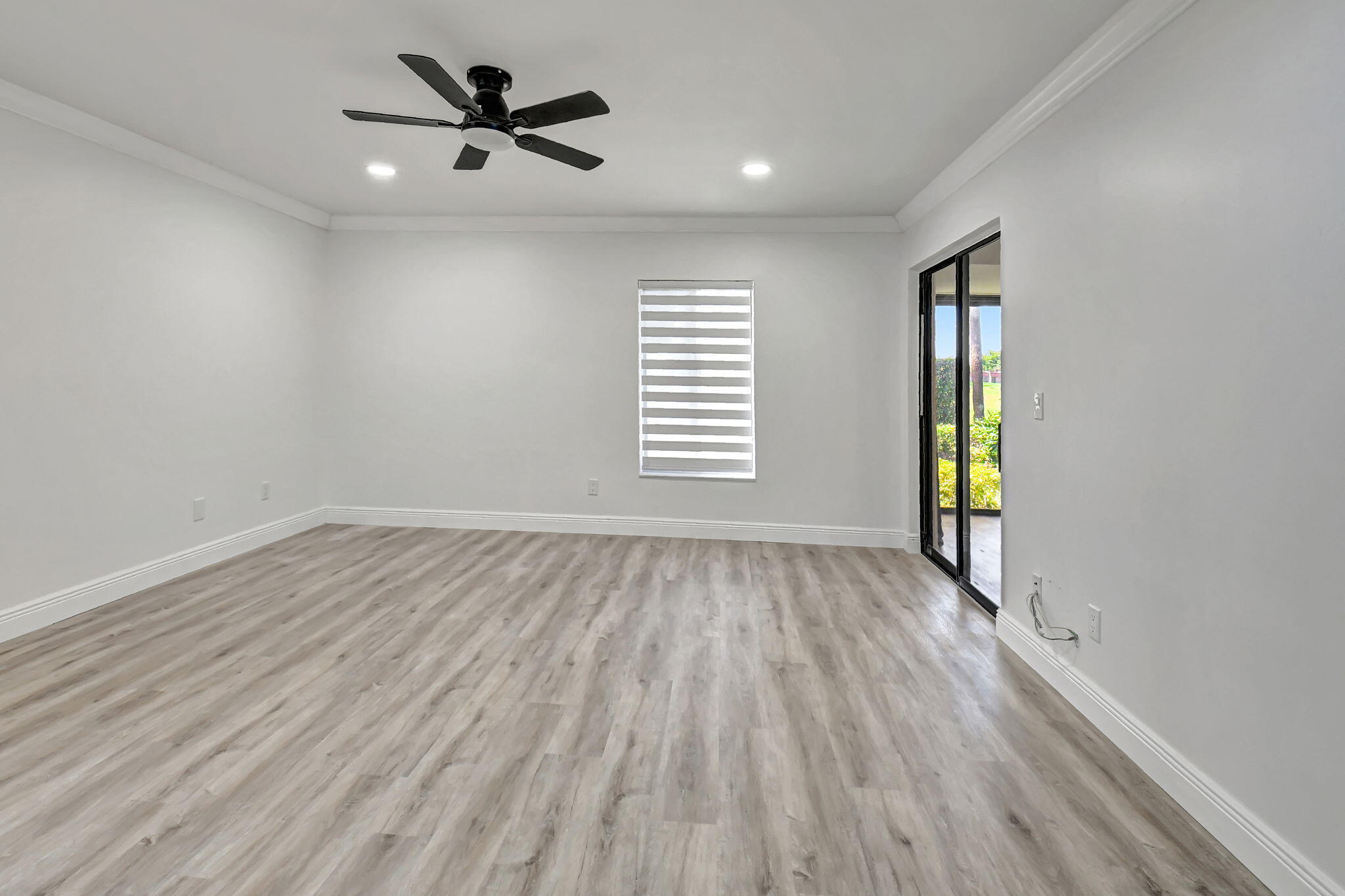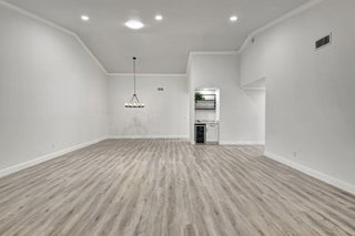 Tastefully remodeled 3BR/2.5BA villa in The Fountains of Palm Beach, Versailles Court section. Bright, spacious layout with vaulted ceilings, skylights, and modern finishes. Updated kitchen with white wood cabinets, quartz counters, and new stainless steel appliances. Primary bath features freestanding tub filler and frameless glass shower. Laminate flooring throughout. Backyard overlooks golf course. Community offers 3 pools. All ages welcome. Move-in requires first month, last month, and security deposit. Easy to show--schedule via ShowingTime.