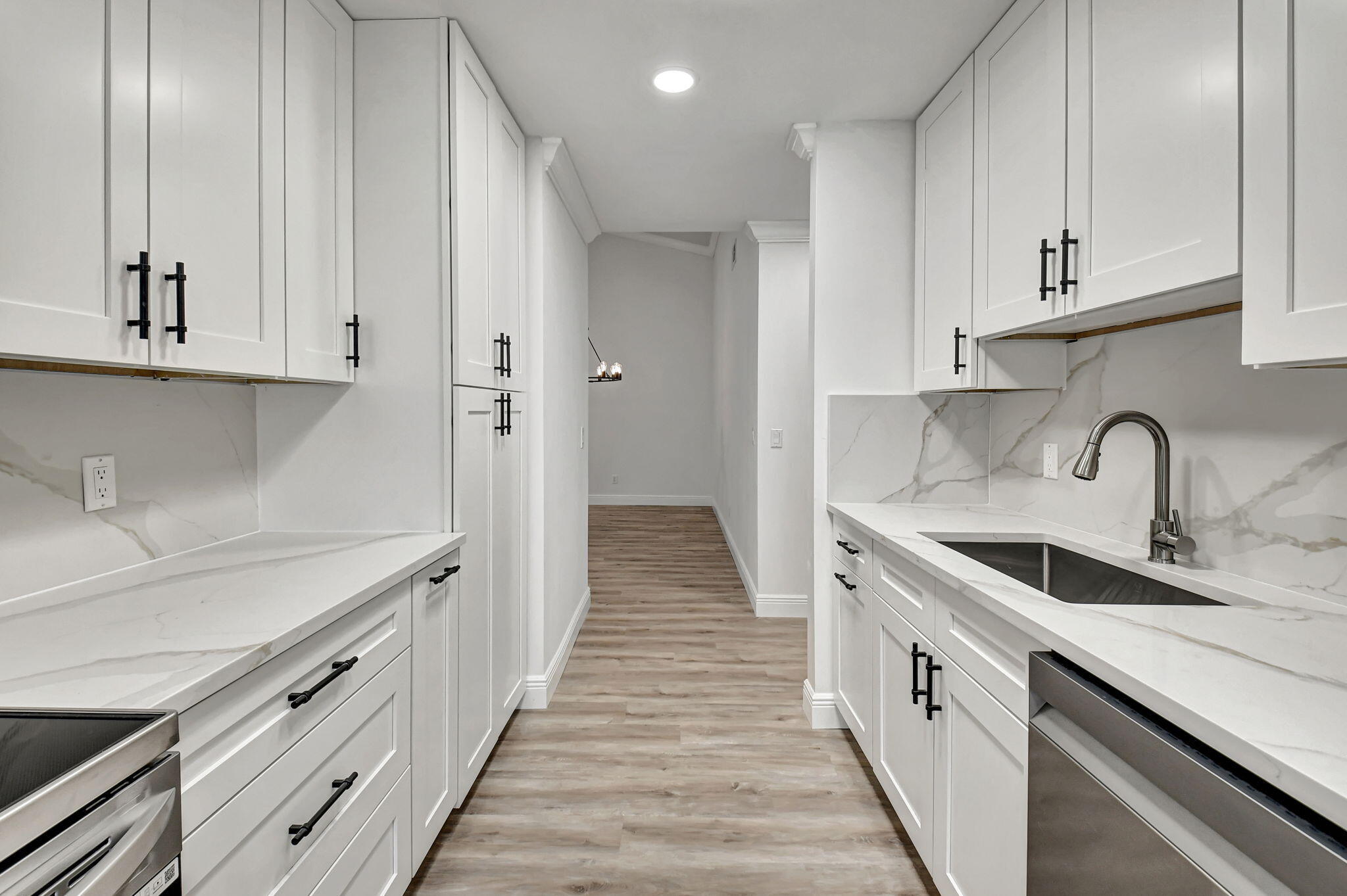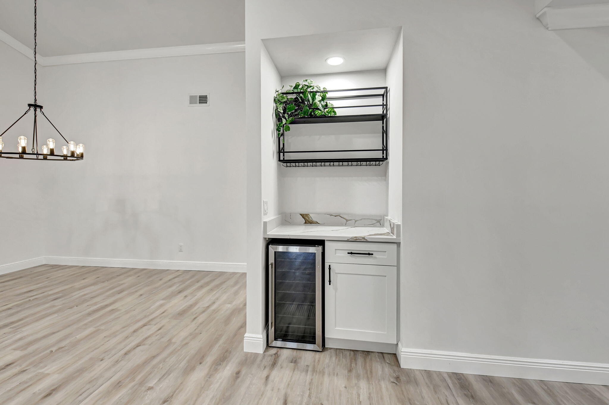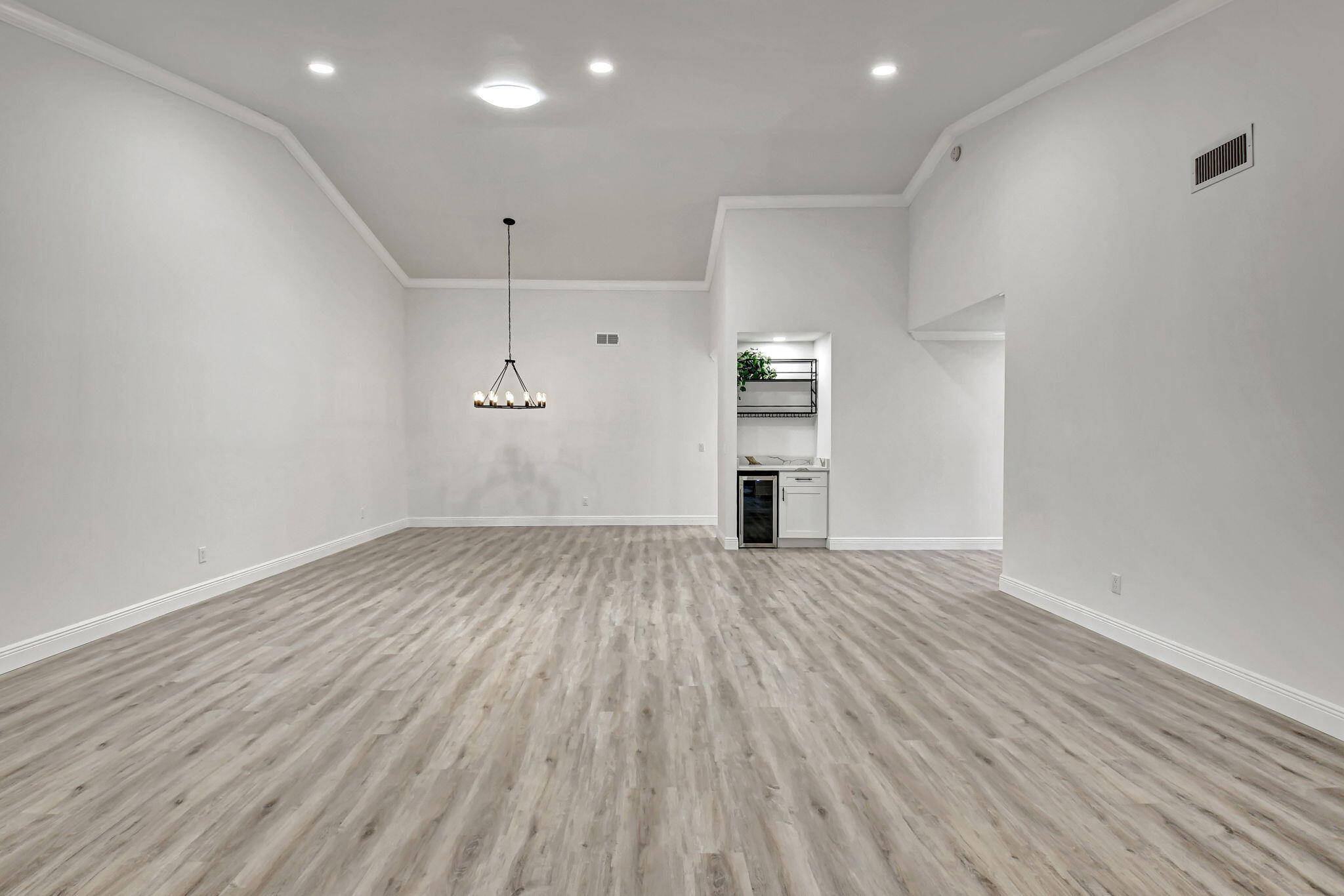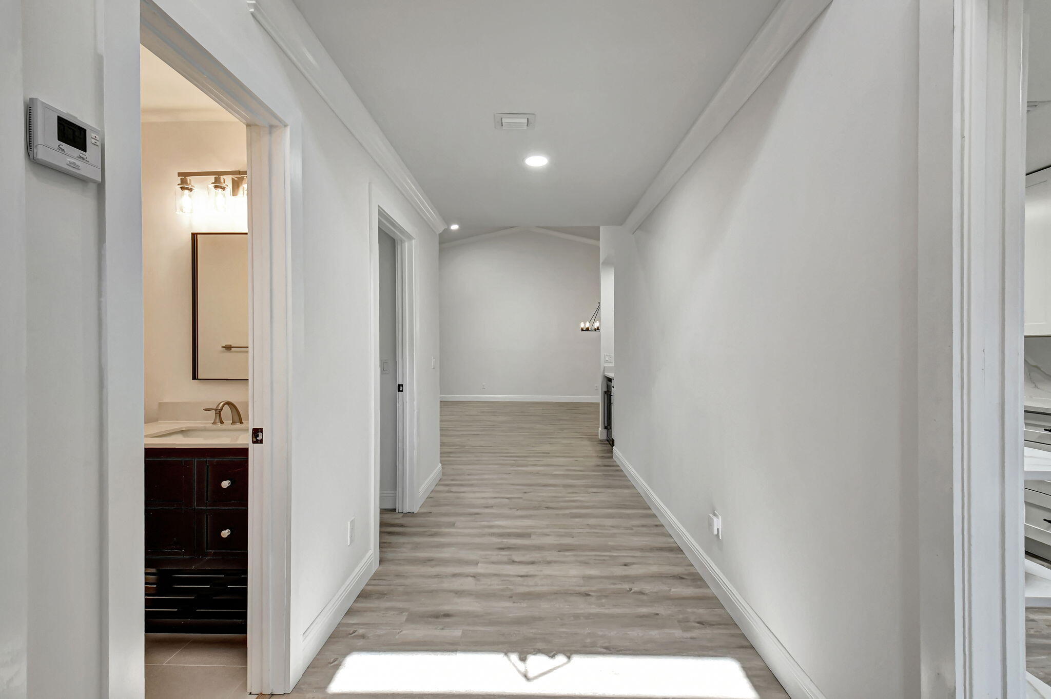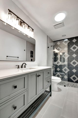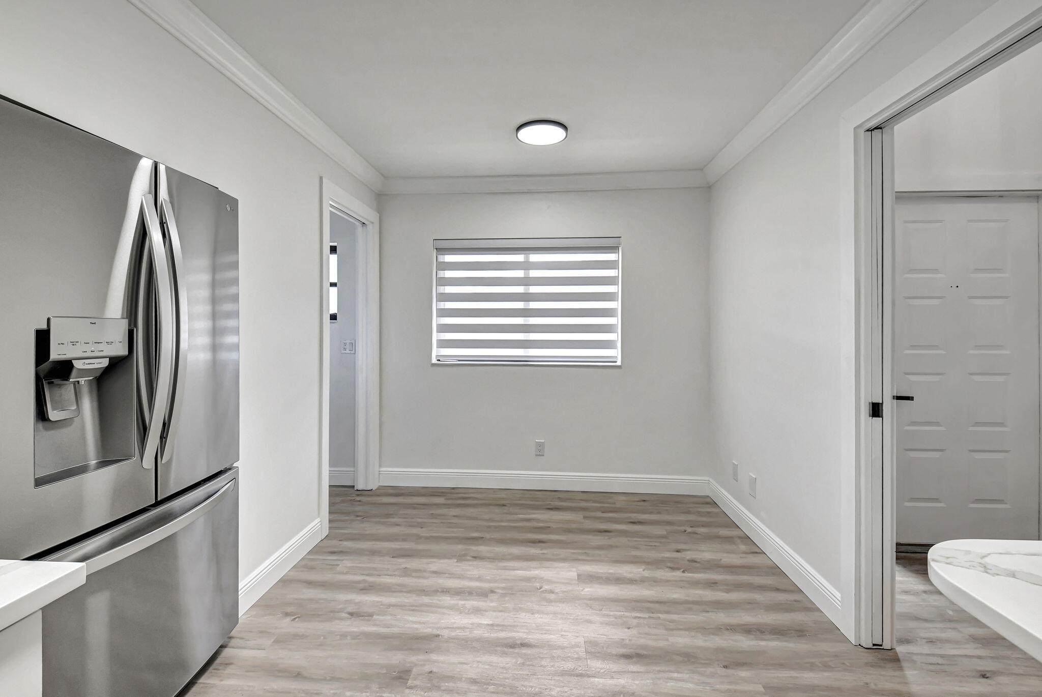Tastefully remodeled 3BR/2.5BA villa in The Fountains of Palm Beach, Versailles Court section. Bright, spacious layout with vaulted ceilings, skylights, and modern finishes. Updated kitchen with white wood cabinets, quartz counters, and new stainless steel appliances. Primary bath features freestanding tub filler and frameless glass shower. Laminate flooring throughout. Backyard overlooks golf course. Community offers 3 pools. All ages welcome. Move-in requires first month, last month, and security deposit. Easy to show--schedule via ShowingTime.