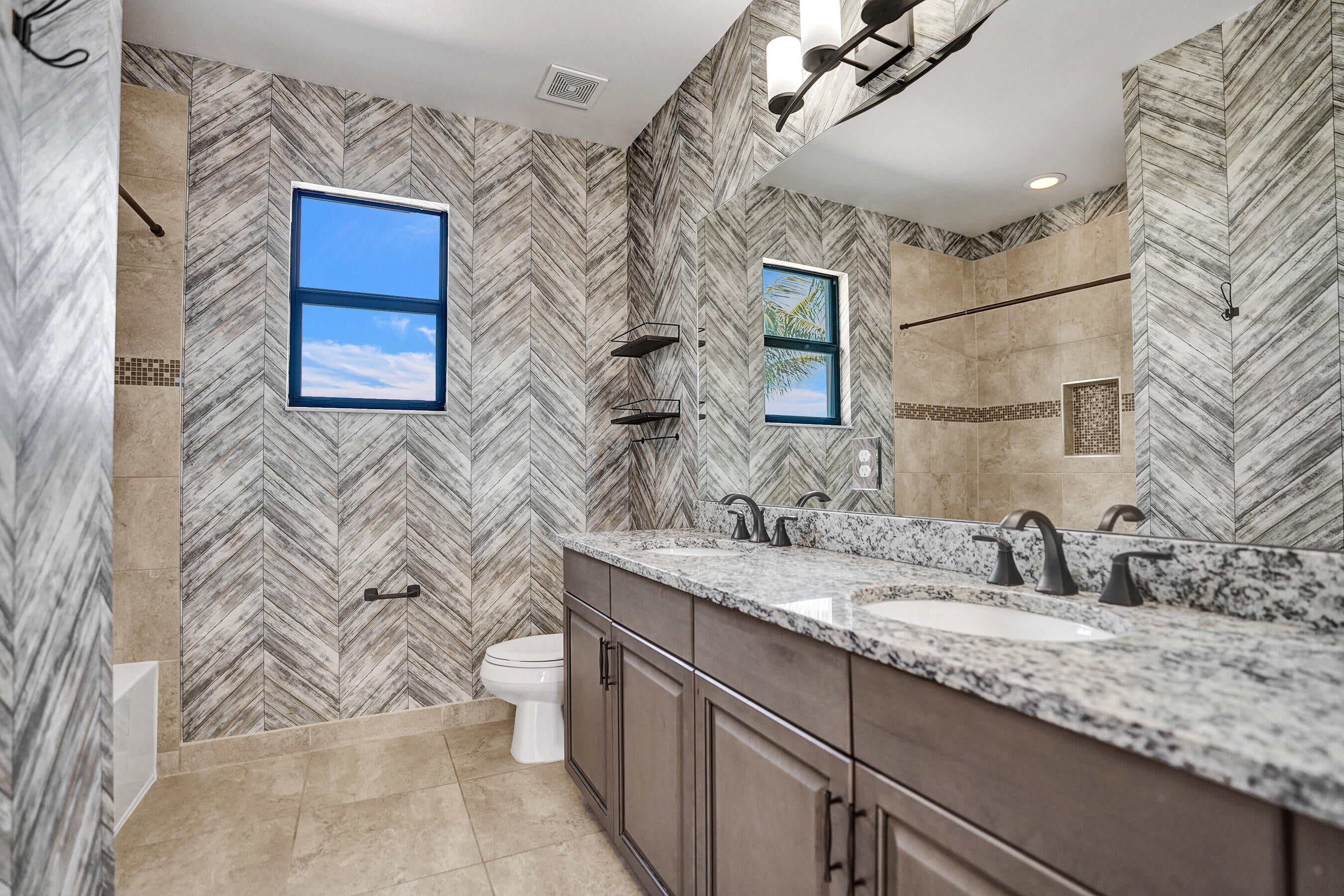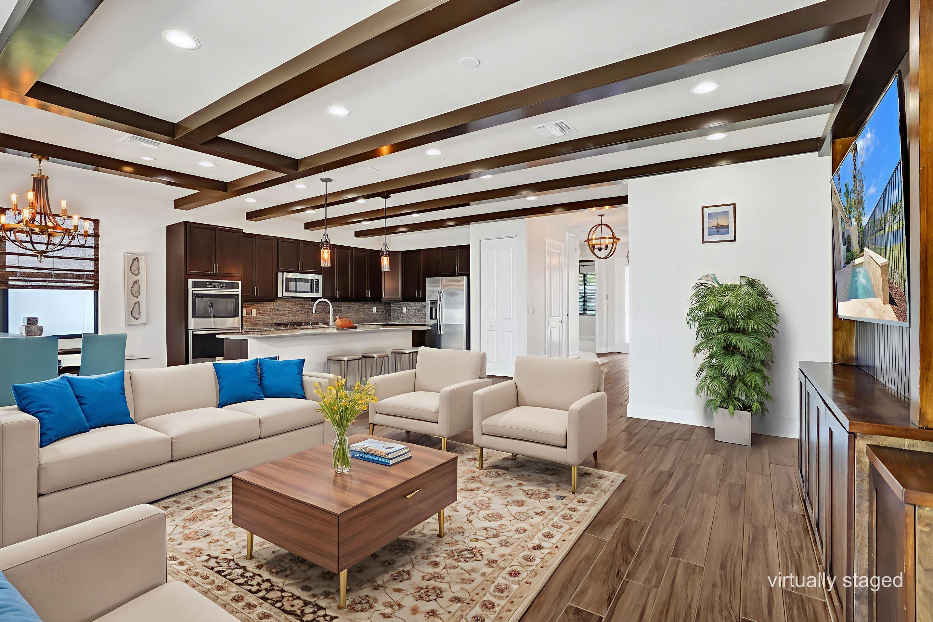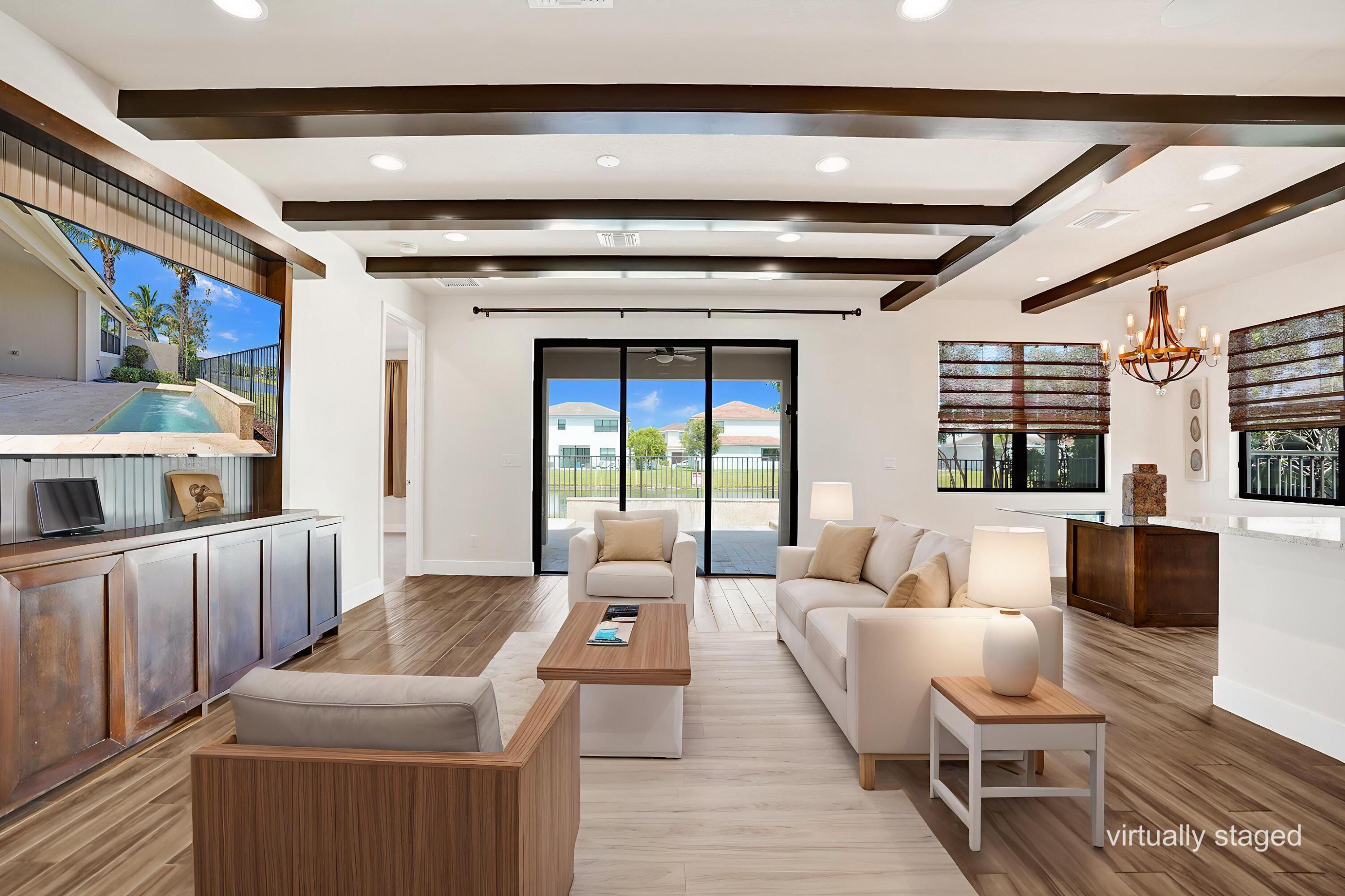 This MUST SEE 6 bed, 4 bath former BUILDER MODEL HOME is loaded with premium upgrades and features a 2-car garage, private pool, all situated on an impressive waterfront lot. Located in Villamar at Toscana Isles, a newer gated community within an all A-RATED school district, this Sierra model offers the perfect blend of luxury, style and functionality. From the moment you step inside, you're welcomed by elegant architectural details including wall box molding, textured walls, custom moldings and gorgeous wood beam ceilings throughout. The home boasts recessed lighting, designer bathrooms and spacious, well-appointed bedrooms with ample closet space. The open-concept layout showcases a bright great room and a chef-inspired kitchen with a large island and high-end finishesideal for both entertaining and everyday living. The first floor includes a private primary suite for ultimate comfort and convenience, as well as a guest bedroom and full bathroom, perfect for visitors or multigenerational living. Upstairs, you'll find four additional bedrooms and two full bathrooms thoughtfully arranged around a versatile loft, perfect for a playroom, media room, home office or secondary living area. The outdoor space is just as exceptional, offering both covered and open patios, a sundeck, pergola and a luxurious jacuzzi-style pool overlooking lush landscaping and panoramic water views creating your own private oasis. This home is a true standout, combining modern design, top tier features and an unbeatable location! Residents of this community enjoy exclusive access to resort-style recreational amenities including a full clubhouse with kitchen and party/living area, pool and cabana, tennis & basketball courts, fitness center and a children's playground. Villamar at Toscana Isles is conveniently located near major area commerce including a BRAND NEW Whole Foods, Sprouts Market, Trader Joe's, Starbucks, Target, TJ Maxx, Home Goods as well as popular fitness hotspots Crunch Fitness. LA Fitness, Orangetheory Fitness, F45 Training, Club Pilates and countless public & private golf courses including the popular Boynton Links Golf Club, community parks, walking trails & nature centers Wakodahatchee Wetlands, Green Cay Nature Center & Wetlands, Caloosa Park with the area's BEST Pickleball scene and a short drive to Downtown West Palm Beach, CityPlace, Kravis Center, Norton Museum of Art, West Palm Art & Design District and not too far from the beach! Easy access to I-95 & FL Turnpike and only 20 minutes from Palm Beach International Airport, 45 minutes to Fort Lauderdale-Hollywood International Airport and 60 minutes to Miami International Airport while being close to the new Brightline train with service between Miami and Orlando making your travel plans a breeze. Schedule a showing today to make this ideal home yours! Select photos of home have been virtually staged to better showcase the true potential of the room spaces. These photos are labeled 'Virtually Staged' at bottom of photo.