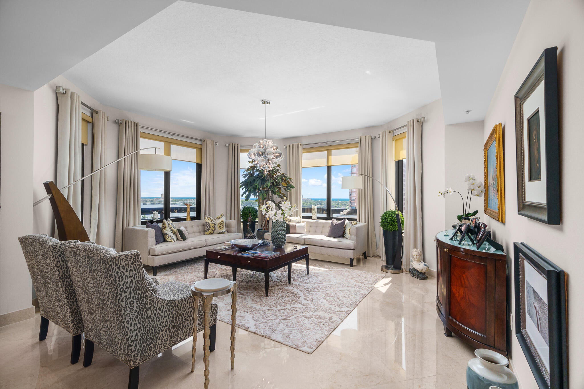 ***Rare Opportunity*** FLAWLESS. Completely unique unit with modified open floorplan with the finest finishes money can buy.. No expense spared!! Stunning Ocean + Intracoastal views from almost every room. Step into a world of elegance & convenience, where every detail has been meticulously crafted. Full-service building with roof top pool, sauna, steam room, BBQ's, fitness center, clubroom, valet, and 24/7 concierge. Pet friendly, walk to City Place, Clematis and the Waterfront. 10 Minutes to PBI airport. This is downtown luxury at its finest. 2 garage parking spaces equipped with electric for car charging stations.