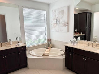 Special Low Mortgage rate available on this meticulously loved home. The high ceilings in the den, dining room, kitchen, & great room create an open & airy atmosphere. The dining room features a tray ceiling, modern decorative fixtures, & a full wet bar, perfect for entertaining. The kitchen features wood cabinets complemented by stone countertops & new appliances. The island bar is ideal for casual dining. The main suite boasts a transom window, a tray ceiling, & double closets. The main bath includes double vanities, a spacious zero-edge glass shower, & a separate garden tub. The rear porch features retractable power screens. The heated splash pool is ideal for relaxing & sunbathing. The home has been inspected, and all noted items have been repaired. Custom window treatments.