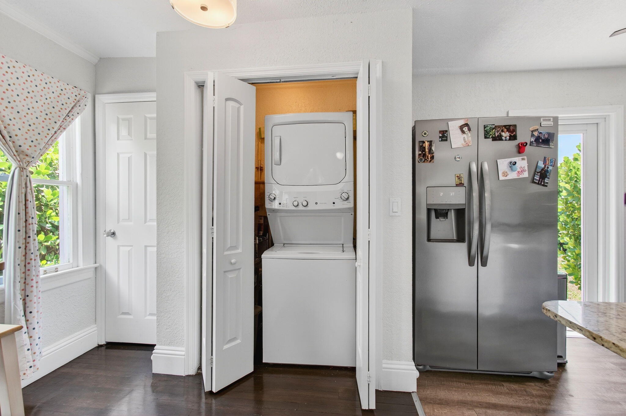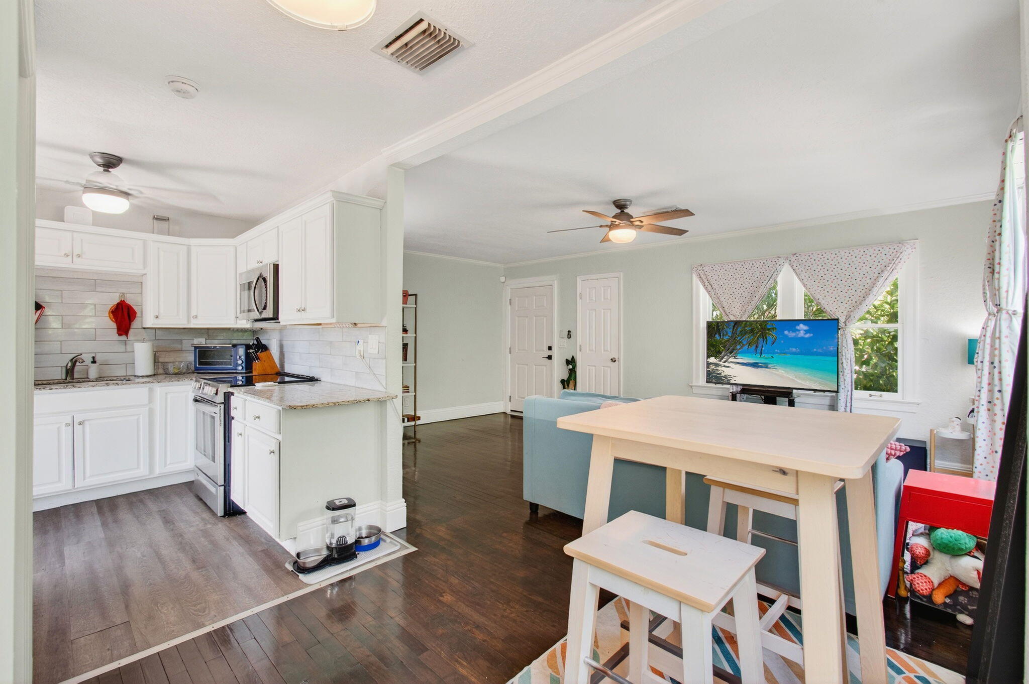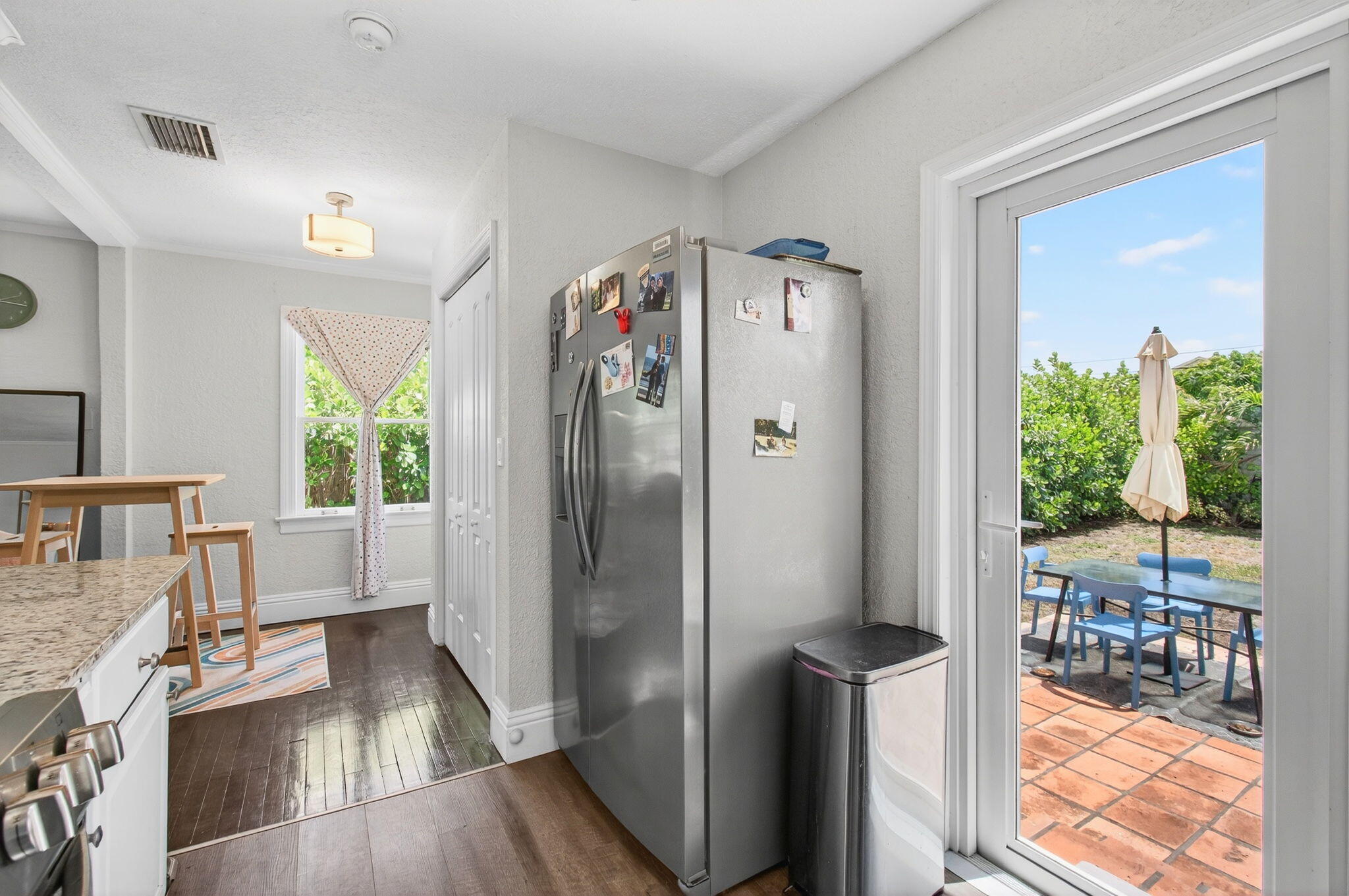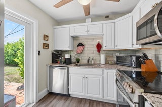 NO HOA!! Step into timeless character blended with modern upgrades in this beautifully maintained 2-bed, 1-bath home. Original refinished hardwood floors set the tone for a warm & inviting atmosphere. The fully renovated bathroom adds a fresh, contemporary touch. The kitchen features granite countertops, under-cabinet lighting, a modern tile backsplash, and top-of-the-line stainless steel appliances. Outside, enjoy Florida living at its finest on the tiled back patio, overlooking a botanical, fully fenced yard. There's ample space for entertaining, gardening, or room for a pool. The large shed offers extra storage. Off-street parking adds convenience, and with no HOA, you'll enjoy freedom and flexibility.All this just minutes from downtown Lake Worth, the beach, and I-95. A rare find, schedule your showing today!
