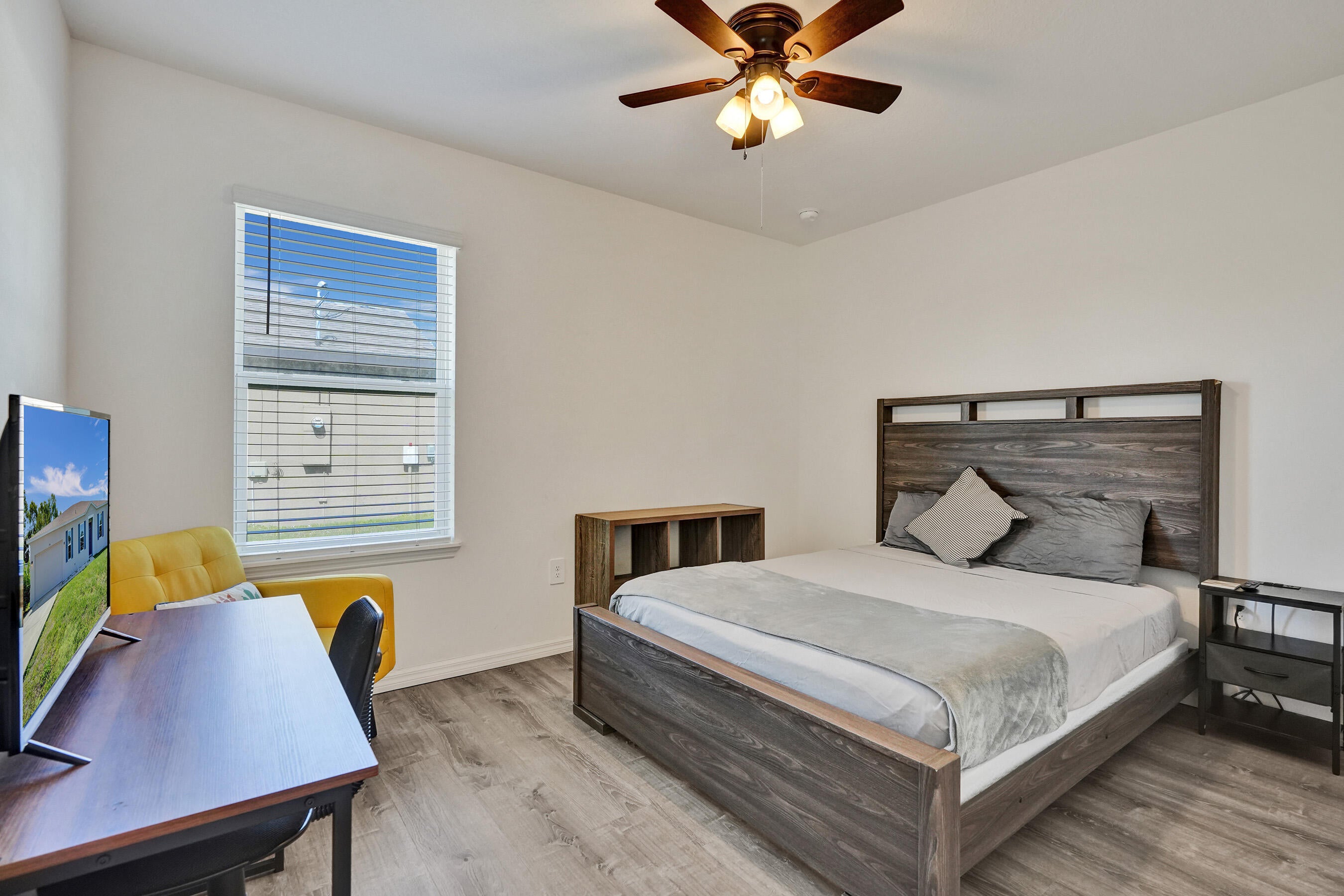 Available Furnished or Unfurnished! This beautifully crafted, newly built 4-bedroom, 2-bath home offers 2,059 sq ft of comfortable living space and peaceful canal views. Inside, you'll find an open-concept layout with elegant tile flooring, a sleek modern kitchen with stainless steel appliances, and a warm, inviting living area.The spacious primary suite features two walk-in closets and a spa-inspired bath. A split floor plan provides privacy, while the additional office/den is perfect for remote work or a flex space.Additional highlights include a dual-sink guest bath, dedicated laundry room, air-conditioned garage, fully fenced backyard, storage shed, and tranquil water views.