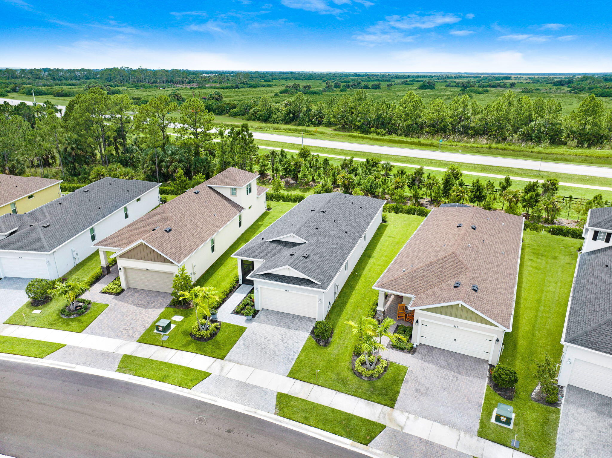 Immaculate 2023 Concrete Block Home | Cul-de-Sac | Sunset Views | Luxury Resort Style Amenities | Move in ready before the end of November | 2 Bedrooms | 2.5 Baths | Versatile Den. The flexible den is ideal for a home office, creative space, or guest retreat. Inside, an open-concept layout is bathed in natural light and enhanced by upscale finishes throughout: Impact-resistant windows | Upgraded tile flooring throughout | Crown molding and ceiling fans in every room | Kitchen has beautiful quartz countertops and sleek cabinetry | Seamless flow into spacious living and dining areas--perfect for entertaining | Laundry room with built-in cabinetry (washer and dryer included) | Quartz countertops in all bathrooms. Step outside to a screened-in lanai and savor golden-hour views that makeevery evening feel like a getaway. A paver driveway, manicured landscaping, and charming screened front porch complete the picture of polished curb appeal. Resort Amenities Await Enjoy a vibrant lifestyle with access to a luxurious clubhouse, sparkling pool, tennis and pickleball courts, dog park, and more-all designed to foster connection, wellness, and recreation. This rare opportunity combines privacy, low-maintenance luxury, and top-tier amenities-all with a newly adjusted listing price that reflects exceptional value. Located close to St. Johns Heritage Parkway for easy access to Melbourne, Melbourne Airport and within 30 minutes to the beach. Located within minutes to a Brand-New Publix.