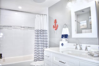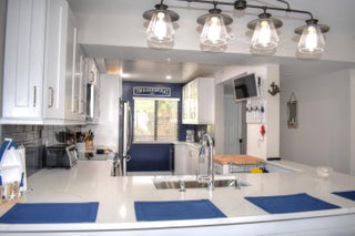 Available Now - May. Completely remodeled ! Waterfront view! Walk to beach! New expanded kitchen, new baths, shaker white cabinets with quartz countertops. All new coastal furnishings. Turn Key, Furnished. They've thought of everything you will need!