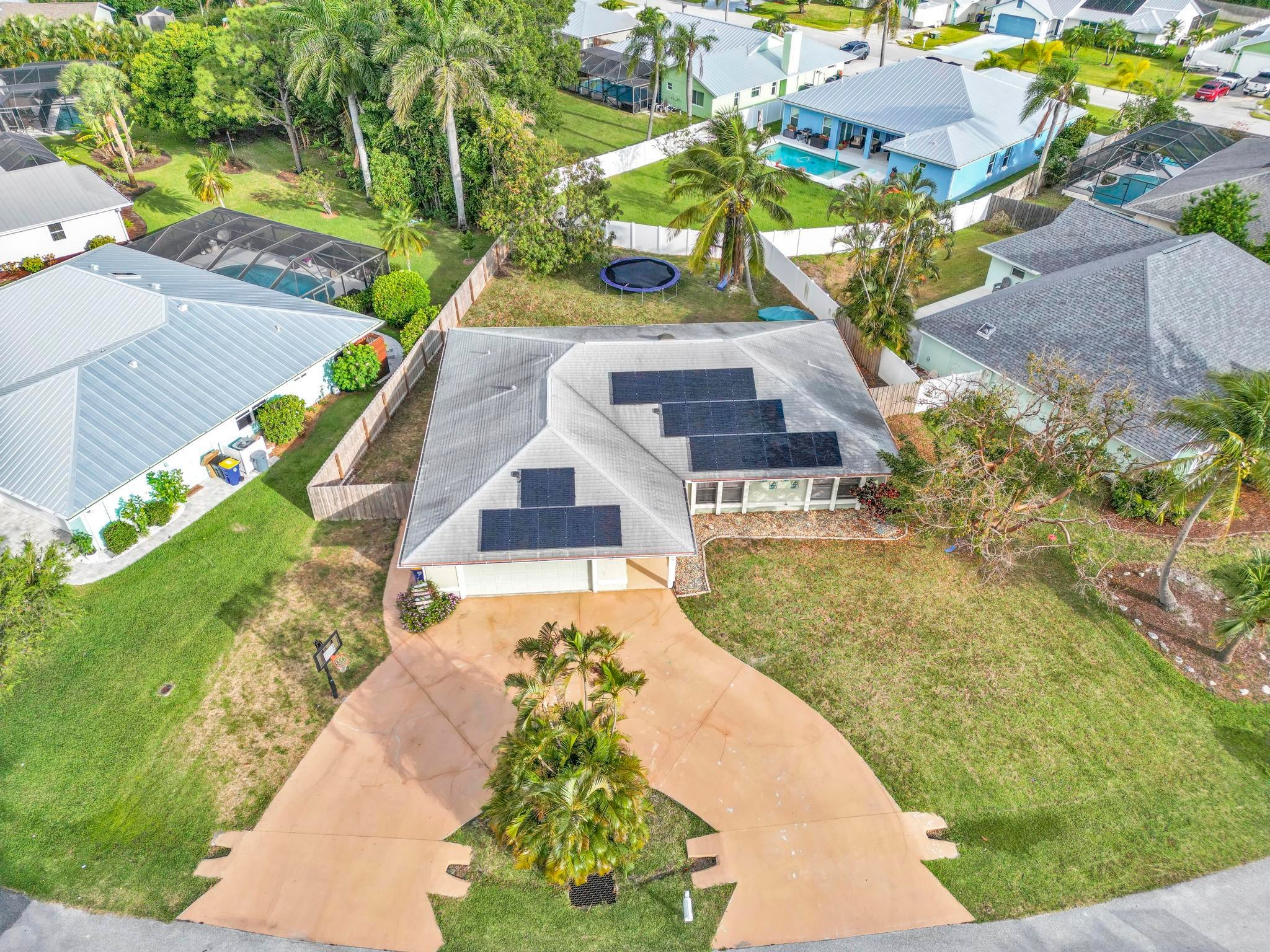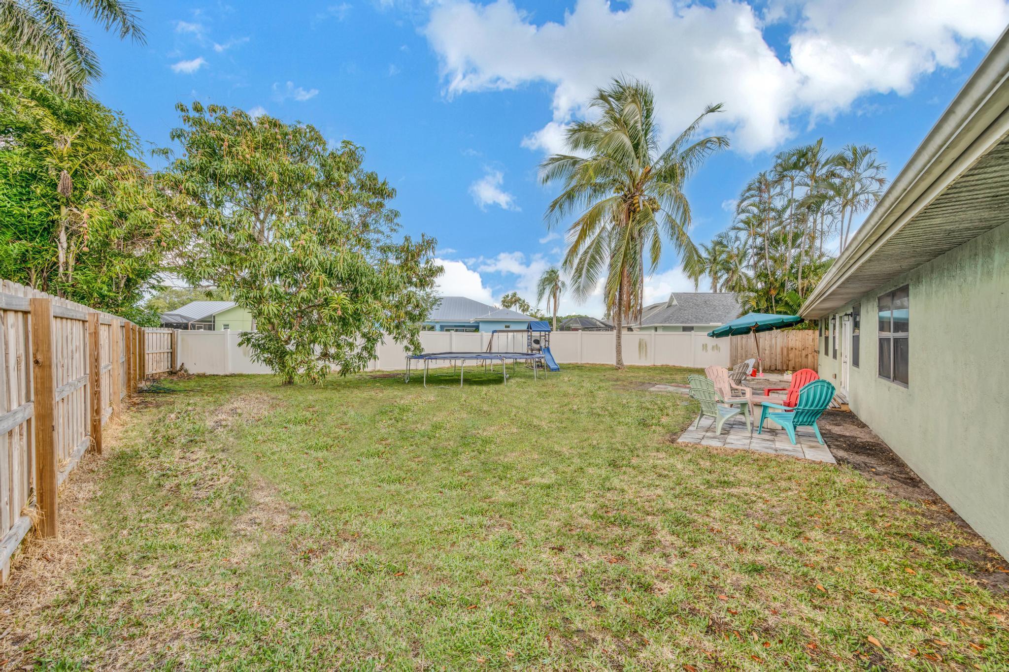 BRAND NEW AC INSTALLED 7/25. Come see this beautiful 5/3/2 home just minutes from Jensen Beach located in the heart of Jensen Park Estates. This property features a split floor plan boasting with 2.700 sq ft of living space. Master bathroom features large stand up shower. Kitchen centrally located with two dining areas, formal living room and family room. The 5th bedroom has ensuite bath and large walk in closet, perfect for in-laws or teens. Top rated schools including Jensen Beach high school moments away! Fully fenced in back yard in a quiet neighborhood. Solar panels installed in 2021 are included. Water heater 2024. Wrap around driveway with lots of parking! Look no further; your paradise has been found! Low cost HOA $13 PER MONTH Bring all offers!