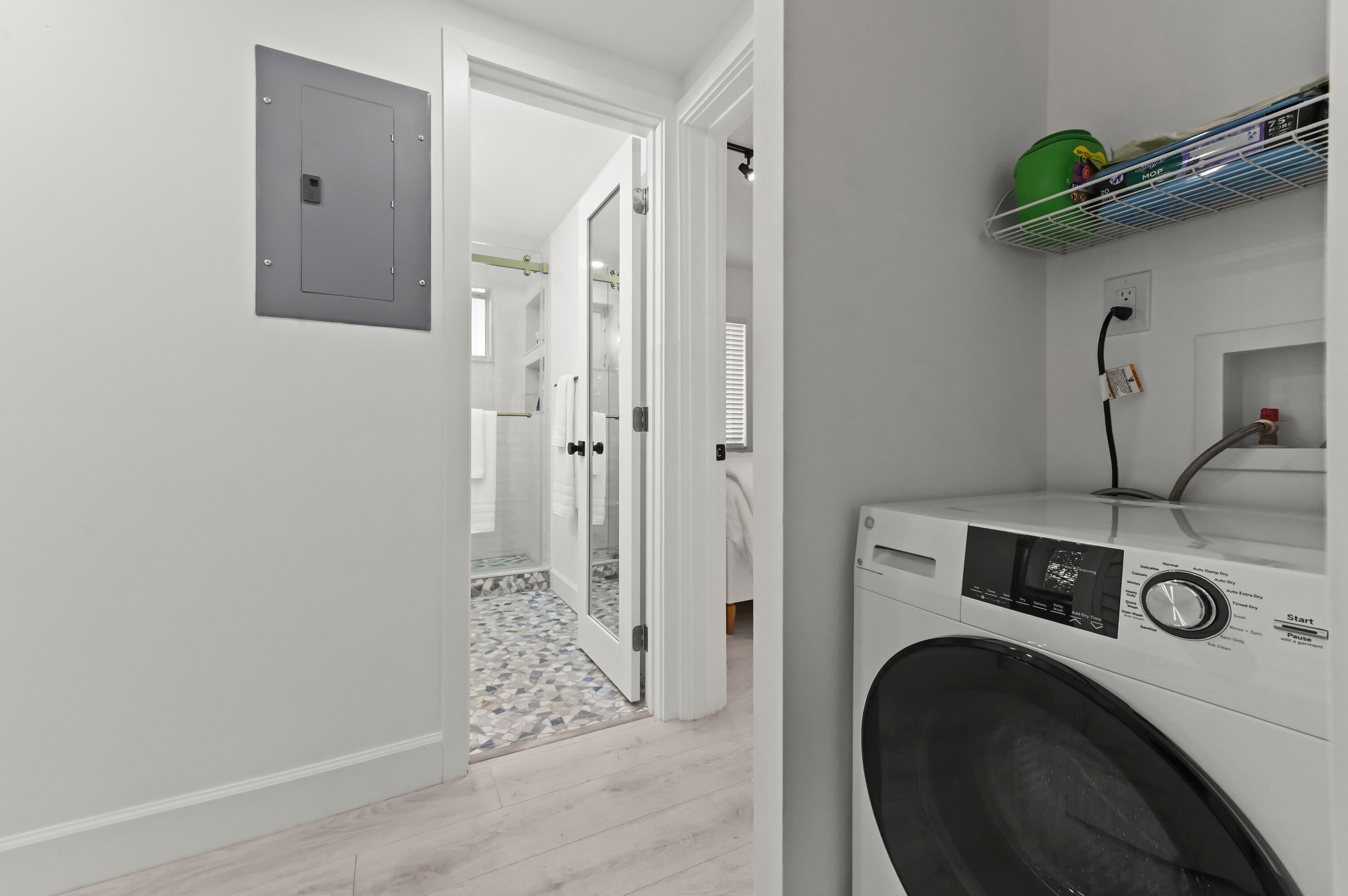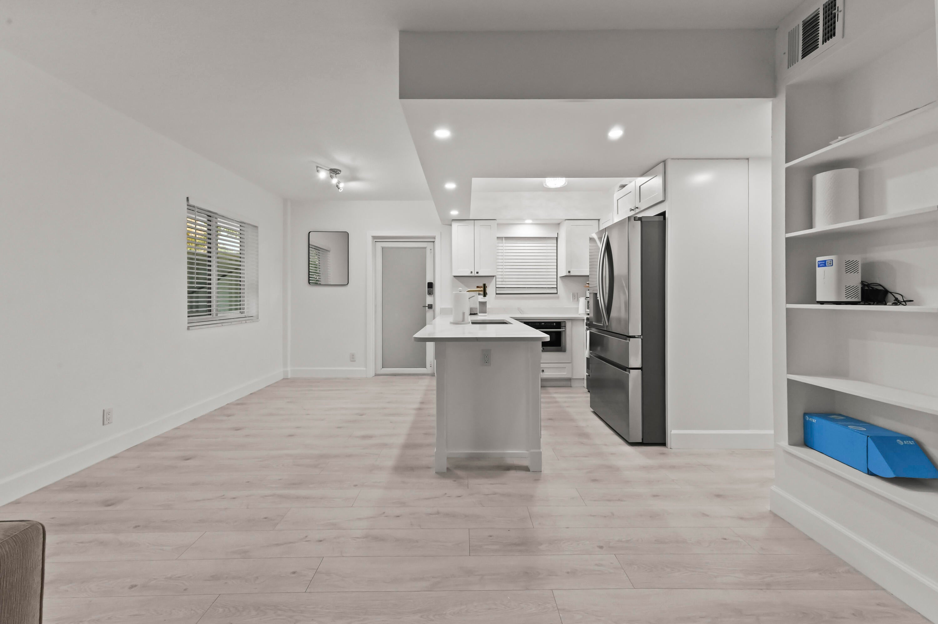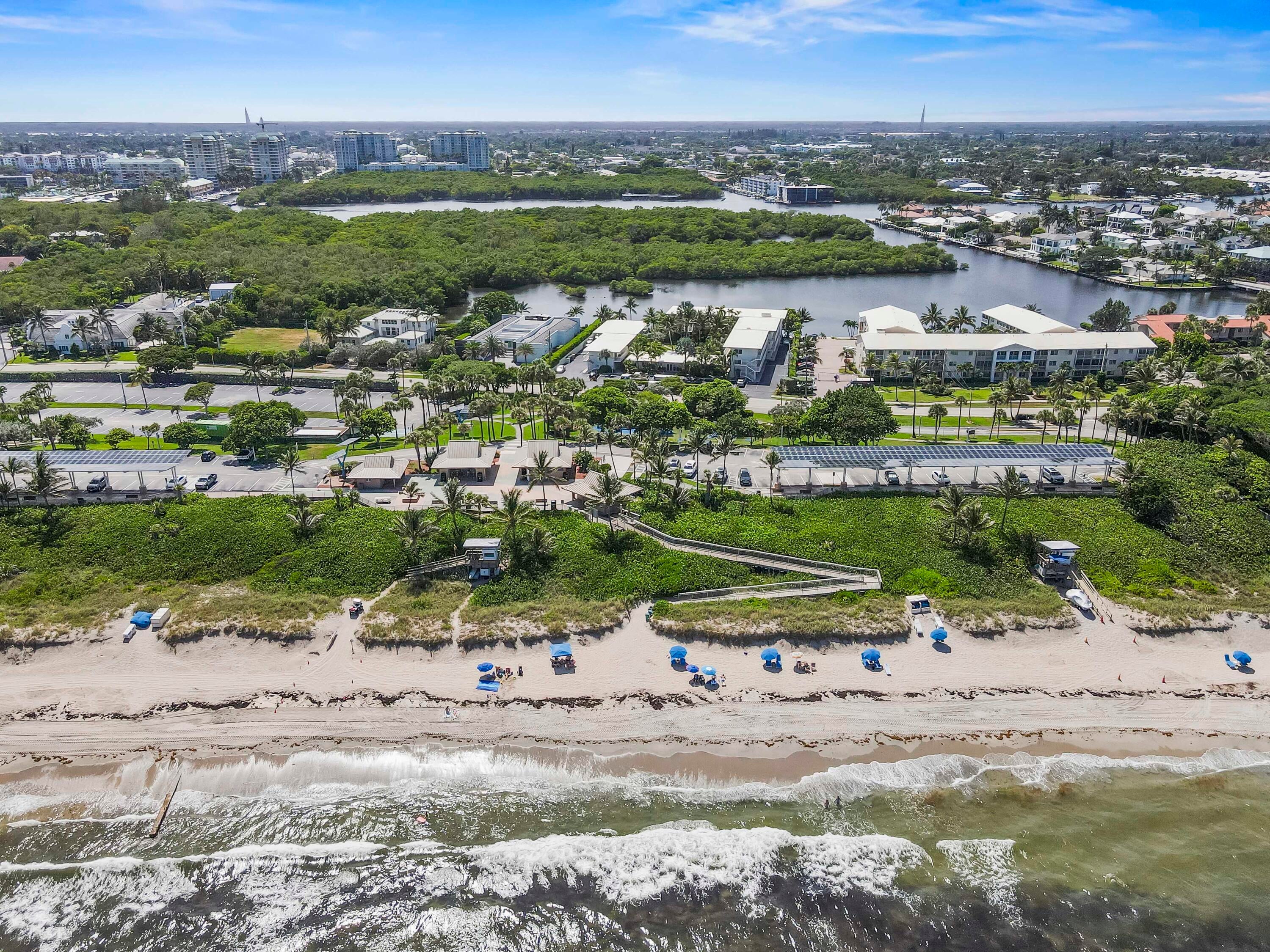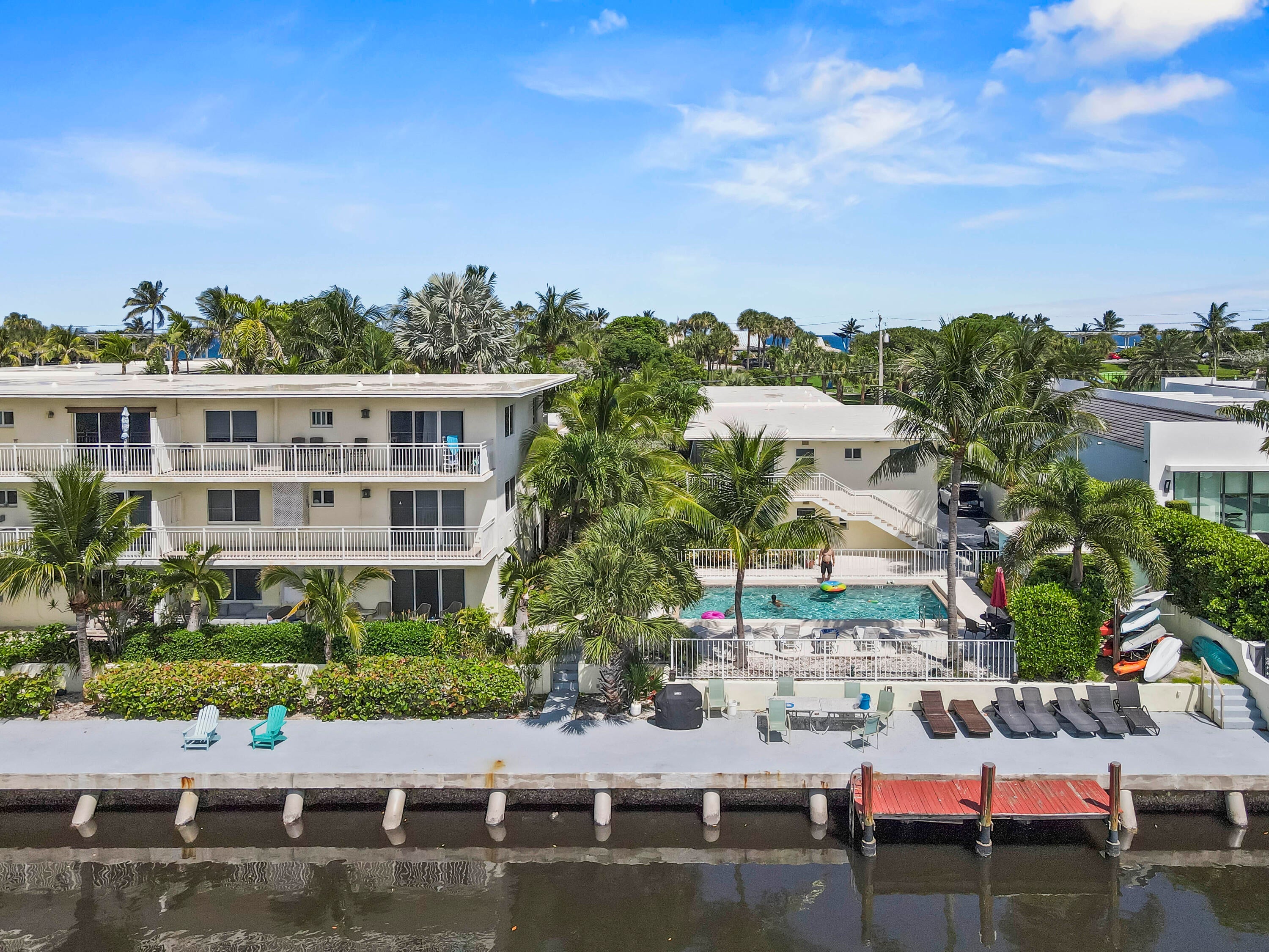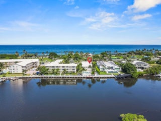 Experience the ultimate beach feel in this fully renovated 2-bedroom, 1-bath condo, perfectly situated for an idyllic coastal lifestyle. Nestled directly across the street from the beach and backing up to a serene Intracoastal Waterway lagoon, this home offers the best of both worlds. The combined living, dining, and kitchen areas create an open and airy atmosphere, with a sliding door providing seamless access to your private patio--the perfect spot to enjoy your morning coffee while taking in the stunning, tranquil sunsets. Convenience is key, with a laundry area neatly tucked inside the unit.Beyond your tranquil home, the prime location places you just minutes away from a vibrant array of fine shopping, diverse dining establishments, and a wealth of other attractions. AC and new impact windows and doors within were installed just 1 year ago. Whether you're a beachgoer or a boater, this is a rare opportunity to own a piece of coastal heaven, where every day feels like a vacation (future docks coming available to own). Don't miss your chance to live the dream in this truly unique condo.