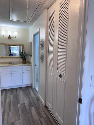 Bright and light,renovated home 1 bed 1.5 bath.55+ community. All laminated wood floors, very spacious layout of living/dinning rooms and enclosed patio .Washer & Dryer in unit . Also half bath for guests,new cabinetry and plenty of counter space in the kitchen.Bedroom has a large window for natural light, supersized walk in closet and shower bathroom. Covered Bridge is perfectly located in suburban Lake Worth and not too far from very nice beaches, main roads, shopping, restaurants . HOA includes building insurance,water,Internet & Cable.Nice clubhouse, 2 heated pools, fitness, workshop, tennis court, billiards room, bocce and shuffleboard ,walking paths, card rooms, social activities. ONLY 25% down conventional. Seller will pay new roof assessment a Closing.