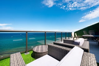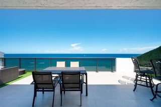 Discover the pinnacle of oceanfront living in this exceptionally rare, never before rented, beautifully renovated 3-bedroom, 4-bath, TWO STORY PENTHOUSE featuring a PRIVATE ELEVATOR INSIDE THE CONDO directly on the sand, available for annual or seasonal lease (min 4 mo). Comprised of 3,288 square feet under air with 4,000 total square feet, this home in the sky offers unobstructed ocean and intracoastal views throughout. Thoughtfully designed with modern elegance and comfort, this stunning residence features a PRIVATE ELEVATOR, offering seamless access to both levels. Bask in the ocean grandeur on any of your 4 private balconies - one of them a large unobstructed oceanfront terrace which can accommodate 30+ guests, outfitted with a bar, dining table, and outdoor TV overlooking the ocean.This is the perfect place to entertain or unwind while enjoying the breathtaking panoramic ocean views both day and night. This residence boasts 2 luxurious Primary Suites - one up and one down - each with spa-like en-suite baths and expansive closet space with custom built-ins, along with a third spacious bedroom and a convertible 4th bedroom, all designed for ultimate comfort. All bedrooms feature ocean-facing impact windows that flood the home with natural light and frame stunning water views. The upper-level suite features his and her baths, one with a tub and balcony with beautiful intracoastal views and another with a shower, bidet, and a bonus storage room. The bedroom showcases three adjacent floor-to-ceiling glass doors that open simultaneously, creating a seamless, open-air connection to the breathtaking ocean and sky - a truly unparalleled and rare experience. The open, modern, ocean facing, newly renovated state-of-the-art chef's kitchen is equipped with premium Bosch appliances, sleek cabinetry, and elegant finishes, perfect for culinary enthusiasts. For your entertainment and wellness needs, the home includes a Peloton, a TV wall projector mounted on the second floor for cinematic experiences on the large living room wall, motorized window shades, and a Sonos sound system throughout. Step outside to your private beach cabana on the sand where you'll enjoy a season of oceanfront lounging in style with fresh cushions replaced daily. Set within a full-service building, residents enjoy a resort-style pool, direct beach access, club room, and a state-of-the-art fitness center. Featuring 2 garage parking spaces while combining elegance, privacy, convenience, and unmatched views, this rare gem is your chance to live the beachfront lifestyle you've always dreamed of. ***Available annually for $19,500/month. Available seasonally (11/1/25-5/2/26) for 6 months or more at $26,500/month. Available for a minimum of 4 months seasonally for $32,500/month. 4 Months is the minimum rental period allowed.***