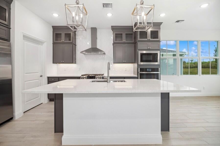 K. Hovnanian's Four Seasons at Wylder, a new active adult 55+ community in Port St. Lucie, Florida.This beautifully designed Astaire floor plan with Classic Look styling offers elegant finishes and open-concept living--perfectly positioned to capture expansive lake views. Just off the foyer, a private home office with sliding doors provides a quiet, functional workspace. The spacious great room features a dramatic vaulted ceiling and a 12' multi-slide glass door that opens to a covered patio--where the vaulted ceiling continues for seamless indoor-outdoor living.The dining area also offers direct patio access, creating an effortless flow for entertaining. A chef-inspired kitchen anchors the space with Brellin Greyhound stacked cabinetry, glass-front uppers, GE stainless steelappliances, and a large layout ideal for meal prep and gathering. The serene primary suite includes a stylish bath with dual freestanding vanities and designer finishes. A pool pre-wire offers future flexibility, and the Home Technology Suite comes standard for modern convenience. Don't miss this opportunity to own a lake-view home that blends smart design with timeless style. Available Winter 2025. Enjoy an all-inclusive, resort-at-home lifestyle with access to countless amenities and activities. Each home is offered in one of our new interior design Looks: Loft, Farmhouse, Classic or Elements for on-trend style in your new home. Residents can take advantage of the community's clubhouse, which features a state-of-the-art fitness center, game room, a catering kitchen and a bustling calendar of classes, clubs, and activities. All of these mere steps from you front door. Located in sunny Port St. Lucie, Florida, residents can also enjoy outdoor activities year-round. Take a dip in the tropical beach-entry pool or enjoy the poolside cabana. Get a great session of exercise on one of the pickleball courts. Plus, there are always social events and outings so you can get to know your neighbors and enjoy the fun together. Experience the best of active adult 55+ living together with South Florida's natural beauty.