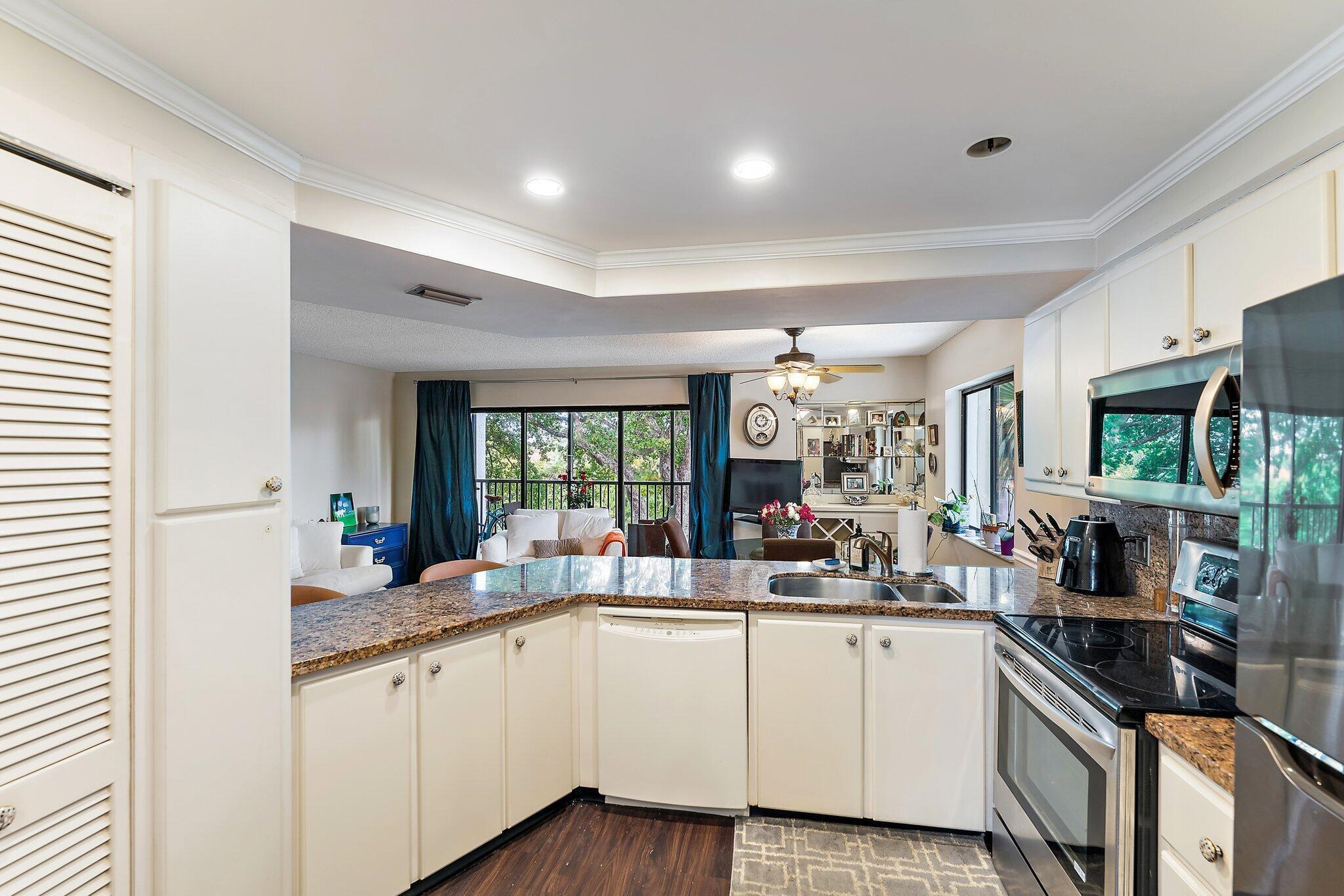 AVAILABLE FOR DECEMBER, JANUARY, FEBRUARY AND MARCH ..MAYBE APRIL ..BRING YOUR DATES TO SPEND 30 DAYS OR MORE IN THIS SLICE OF PARADISE...Stunning end unit with lots of windows for extra light. Updated thru-out. Newer furniture & appliances. Wood Floors, Tile - no carpets. King bed in both bedrms. Walk in Shower in Primary. Screened balcony with serene views of pond & fountain. Walking distance to Jupiter Beach & Parks. Close to commnity pool . Located near entrance of Riverwalk along Intracoastal to Jupiter's Harbourside Shops & Restaurants.