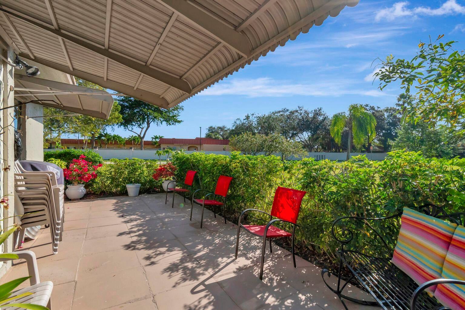 Spic and span and READY! 2BR 2BA villa w/ 1 car oversized gar. Prime location, private corner, just 2 lots from pool. Enjoy greenbelt view and privacy on glassed-in A/C Florida Rm, room, Split bedrooms, open and airy layout, with plenty of natural light. The kitchen has been updated with pantry +Rm for Table. Master bath just been updated and remodeled see-PICTURES. Windows w/Accordion Hurricane Shutters for windstorm protection. New 24 inch Tile floors thru-out. New A/C, Hot Water Heater, Newer ROOF, and NEW ELECTRICAL PANEL just updated. Interior Washer/Dryer Rm. The backyard features an extended open patio, ideal for relaxation & enjoy the privacy of a yard with no neighbors behind you. The community pool within walking distance. Pet restriction, one pet (up to 20 lbs.)