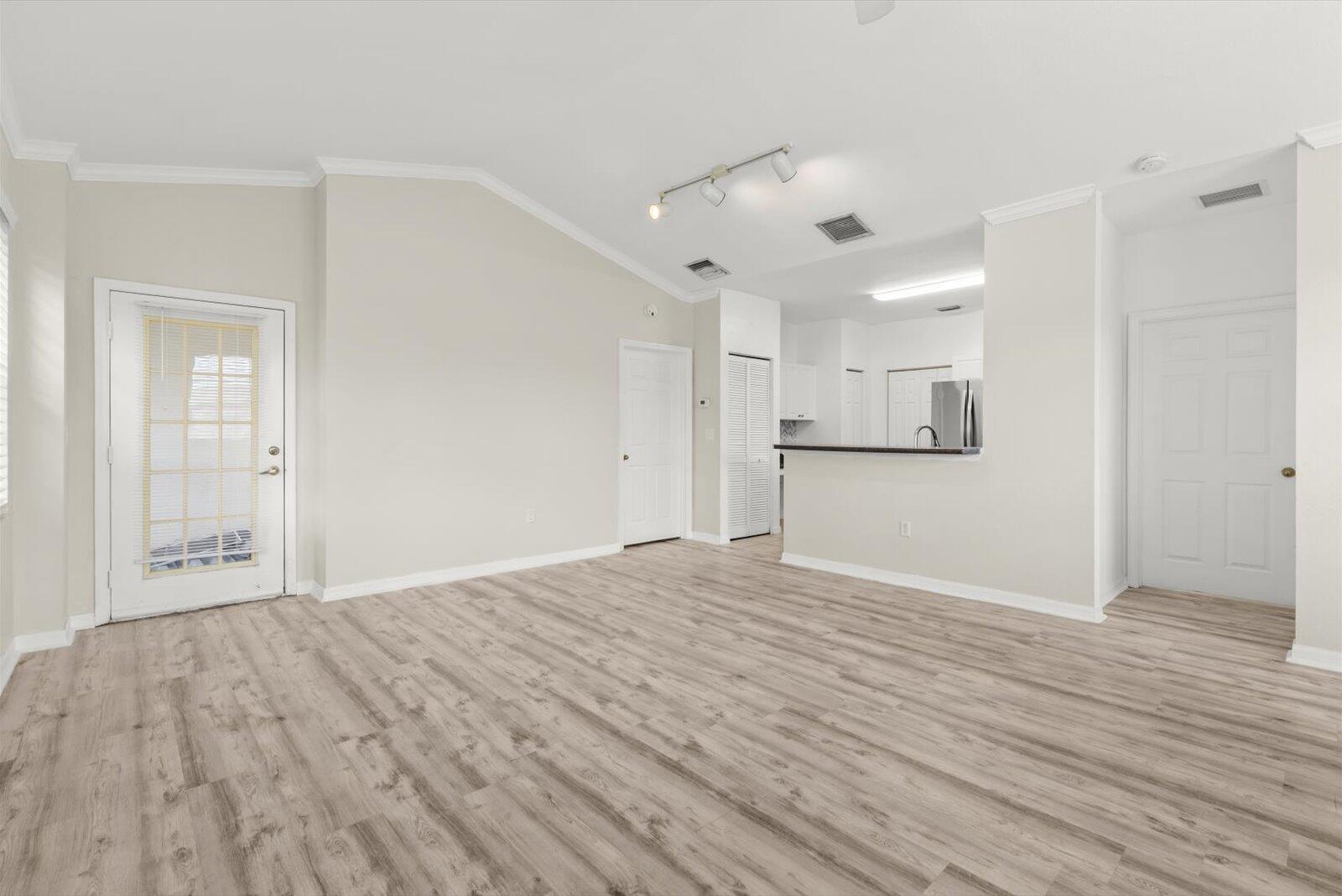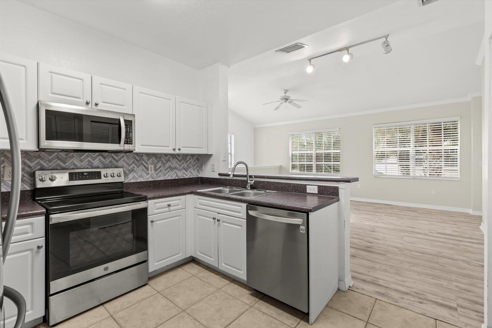 Clean and nice freshly painted, no carpets 2nd floor 2 bedroom 2 bath unit with private screened in balcony. Luxury vinyl laminate flooring throughout. Newer stainless Whirlpool appliances Light grey paint color palette for a crisp, clean look. Estates of Stuart offers a community pool, exercise room and property manager on site. Tenant pays water and electric. Basic cable included. 1st month and security.