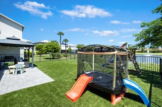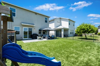 72 hour kick out clause. Experience the tranquil beauty of lakefront living in the highly sought after Lake Cove community. This exquisite two-story home boasts 4 spacious bedrooms, 2 A1/2 bathrooms, & a large 2 car garage. This beautifully upgraded property offers the perfect blend of comfort & modern elegance. Upgrades include: Granite countertops throughout entire house. Double sinks in both bathrooms. Turf professionally installed in Feb 2024 w 15-year warranty. Polyurethane garage floors (2024). Expanded pavers & gazebo in backyard (2022). Expanded driveway to allow 3 cars. Newer premium stainless steel kitchen appliances (2019). Blinds throughout entire house. Electric blinds over sliding glass doors. Fenced back yard (2020).