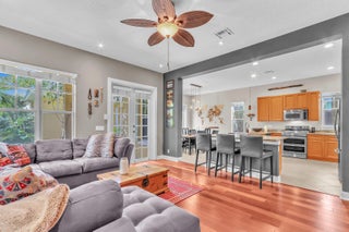 Welcome to this beautifully renovated 3-bedroom, 2.5-bath CBS home in the highly desirable Botanica community, perfectly situated in the heart of Jupiter. This spacious two-story residence offers nearly 2,200 sq ft of living space (3,500 sq ft total) with an open kitchen with newer stainless-steel appliances, cherry wood flooring, and soaring volume ceilings. The main level includes a versatile den, while all three generously sized bedrooms are located upstairs, all with private balconies. Step outside to your own tranquil courtyard oasis featuring a covered patio, lush landscaping & sparkling private pool - ideal for relaxing or entertaining. A detached two-car garage is connected by a covered walkway for added convenience. Botanica offers outstanding amenities, includingtwo neighborhood pools with cabanas, tennis courts, tot lot playground, & over 60 acres of nature preserve with scenic walking trails. Enjoy unparalleled access to everything Jupiter has to offer walk to Publix, Starbucks, and great local dining, with pristine beaches, A-rated schools, Love Street, Abacoa, FAU, Roger Dean Stadium, I-95, and PBIA just minutes away. Pet-friendly any size welcome!