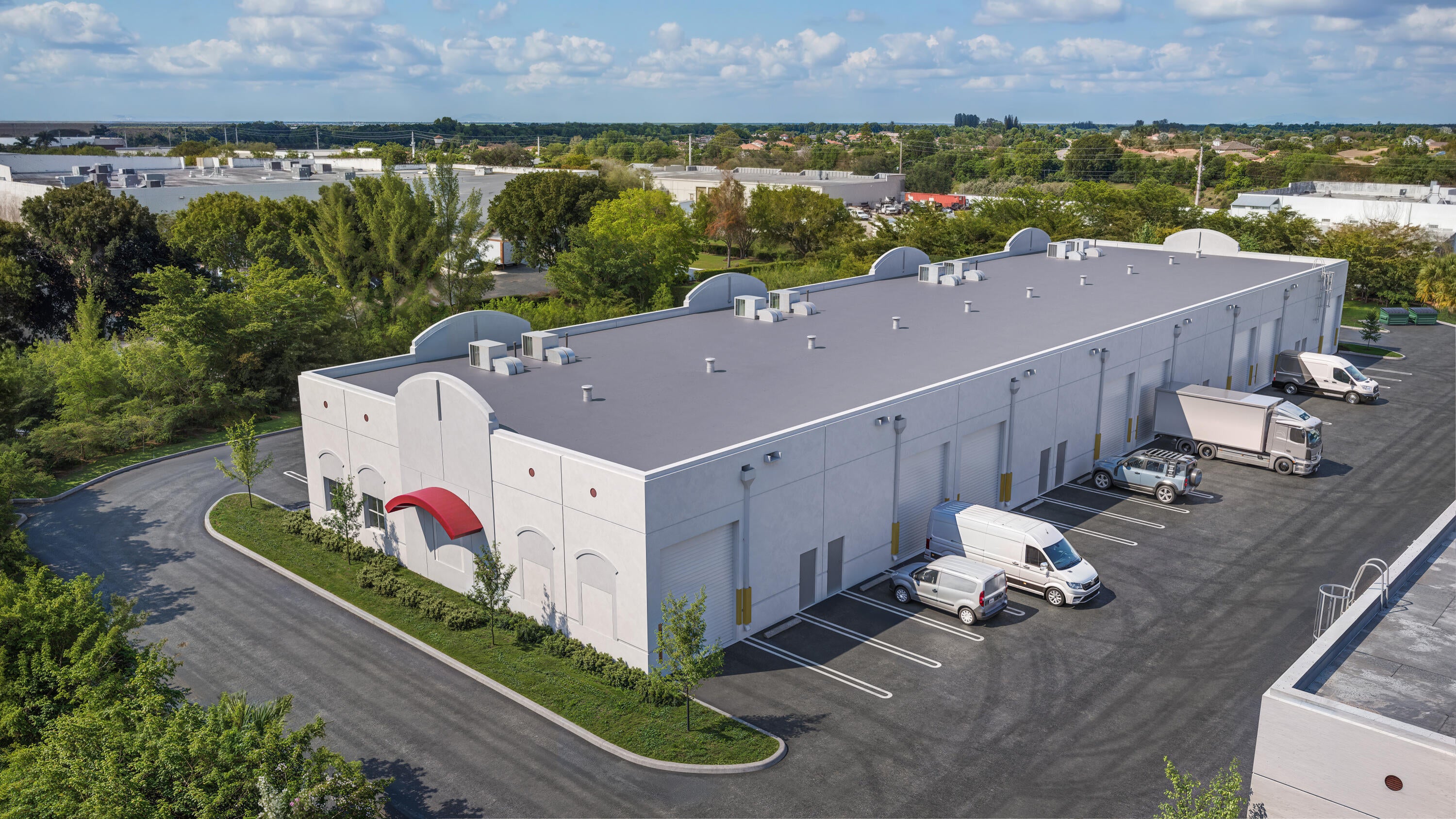BRAND NEW light industrial units to be completed in late Summer 2025. Each unit is 2030 SF and some can be added together to accommodate larger space needs. Perfect for contractors, warehousing, distribution, personal storage, etc. All concrete structure, impact-resistant glass windows and doors, concrete roof, etc.
