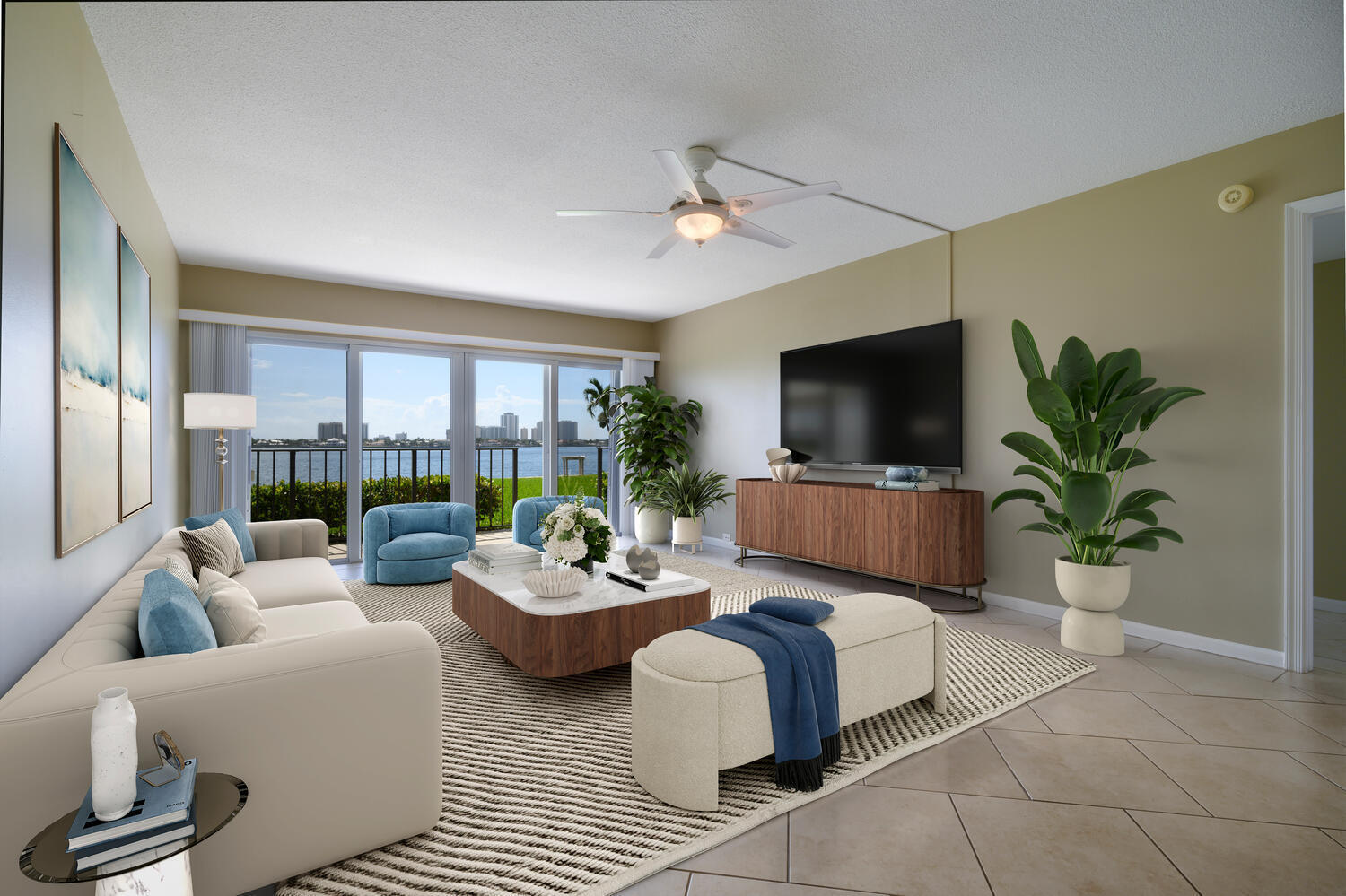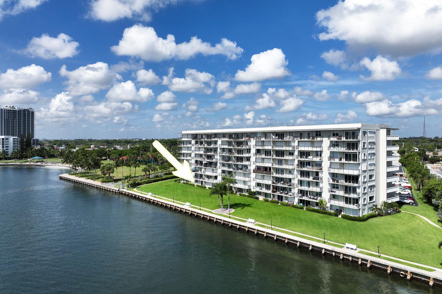 LEAST EXPENSIVE CONDO with Easy First Floor access in the community. Imagine stepping into a serene waterfront condo where you're greeted by sweeping views of our glistening intracoastal that instantly sets a resort-like tone for everyday living. Wall to wall sliding doors and generously sized windows with a spacious patio frame these vistas, providing both relaxation and natural light. The building boasts two inviting swimming pools, one of which is heated, surrounded by sun loungers and cabana style shaded canopies. It's the perfect setting whether you're diving in for morning fitness or unwinding in the sun with a good book! Want a bit of playful competition? A dedicated putting green, pool table or life-size shuffleboard right on the grounds encourage casual practice and friendlygames, giving the community resort feel. Coming into the condo, you are welcomed with an open floor plan with water views from the living, dining and kitchen areas. The master wing also has intracoastal views with a comfortable master bathroom and walk in closet. On the other wing, a guest bedroom provides for a versatile configuration with wall to wall custom fitted closet. Many recent condo improvements have been completed including impact sliders and windows, an epoxy kitchen counter, washer & dryer in 2025, A/C & Water Heater in 2018. This condo has easy access to your designated covered parking. In addition, at the heart of the property lies a well-appointed clubhouse, offering a sociable and relaxing environment. Inside, you'll find comfortable seating areas, a kitchen, bathroom with the space giving it a versatile event space for gatherings and group activities. This condo perfectly blends scenic appeal with leisure and community-driven amenities as an excellent choice for anyone seeking a balanced lifestyle of relaxation, recreation, and social connection right at home within a gated environment and on-site hands-on maintenance employee. Nearby, there are plenty of activities including a marina, tennis courts, pickle ball courts, parks, beaches, restaurants and easy access to i95 and the Turnpike.