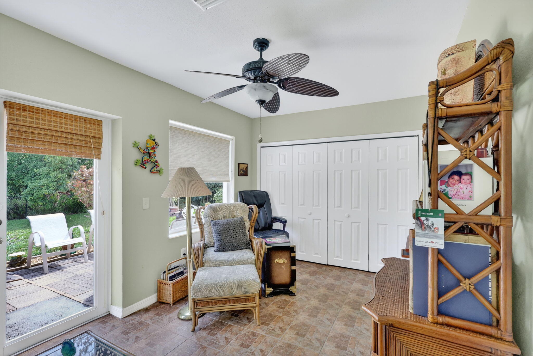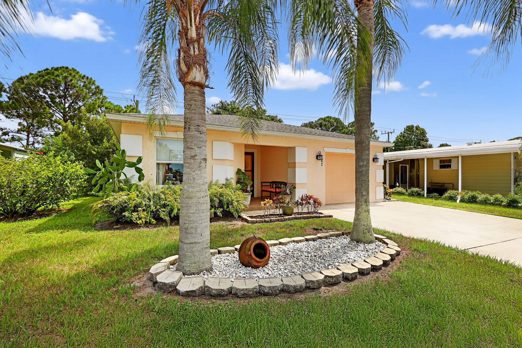 Beautiful CBS 3-bedroom, 2-bathroom home situated on a pet-friendly lot at the end of a quiet cul-de-sac in the desirable 55+ Spanish Lakes Country Club Village! Enjoy a spacious open floor plan featuring brand-new laminate flooring throughout. The large primary suite offers an en-suite bath with a generous walk-in shower, while the split floor plan provides privacy for guests. The third bedroom, located at the back of the home, boasts tranquil nature views of the private backyard. Land lease fee for next owner is $798.90 includes trash removal, lawn care & amenities. such as a private golf course with no fees to play, pickleball, tennis, shuffle board, Bocce, 2 swimming pools, fitness center, & a huge variety of social activities. You do not want to miss this home, priced right to sell