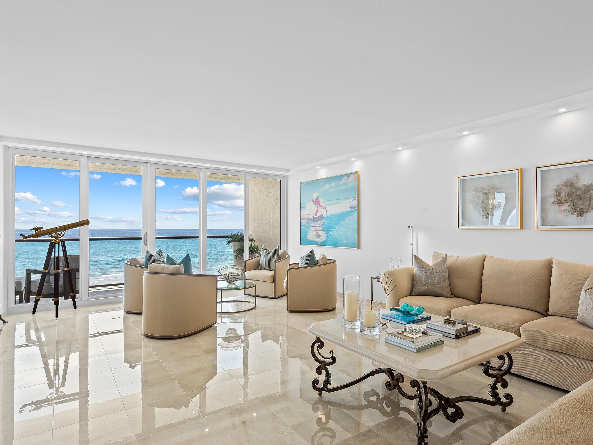 Villa Magna is a crown jewel in Highland Beach--an ultra-luxury, fully renovated oceanfront residence offering direct, unobstructed ocean views and over 2,500 sq ft of refined living. This 3-bed, 3-bath unit features expansive balconies, serene Intracoastal views, and elegant interiors. Located on the 4th floor, it provides panoramic vistas of both sunrise and sunset. Residents enjoy resort-style amenities, including a heated pool, 24/7 security, gym, and Club Room. A recent $21M renovation has elevated Villa Magna to Class-A status with milestone compliance, setting the standard for coastal living. Dock available, sold separately.