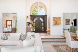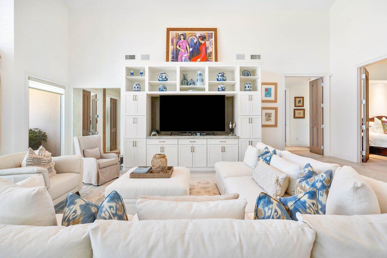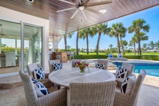 Stunning home situated in a peaceful cul-de-sac is perfectly designed to capitalize on the breathtaking panoramic views of the golf course & lake. Open & spacious floor plan. Property sits on one of the largest & nicest golf course lots in the community. The grand living room boasts magnificent vaulted ceilings, an abundance of windows, & sliding glass doors that lead to the pool deck, allowing for a seamless indoor-outdoor transition. The luxurious master suite boasts a massive walk-in shower, separate tub and beautiful marble. The bedroom itself features high ceilings and direct access to the pool deck. This home also offers a supplemental den & two generously sized en suite bedrooms, providing ample space for family and guests to feel at home.For added privacy, there is a detached guest house complete with a sitting area, two bedrooms, & two bathrooms, offering stunning views of the golf course & a peaceful retreat. Sailfish Point's resort lifestyle includes an oceanfront country club, fine dining, Har-Tru tennis courts, Jack Nicklaus golf, a fitness center, spa, helipad, 1.5 miles of beaches, and 24/7 guarded security.