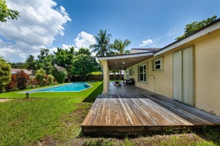 No HOA Approval, Fast Move In! Situated on a spacious 10,000 SF lot, this home offers a private backyard with a large pool, low maintenance turf, a covered concrete patio, and a built in bonfire area for relaxing evenings under the stars. Enjoy peace of mind with hurricane impact windows paired with accordion shutters for additional protection. Inside, you'll find two living areas, a dedicated dining space, and a versatile bonus room perfect for a pantry or small office. The master and guest bathrooms have been updated, and the kitchen features granite countertops with a beautiful view of the pool. Just a short walk to the park. Located near top-rated A+ schools, this home is ready to welcome you!