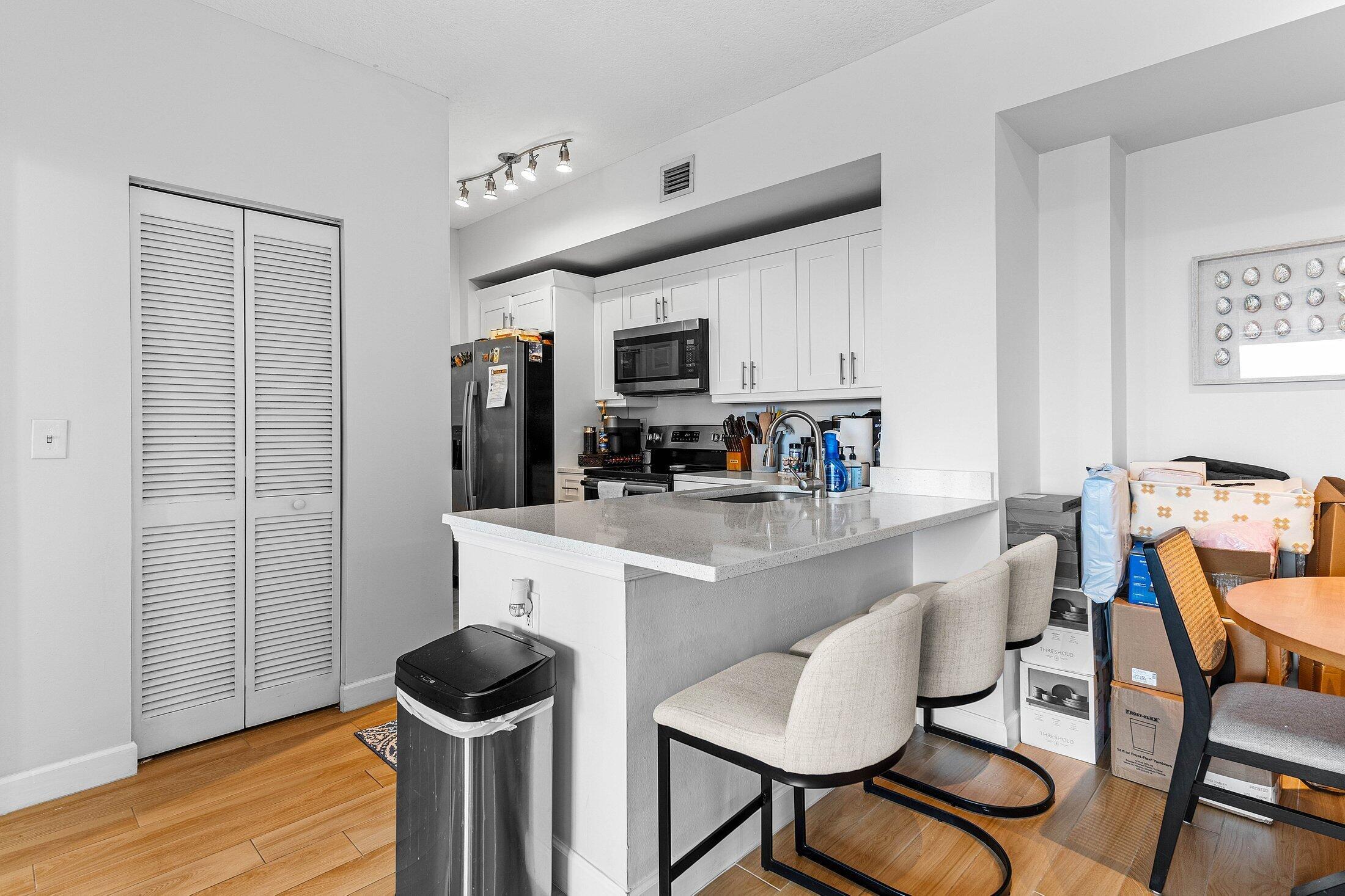 Experience elevated living in this incredible penthouse condominium, perfectly positioned in the heart of CityPlace--West Palm Beach's most vibrant destination to live, work, and play. This stunning residence showcases breathtaking city views, complemented by elegant tile flooring throughout, a thoughtfully updated kitchen and baths, and impact glass for added peace of mind.The gourmet kitchen is a chef's dream, featuring granite countertops, a stylish breakfast bar, sleek European-style cabinetry, and crown molding that flows seamlessly into the spacious living areas with soaring 9-foot ceilings. Every detail has been designed for comfort and style, from the refined finishes to the open layout that invites both relaxation and entertaining.Resort-style amenities abound, including a sparkling swimming pool, state-of-the-art fitness center, elegant clubroom, and a private film screening room. One assigned parking space is included for your convenience. Step outside and immerse yourself in fine dining, boutique shopping, entertainment, and cultural attractionsall just moments from your front door. With its unbeatable location close to Palm Beach International Airport and I-95, this penthouse offers the ultimate blend of luxury, convenience, and cosmopolitan energy.